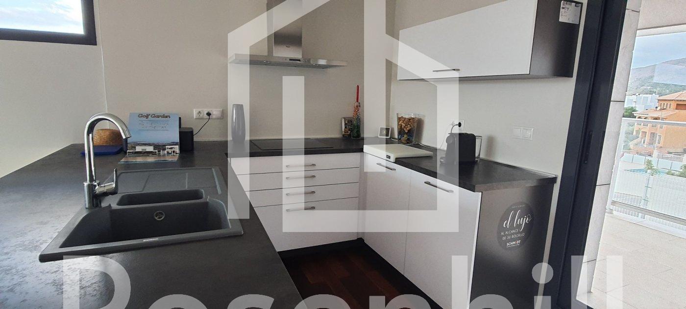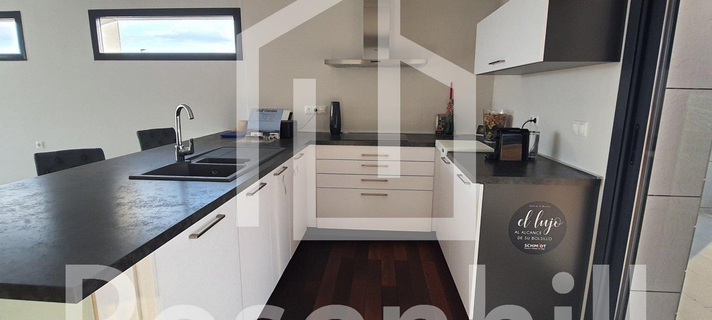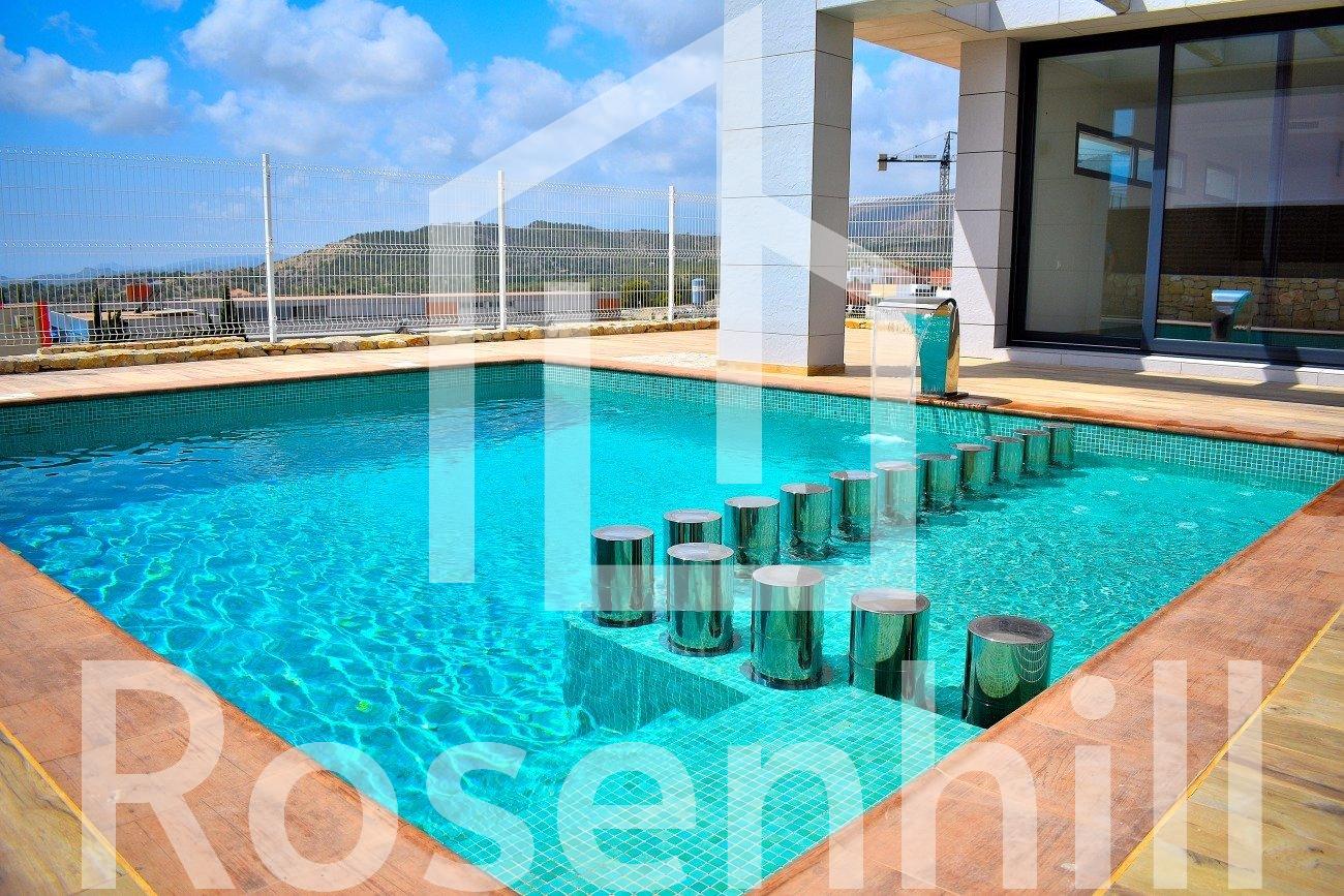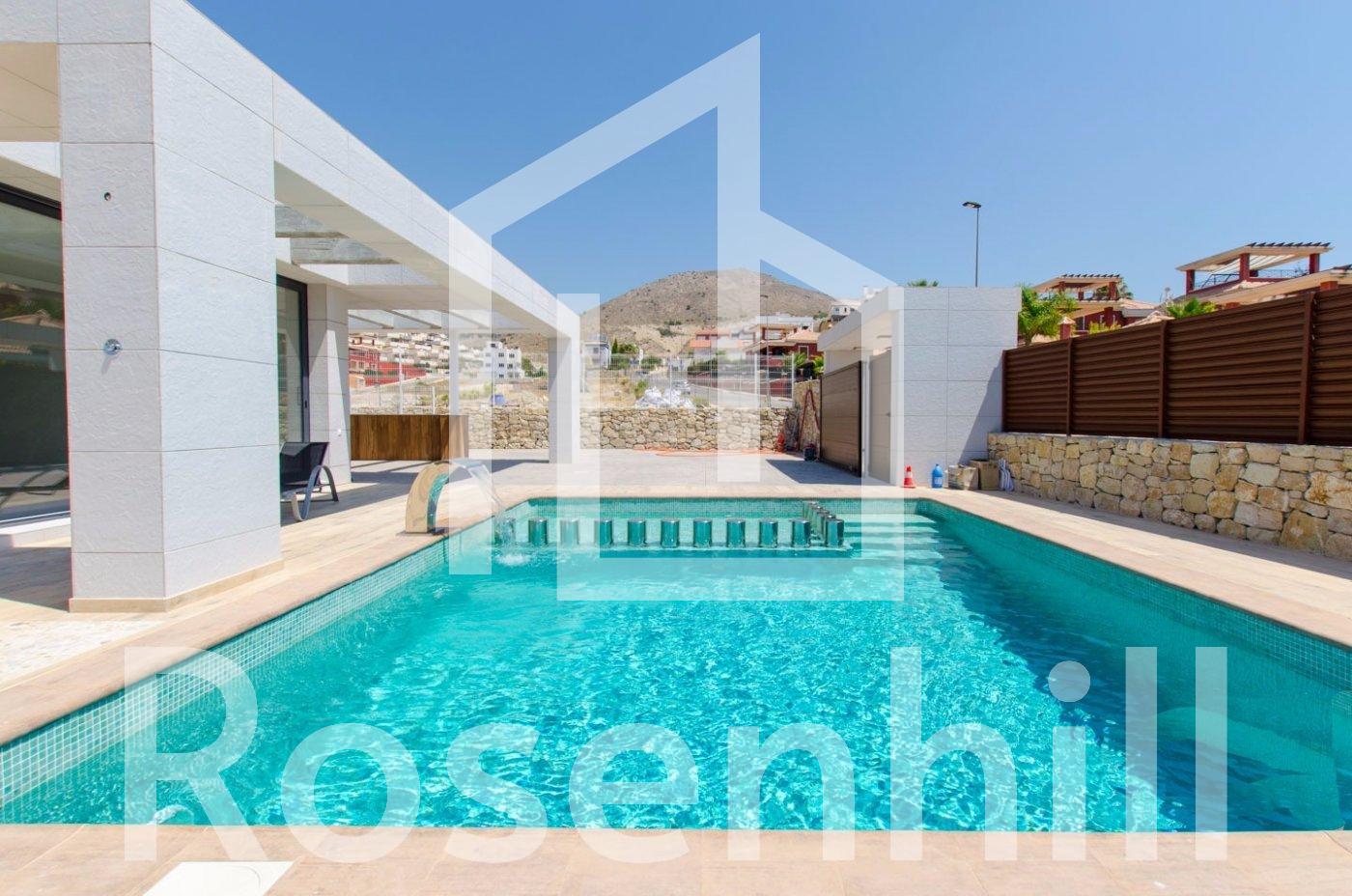 MODERN VILLA WITHIN WALKING DISTANCE TO BENIDORM!!! This villa has been built with luxury finishes such as ventilated facade for greater thermal insulation and lower energy consumption and solarium. High standing construction offering an avant-garde design, functional and elegant and elegant, comfortable spaces and high quality finishes. Large plot and private swimming pool. Its optimal orientation and its large windows allow the entry of natural light throughout the day. Its elevated and gently sloping position guarantees great sea views in the distance. This is a luxury home with spacious, light-filled rooms and spaces designed to be lived in, open concept on the ground floor, with exceptional views, just a stone’s throw from the sea and the mountains. A dream of many… within the reach of a few.