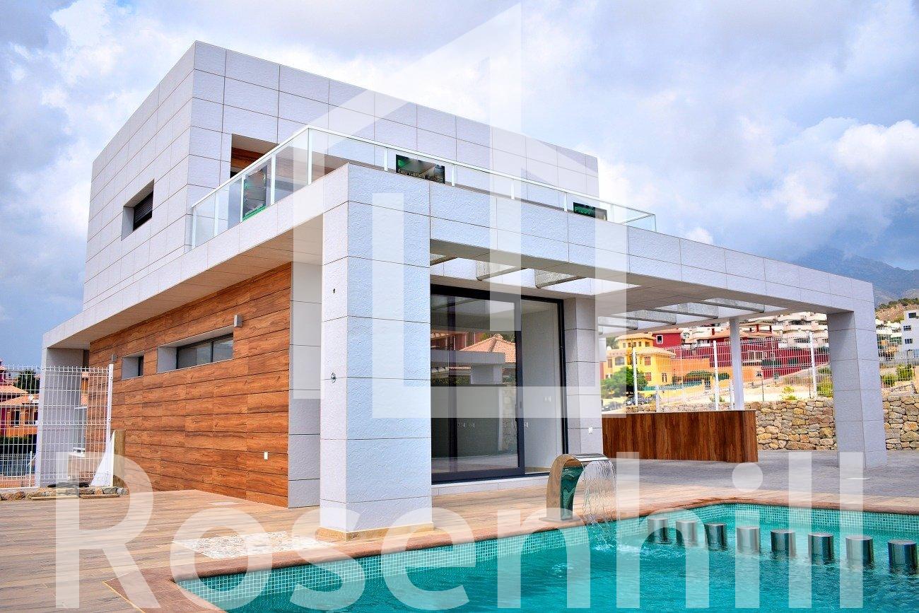 MODERN VILLA WITHIN WALKING DISTANCE TO BENIDORM!!! This villa has been built with luxury finishes such as ventilated facade for greater thermal insulation and lower energy consumption and solarium. High standing construction offering an avant-garde design, functional and elegant and elegant, comfortable spaces and high quality finishes. Large plot and private swimming pool. Its optimal orientation and its large windows allow the entry of natural light throughout the day. Its elevated and gently sloping position guarantees great sea views in the distance. This is a luxury home with spacious, light-filled rooms and spaces designed to be lived in, open concept on the ground floor, with exceptional views, just a stone’s throw from the sea and the mountains. A dream of many… within the reach of a few.
