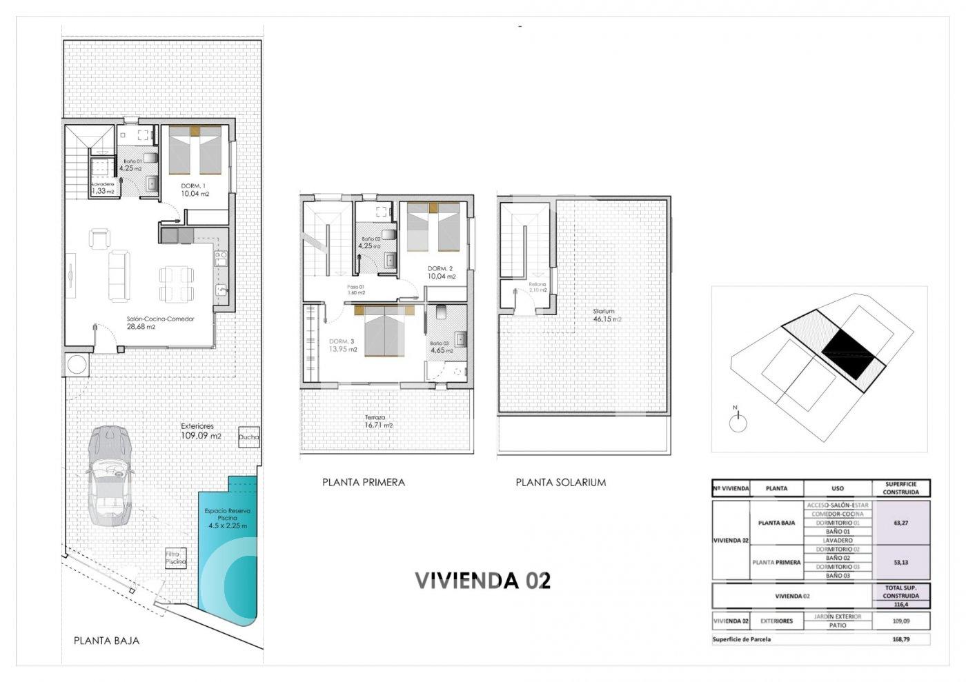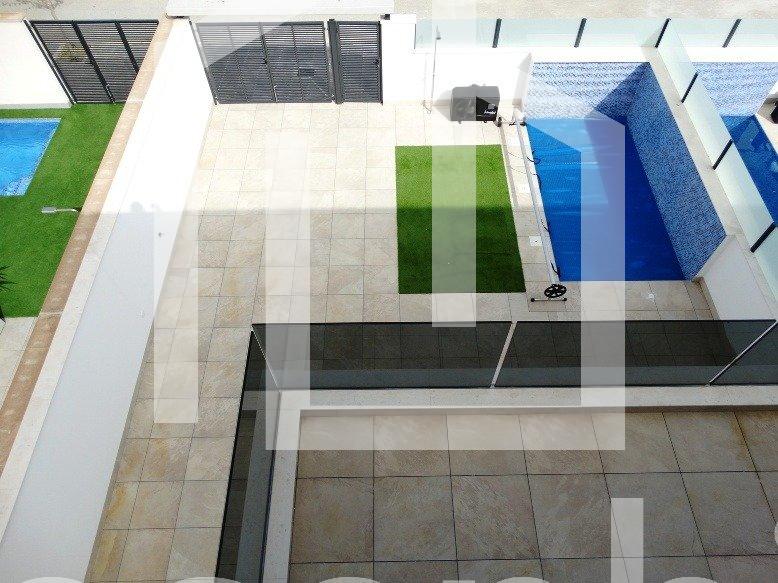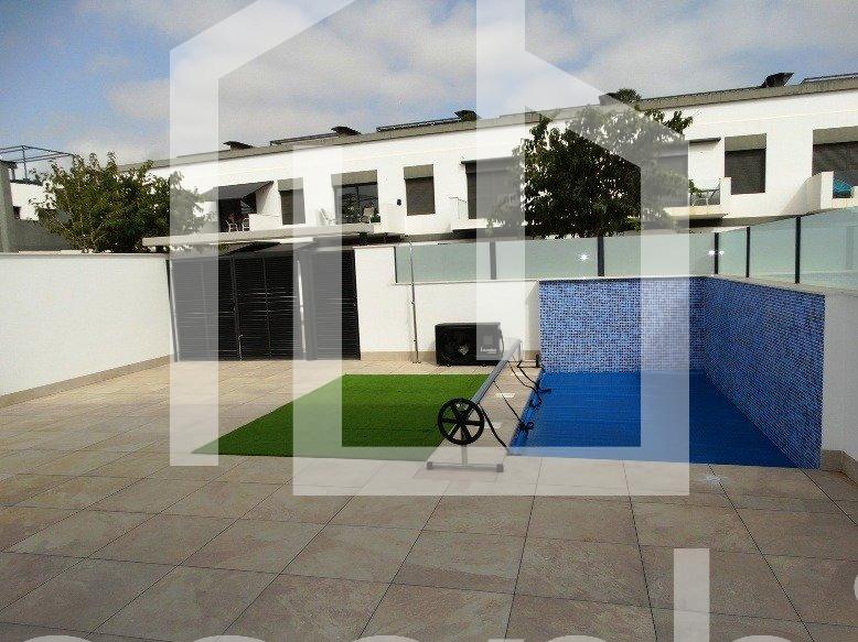 NEW BUILD 4 SEMI-DETACHED VILLAS IN PILAR DE LA HORADADA New Build 4 semi-detached villas located in Pilar de la Horadada. Villas build over 2 floors and has private solarium, has 3 bedrooms, 3 bathrooms, open plan kitchen with the living room, garden with private pool and parking space. Villas located a few meters from all services and the centre. Pilar de la Horadada is a typical Spanish village in the most southern part of the Costa Blanca. The large main street has supermarkets, lots of shops, restaurants and bars and some lovely squares. The beautiful beaches of Torre de la Horadada and Mil Palmeras with fine sand promenade is just 5 minutes away. In Pilar de la Horadada there is also a well-developed cycling and walking path network, and there is also a large offer of various sports activities. Lo Romero 18 hole golf course is just a short drive from town. The airports of Corvera (Murcia) and Alicante are respectively 40 and 55 minutes away.
