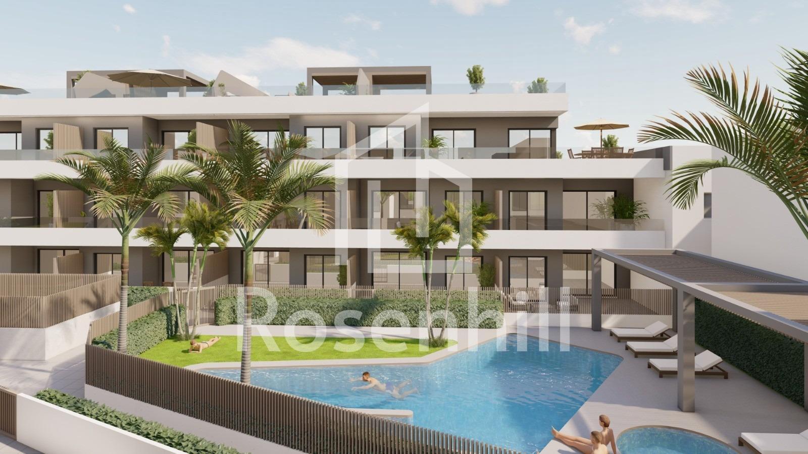 New Build Apartments and Bungalows for Sale in Pilar de la Horadada Near the Beach Exclusive Residential Development on the Southern Costa Blanca Discover this modern new build residential complex located in Pilar de la Horadada, the southernmost town on the Costa Blanca. This boutique development offers a selection of contemporary apartments and bungalows designed to combine comfort, functionality and Mediterranean lifestyle. The project consists of only 26 carefully designed homes with 2 or 3 bedrooms and 2 bathrooms, making it an ideal option for both permanent residence and holiday living. The complex is located in a quiet residential area within walking distance of the town center, where residents can enjoy restaurants, cafes, supermarkets, local shops and all essential services. Pilar de la Horadada is a charming Spanish town known for its welcoming atmosphere, lively main street and beautiful plazas. With excellent connections to nearby coastal areas and golf resorts, it is a popular destination for international buyers seeking sunshine and quality of life. Apartments and Bungalows with Private Outdoor Spaces The development offers two different property types to suit various lifestyles. The complex includes 16 modern apartments. Buyers can choose between ground floor units with private gardens, middle floor apartments with spacious terraces or penthouses with private terraces and rooftop solariums. Each apartment includes a parking space and storage room in the underground garage. There are also 10 bungalows available. Ground floor bungalows feature private gardens and parking within the plot, while top floor bungalows offer terraces and private solariums. These upper level homes include parking and storage in the basement. All homes have been designed with bright interiors, open layouts and comfortable living areas that extend naturally to the outdoor spaces. Quality Construction and Modern Features The homes are built with high quality materials and modern systems to ensure comfort and energy efficiency throughout the year. Furnished kitchens Fully equipped bathrooms with shower screens and underfloor heating Energy efficient aerothermal hot water system Pre installation for ducted air conditioning Residents also benefit from a communal swimming pool surrounded by landscaped gardens and sunbathing areas, creating a relaxing environment to enjoy the Mediterranean climate. Excellent Location Close to Beaches and Golf The development enjoys a strategic location close to some of the best beaches and golf courses in the region. Torre de la Horadada beach 3 km Mil Palmeras beach 3 km Lo Romero Golf 6 km Region de Murcia International Airport 45 km Alicante Elche Airport 75 km The area also offers excellent road connections to nearby coastal towns, marinas and leisure facilities along both the Costa Blanca and Costa Calida. Find Your New Home in Pilar de la Horadada This attractive new build residential complex offers modern homes, quality finishes and a fantastic location close to the beach. Contact us today for more information or to arrange a visit and secure your new property on the Costa Blanca.