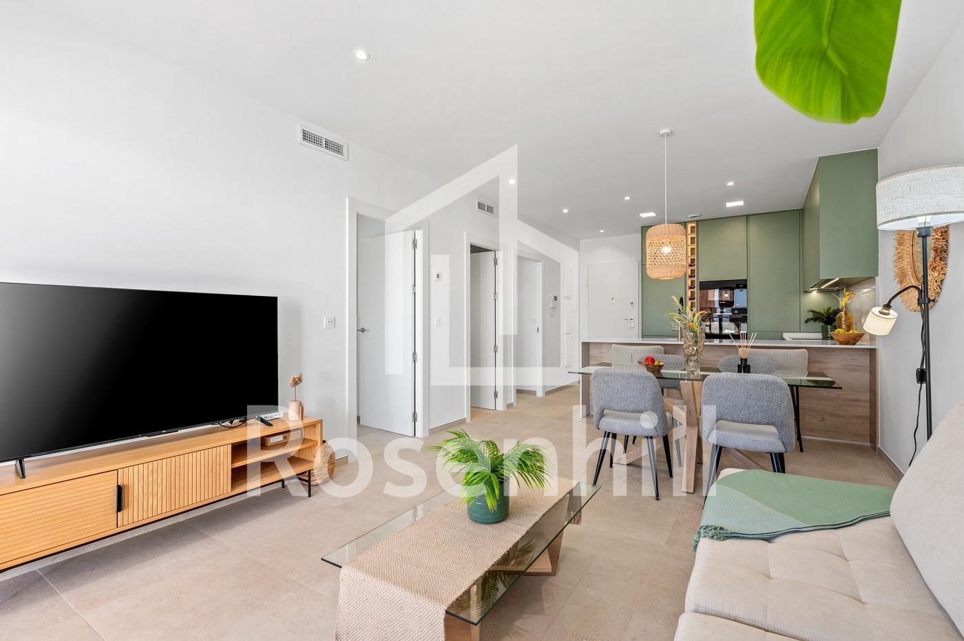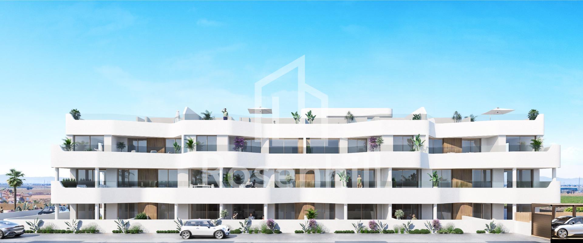 New Build Apartments and Villas Frontline Golf in Los Alcazares Costa Calida Exclusive Residential Development Near the Beach and Golf Discover this exceptional new build residential complex in Los Alcazares, one of the most desirable coastal towns on the Costa Calida. Ideally located just 1.2 km from the beaches of the Mar Menor and frontline to La Serena Golf, this development offers a perfect blend of modern living, coastal lifestyle and peaceful golf surroundings. Los Alcazares is a charming seaside town known for its relaxed atmosphere, long promenade, local restaurants and year round services, making it ideal for both permanent living and holiday homes. Modern Apartments and Exclusive Villas The development consists of 37 contemporary apartments distributed across three low rise buildings, designed around a beautiful communal pool and landscaped gardens. Buyers can choose between 2, 3 or 4 bedroom apartments, including ground floor units with terraces, middle floor apartments and penthouses with private solariums offering open views to the golf course and the sea. In addition, the project includes 7 exclusive single level villas with 3 bedrooms, each featuring a private pool and a prime frontline golf position. High Quality Features and Comfort All properties are built with modern finishes and designed for comfort and functionality. Each home includes fully equipped bathrooms with furniture and shower screens, pre installation for ducted air conditioning and motorized shutters in bedrooms. Apartments also benefit from a private parking space and storage room in the underground garage, accessible by lift, ensuring convenience and security. Prime Location in Los Alcazares This residential complex enjoys a strategic location with easy access to all amenities, golf courses and major road connections. The town center is within walking distance, offering supermarkets, shops, restaurants and leisure facilities. The Mar Menor is known for its calm and warm waters, perfect for swimming, sailing and water sports, while La Serena Golf is highly regarded for its unique design with water features throughout the course. Distances to Key Points of Interest Mar Menor beaches 1.2 km La Serena Golf adjacent Roda Golf 4 km Cartagena 20 km Murcia International Airport 35 km Alicante Airport 95 km Your Ideal Home on the Costa Calida Whether you are looking for a permanent residence, a holiday retreat or a smart investment, this development offers an unbeatable combination of location, quality and lifestyle. Contact us today to receive more information or arrange a visit and secure your new home in Los Alcazares.