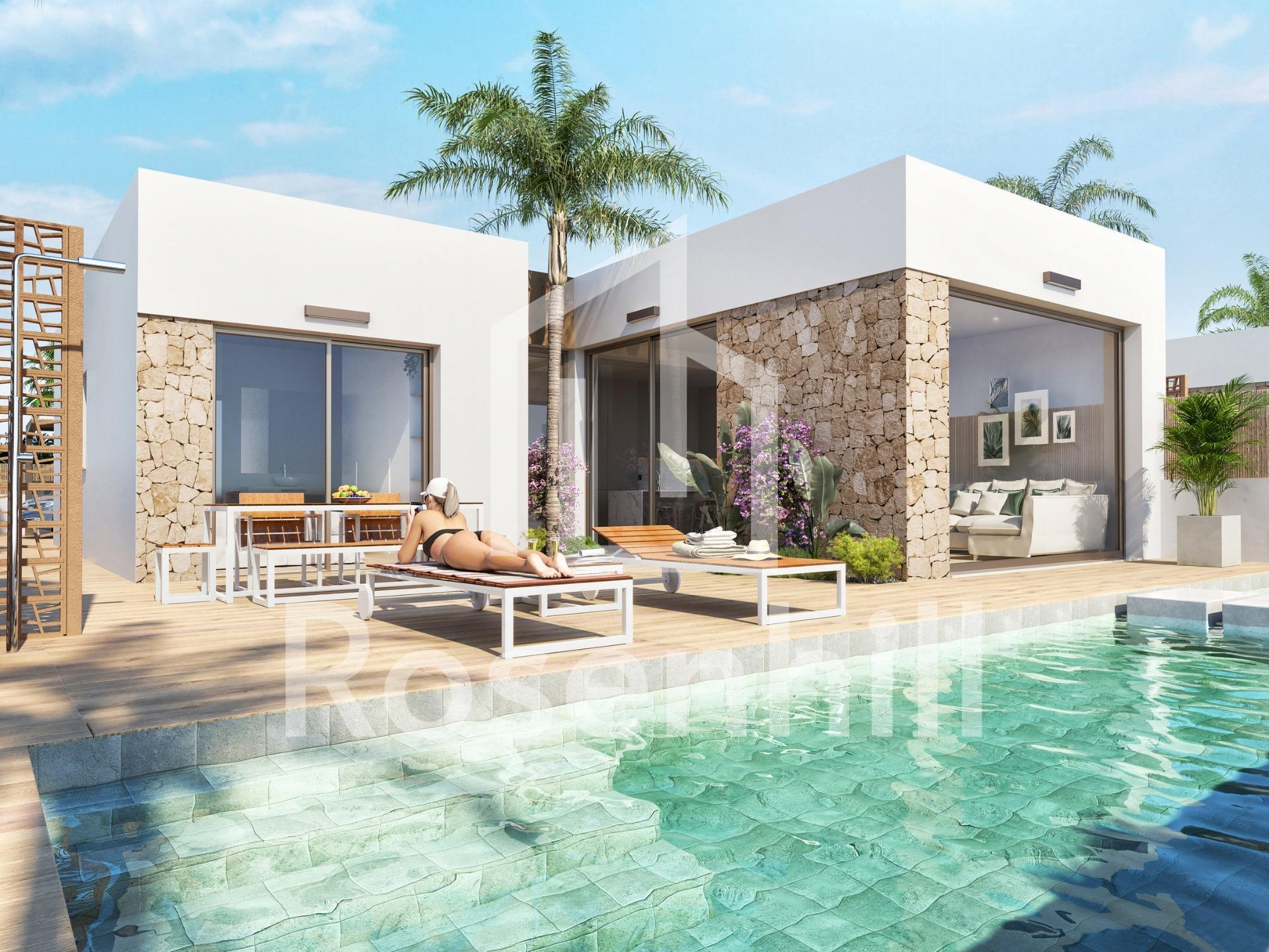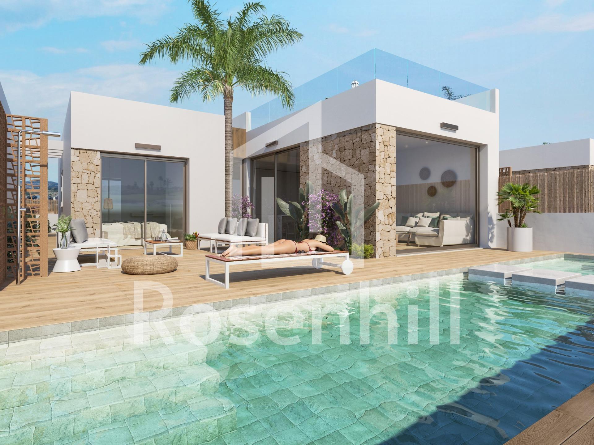 New Build Apartments and Villas Frontline Golf in Los Alcazares Costa Calida Exclusive Residential Development Near the Beach and Golf Discover this exceptional new build residential complex in Los Alcazares, one of the most desirable coastal towns on the Costa Calida. Ideally located just 1.2 km from the beaches of the Mar Menor and frontline to La Serena Golf, this development offers a perfect blend of modern living, coastal lifestyle and peaceful golf surroundings. Los Alcazares is a charming seaside town known for its relaxed atmosphere, long promenade, local restaurants and year round services, making it ideal for both permanent living and holiday homes. Modern Apartments and Exclusive Villas The development consists of 37 contemporary apartments distributed across three low rise buildings, designed around a beautiful communal pool and landscaped gardens. Buyers can choose between 2, 3 or 4 bedroom apartments, including ground floor units with terraces, middle floor apartments and penthouses with private solariums offering open views to the golf course and the sea. In addition, the project includes 7 exclusive single level villas with 3 bedrooms, each featuring a private pool and a prime frontline golf position. High Quality Features and Comfort All properties are built with modern finishes and designed for comfort and functionality. Each home includes fully equipped bathrooms with furniture and shower screens, pre installation for ducted air conditioning and motorized shutters in bedrooms. Apartments also benefit from a private parking space and storage room in the underground garage, accessible by lift, ensuring convenience and security. Prime Location in Los Alcazares This residential complex enjoys a strategic location with easy access to all amenities, golf courses and major road connections. The town center is within walking distance, offering supermarkets, shops, restaurants and leisure facilities. The Mar Menor is known for its calm and warm waters, perfect for swimming, sailing and water sports, while La Serena Golf is highly regarded for its unique design with water features throughout the course. Distances to Key Points of Interest Mar Menor beaches 1.2 km La Serena Golf adjacent Roda Golf 4 km Cartagena 20 km Murcia International Airport 35 km Alicante Airport 95 km Your Ideal Home on the Costa Calida Whether you are looking for a permanent residence, a holiday retreat or a smart investment, this development offers an unbeatable combination of location, quality and lifestyle. Contact us today to receive more information or arrange a visit and secure your new home in Los Alcazares.