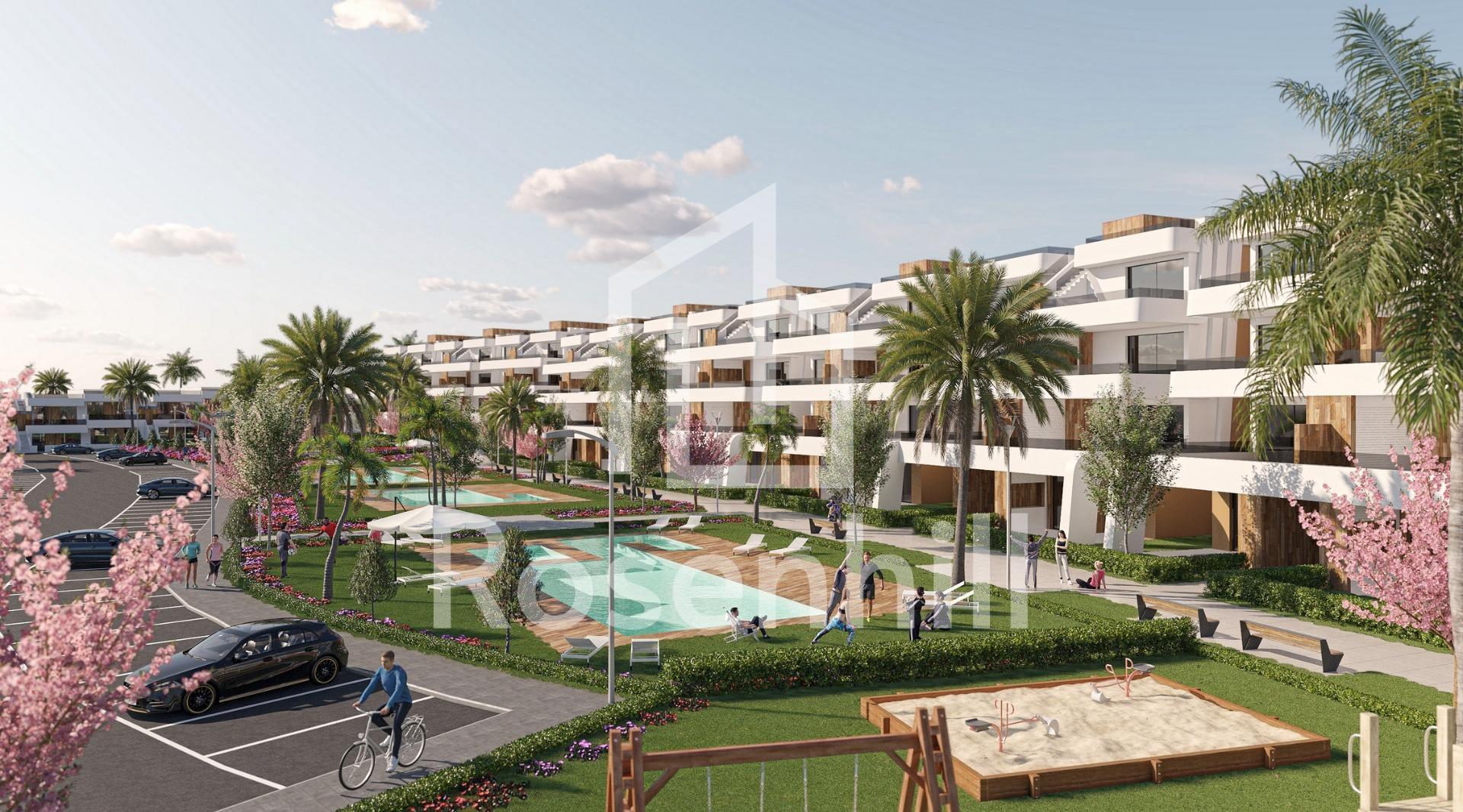New Build Apartments at Condado de Alhama Golf Resort Murcia Modern Living in a Prestigious Golf Resort Discover these new build apartments located within the renowned Condado de Alhama Golf Resort in the Region of Murcia. This exclusive residential complex of villas and apartments is set in a secure resort surrounded by nature, sports facilities and a championship golf course, offering an exceptional lifestyle in a peaceful Mediterranean environment. Condado de Alhama is a well established golf resort with a shopping center, supermarkets, bars, restaurants, sports areas and landscaped gardens. It is an ideal choice for both permanent living and holiday homes, combining comfort, security and leisure. Contemporary Apartments with Terraces and Solariums The apartments are distributed in low rise blocks of 8 units, with homes on the ground, first, second and third floors. Each block has an elevator providing easy access to all levels. Ground floor properties offer 3 bedrooms and 2 full bathrooms, with the option to adapt to 2 bedrooms for a larger living area if desired. The remaining units feature 2 bedrooms and 2 bathrooms. Top floor apartments include a private solarium, perfect for sunbathing and enjoying open views. All homes are designed with a contemporary open plan concept, integrating a fully equipped kitchen with the living and dining area. Spacious terraces with a summer kitchen extend the living space outdoors, allowing residents to enjoy the warm climate throughout the year. High Quality Specifications and Communal Areas The development is built to high standards and includes: Fully furnished and equipped kitchen with integrated fridge and dishwasher, induction hob, extractor hood, oven and microwave in column Pre installation for ducted air conditioning Aerothermal system for hot water Armored entrance door Fully fitted bathrooms with vanity unit, suspended toilet and shower screens Interior and exterior lighting Outdoor parking space for each apartment Storage room in selected units Residents benefit from several communal swimming pools surrounded by green areas, creating a relaxing and family friendly atmosphere. Prime Location and Distances Alhama Signature Golf designed by Jack Nicklaus within the resort Beaches of Mazarron and Bolnuevo 20 km Murcia International Airport 20 km Murcia city 40 km Cartagena 35 km Mazarron offers more than 35 km of coastline, including several Blue Flag beaches recognized for their quality and natural beauty. Your Home in Condado de Alhama Awaits These new build apartments offer golf, sunshine and excellent amenities in one of Murcia most complete resorts. Contact us today to receive more information and secure your property at Condado de Alhama Golf Resort.