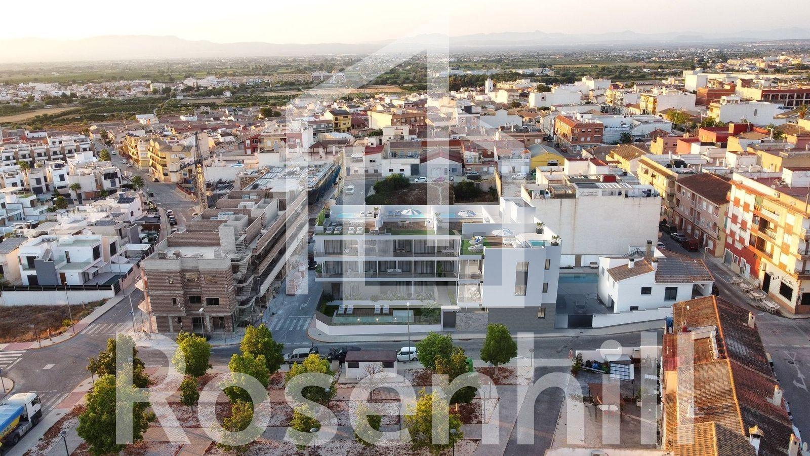 New Build Apartments in Benijofar with a central location Contemporary Residential Living in Benijofar This exclusive new development in Benijofar offers just 11 modern homes designed to combine contemporary architecture, comfort and high quality materials. The project includes ground floor and first floor apartments with spacious terraces, as well as penthouses with terraces and private solariums. Located in a central yet peaceful area of Benijofar and facing a large green zone, the residential enjoys excellent natural light throughout the day and a pleasant open outlook. Modern Apartments with Premium Features Each property has been carefully designed to meet high standards of quality and functionality. All homes include a private garage space and storage room in the basement, with convenient lift access. Residents can also enjoy a stylish communal swimming pool surrounded by landscaped common areas, ideal for relaxing and socializing. The penthouses stand out with their generous solariums, offering the option to install an outdoor kitchen and featuring a jacuzzi, creating a unique outdoor space perfect for entertaining or unwinding under the Mediterranean sun. High Quality Finishes and Energy Efficiency The residential has been built with great attention to durability, efficiency and modern aesthetics. Features include: Preinstallation of ducted air conditioning and heating Exterior carpentry with thermal break and double glazing Aerothermal system for domestic hot water Furnished kitchens with appliances included Interior and exterior lighting package included Bathrooms with vanity units, mirrors and shower screens Jacuzzi included in penthouse solariums Every detail has been selected to ensure a comfortable, efficient and elegant living environment. Benijofar Lifestyle and Location Benijofar is one of the most charming towns in the Vega Baja area, known for its relaxed atmosphere, safety and excellent quality of life. All daily services such as supermarkets, schools, medical centers, restaurants and leisure areas are within 5 minutes. The town offers the perfect balance between traditional Spanish life and modern amenities. Key Distances to Points of Interest Guardamar del Segura beaches: 8 km La Finca and La Marquesa golf courses: 6 km Rojales water park: 4 km Zenia Boulevard shopping center: 17 km Alicante Airport: 35 km Your New Home on the Costa Blanca Awaits These new build apartments in Benijofar offer an exceptional combination of location, quality and design. Contact us today to arrange a viewing and secure your new home on the Costa Blanca.
