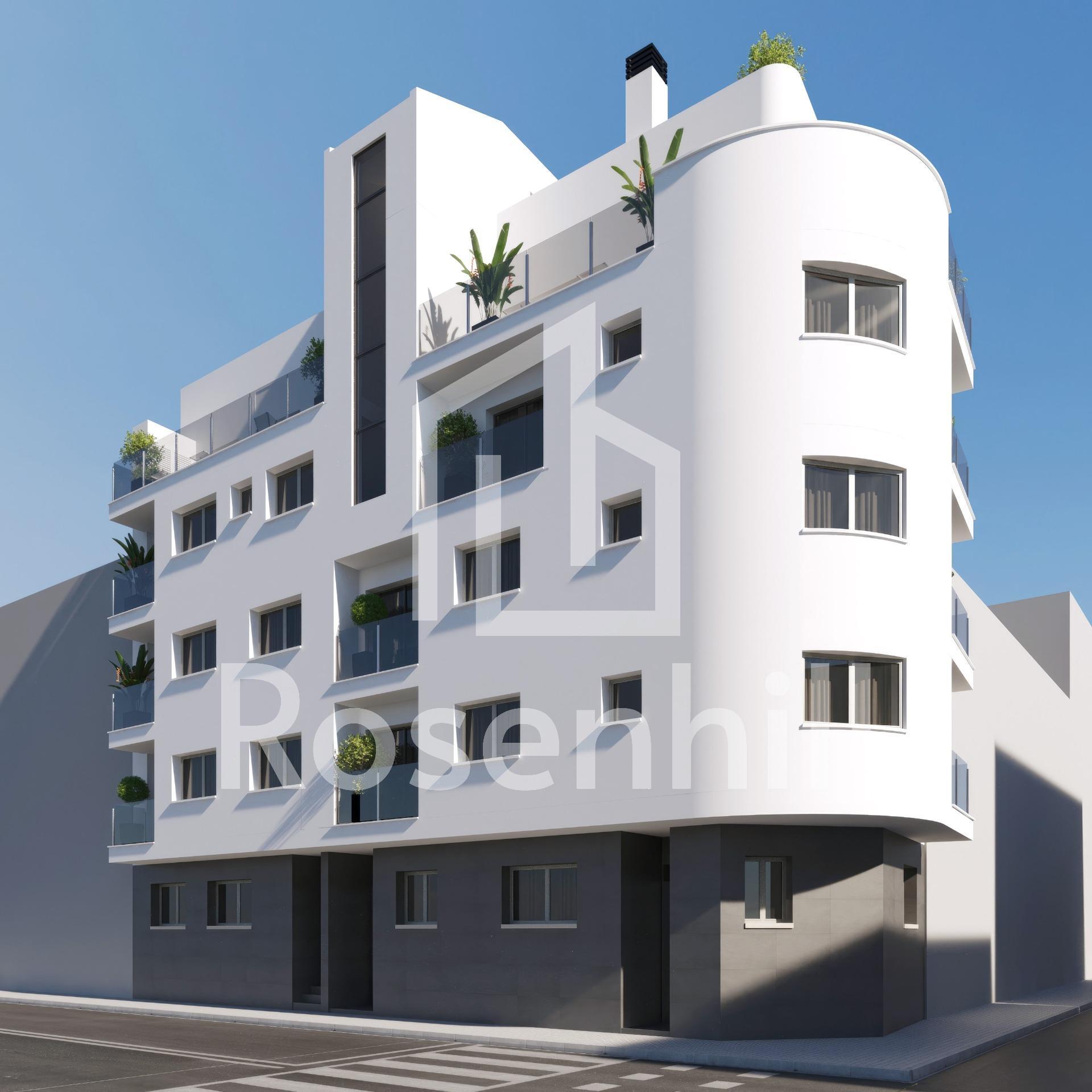 NEW BUILD APARTMENTS IN TORREVIEJA New Build apartments and penthouses in Torrevieja. New Build residential of 12 exclusive 1 and 2 bedrooms, 1 and 2 bathrooms apartments and penthouses, with open plan kitchen and living area, large, fitted wardrobes, fully equipped bathrooms with underfloor heating. All motorised aluminium blinds. Armoured entrance door with security lock. Pre-installation of air conditioning and heating. New Build residential complex with modern design and high quality finishes has a beautiful communal solarium. Torrevieja is a Spanish town in the province of Alicante, on the Costa Blanca. It is known for its typically Mediterranean climate and coastline. It has boardwalks with resorts along its sandy beaches. The small Museum of the Sea and Salt houses exhibitions on the fishing and salt history of the city. In the interior, the Lagunas de La Mata-Torrevieja Natural Park has trails and two salty lagoons, one pink and the other green. Alicante airport located 40 minutes away and Murcia airport about 1 hour away