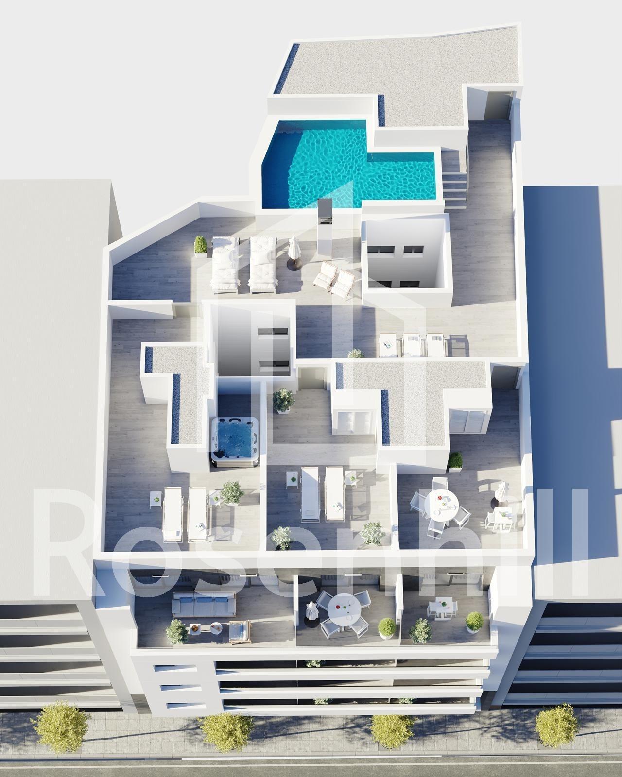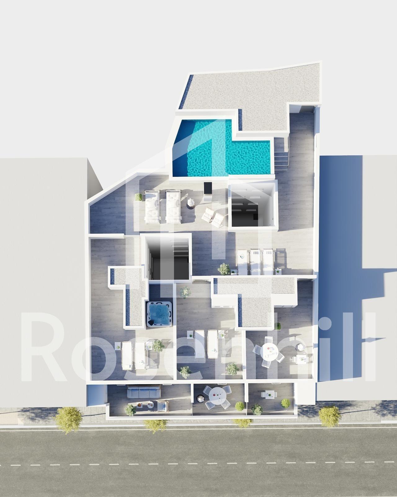 New Build Apartments in Torrevieja Just 400 m from Playa del Cura Prime Location in the Heart of Torrevieja Discover these brand new apartments and penthouses in one of the most sought after areas of Torrevieja, only 400 m from Playa del Cura and just 150 m from the seafront promenade. Located in the city centre, this vibrant neighborhood offers all essential services within walking distance, including supermarkets, shops, restaurants, cafes and public transport. Torrevieja is a well known coastal city on the Costa Blanca, famous for its mild Mediterranean climate, lively atmosphere and year round lifestyle by the sea. Modern Apartments with Spacious Layouts This exclusive new development consists of only 12 apartments and penthouses with 2 or 3 bedrooms, designed to offer comfort, functionality and contemporary style. Middle floor apartments feature generous terraces, while the penthouses enjoy an additional private solarium, ideal for sunbathing or outdoor dining. All homes include an open plan kitchen connected to the living and dining area, creating bright and welcoming interiors. Bedrooms come with fitted wardrobes, and bathrooms are fully equipped with furniture, mirrors and shower screens. Optional underground parking spaces and storage rooms are available at an extra cost. Quality Finishes and Energy Efficient Features The apartments are built with high quality materials and a strong focus on energy efficiency. Exterior aluminum carpentry includes thermal break technology and double glazing for thermal and acoustic insulation. Motorized shutters add comfort and security. Each home has pre installation for ducted air conditioning and heating, reinforced entrance doors and white lacquered interior doors. Hot water is produced through an aerothermal system, reducing energy consumption and improving sustainability. Rooftop Solarium with Communal Pool Residents can enjoy an exclusive rooftop solarium with a communal swimming pool, accessible by lift or stairs. This private area is perfect for relaxing, sunbathing and enjoying open views over the city. It provides a peaceful retreat above the lively streets of Torrevieja and adds significant value to the development. Torrevieja Lifestyle and Surroundings Torrevieja is known for its long coastline, sandy beaches and iconic salt lagoons. The Natural Park of La Mata and Torrevieja lagoons is approximately 5 km away and offers walking trails and unique landscapes. Several golf courses such as Villamartin Golf and Las Colinas Golf are within 12 to 18 km. Torrevieja Marina and port are around 1 km away. Alicante Airport is approximately 45 km and Murcia International Airport around 65 km, both with excellent European connections. Your Coastal Home Awaits Do not miss this opportunity to own a modern new build apartment close to the beach in Torrevieja. Contact us today for more information or to arrange a private viewing.