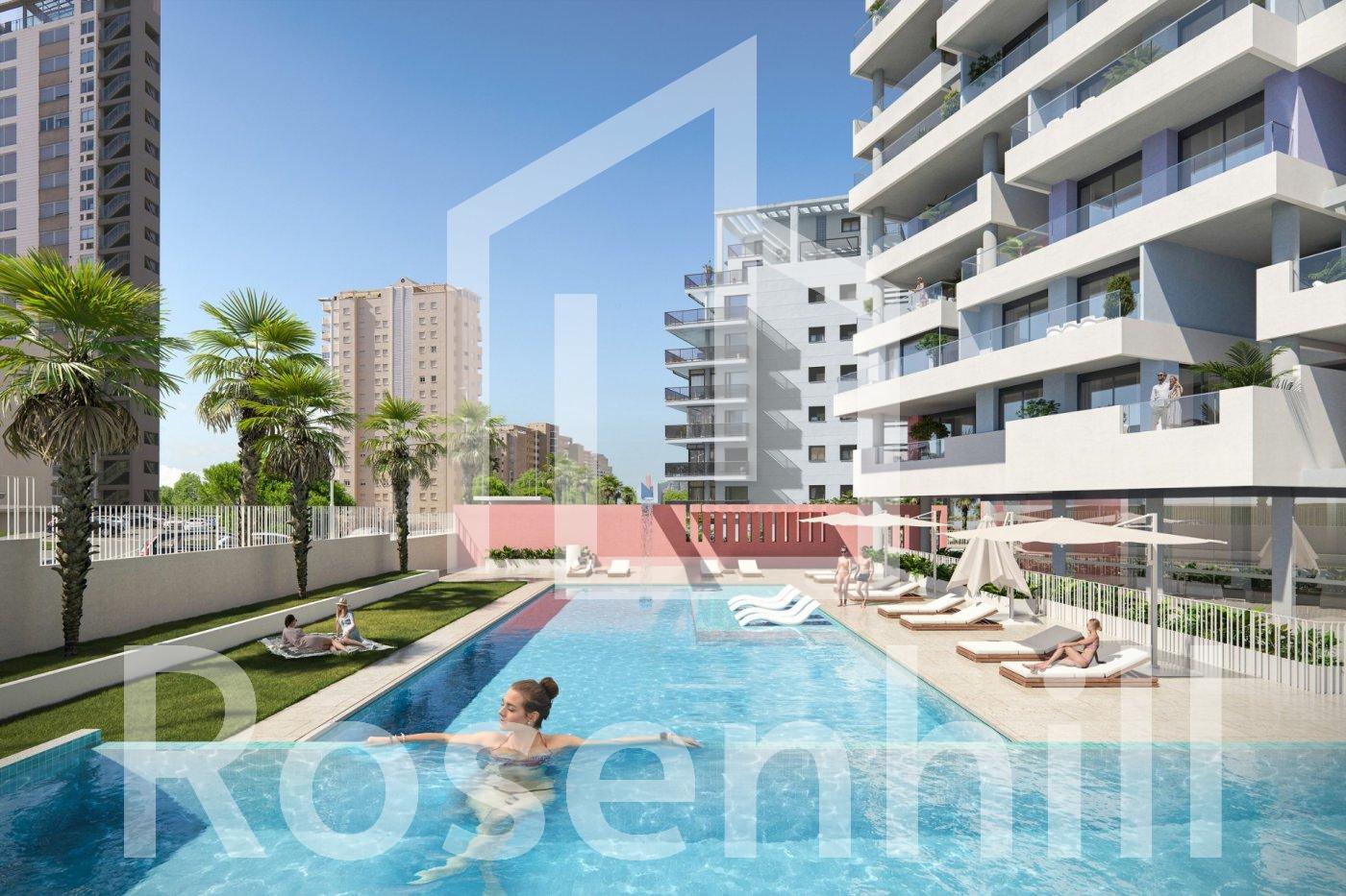NEW BUILD APARTMENTS WITH THE SEA VIEWS IN CALPE New Build residential complex of 1, 2 and 3 bedrooms apartments with large terraces in Calpe. Two towers of 18 floors with beautiful apartments with views of the sea and the salt lake of Calpe. Complete installation of ducted air conditioning, with pump of cold and heat, by aerothermal control thermostat in living room. Large common areas with gardens, swimming pool, paddle tennis, children’s area. On 11th floor of tower 1: infinity pool, sauna, gym and chill area out with sea views. Calpe, one of the towns of La Marina Alta, lies on the northern coast of the province of Alicante, surrounded by the towns of Altea, Benidorm, Teulada-Moraira, Benissa. Calpe has a wonderful mixture of old Valencian culture and modern tourist facilities. It is a great base from which to explore the local area or enjoy the many local beaches. Calpe alone has three of the most beautiful sandy beaches on the coast. Calpe also has two Sailing Clubs: Real Club Náutico de Calpe and Club Náutico de Puerto Blanco. Fishing village of Calpe now transformed into a tourist magnet, the town sits in an ideal location, easily accessed by the A7 motorway and the N332 that runs from Valencia to Alicante; its approximately 1 hour drive from the airport at Alicante and 1,5 hours to Valencias airport.
