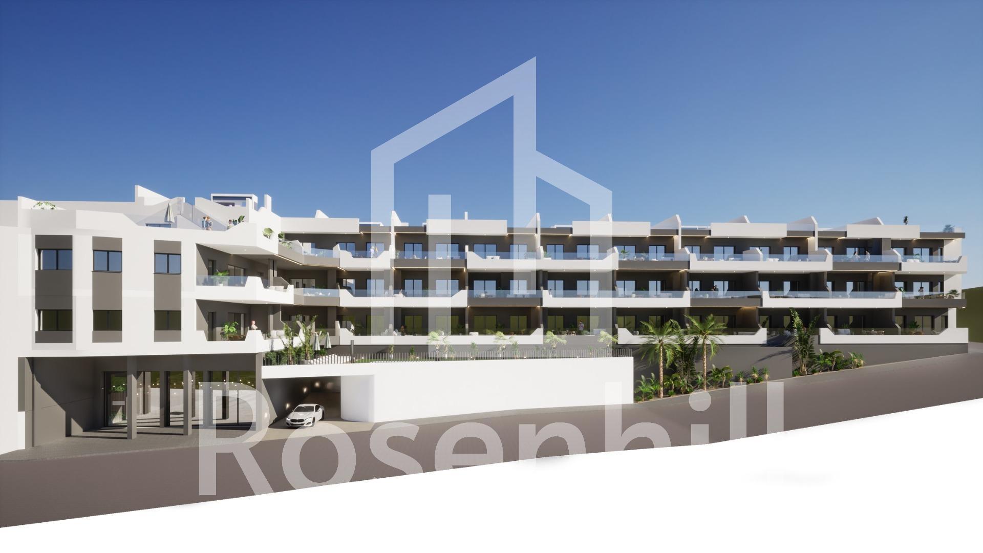 NEW BUILD BUILD RESIDENTIAL COMPLEX IN BENIJOFAR New Build residential complex in the quiet area of Benijofar. Residential made up of 35 apartments and penthouses with 2, 3 and 4 bedrooms and 2 bathrooms, open plan kitchen with the lounge area, fitted wardrobes, terraces.