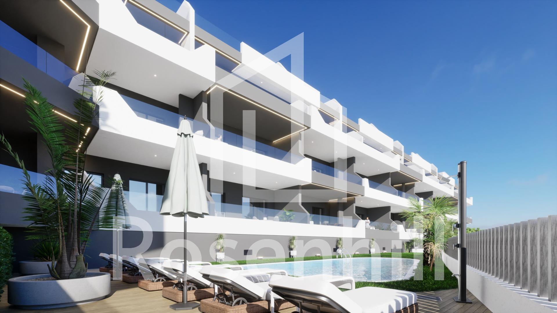 NEW BUILD BUILD RESIDENTIAL COMPLEX IN BENIJOFAR New Build residential complex in the quiet area of Benijofar. Residential made up of 35 apartments and penthouses with 2, 3 and 4 bedrooms and 2 bathrooms, open plan kitchen with the lounge area, fitted wardrobes, terraces.