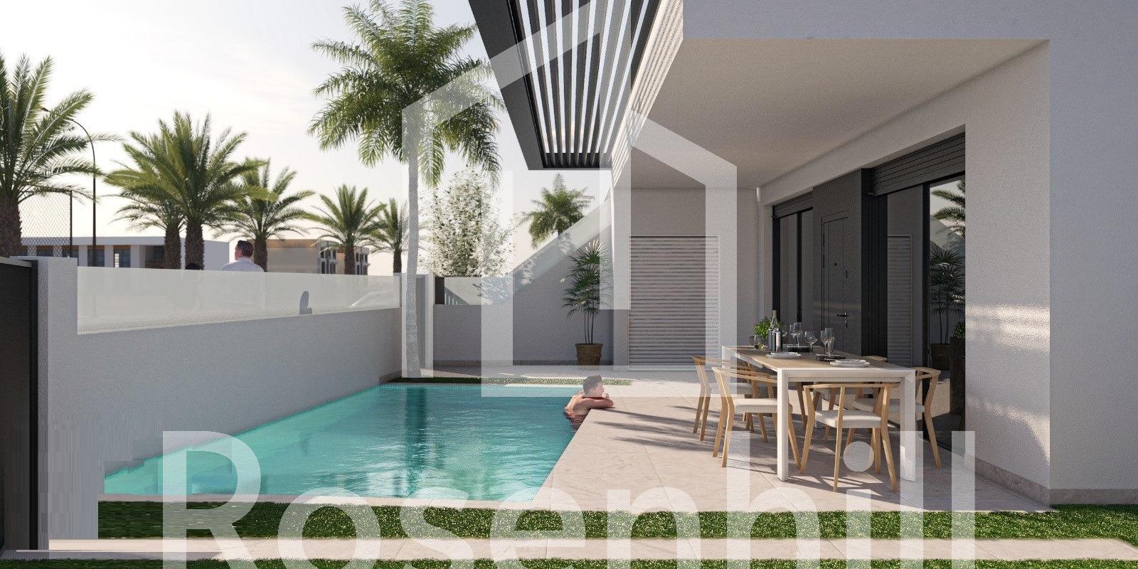 NEW BUILD BUNGALOW APARTMENTS IN SAN PEDRO DEL PINATAR New Build residential complex of beautiful modern 3 bedrooms bungalow apartments in San Pedro Del Pinatar . The ground floor bungalow have a terrace with private pool. The top floor bungalow have a large solarium with private pool . All bungalows has a parking space and storeroom. San Pedro del Pinatar’s privileged location on the Mar Menor and Mediterranean coastline it attracts those with an interest in sailing and watersports, providing marina mooring and sailing clubs, while the beaches and natural mud baths attract those seeking safe sun, sea and sand. San Pedro del Pinatar has an established community and offers an excellent range of activities, including covered swimming pool and sports facilities, as well as a year round programme of social activities by the pleasant winter weather. The benefits of the mud baths, typical of the region, or the calm waters of the Mar Menor, have favoured the growth of Lo Pagán, which currently has all kind of amenities. In addition, it has an excellent location, just 5 minutes from the Commercial Centre Dos Mares. Murcia/Corvera airport is 30 minutes away and Alicante airport is an hour drive away.