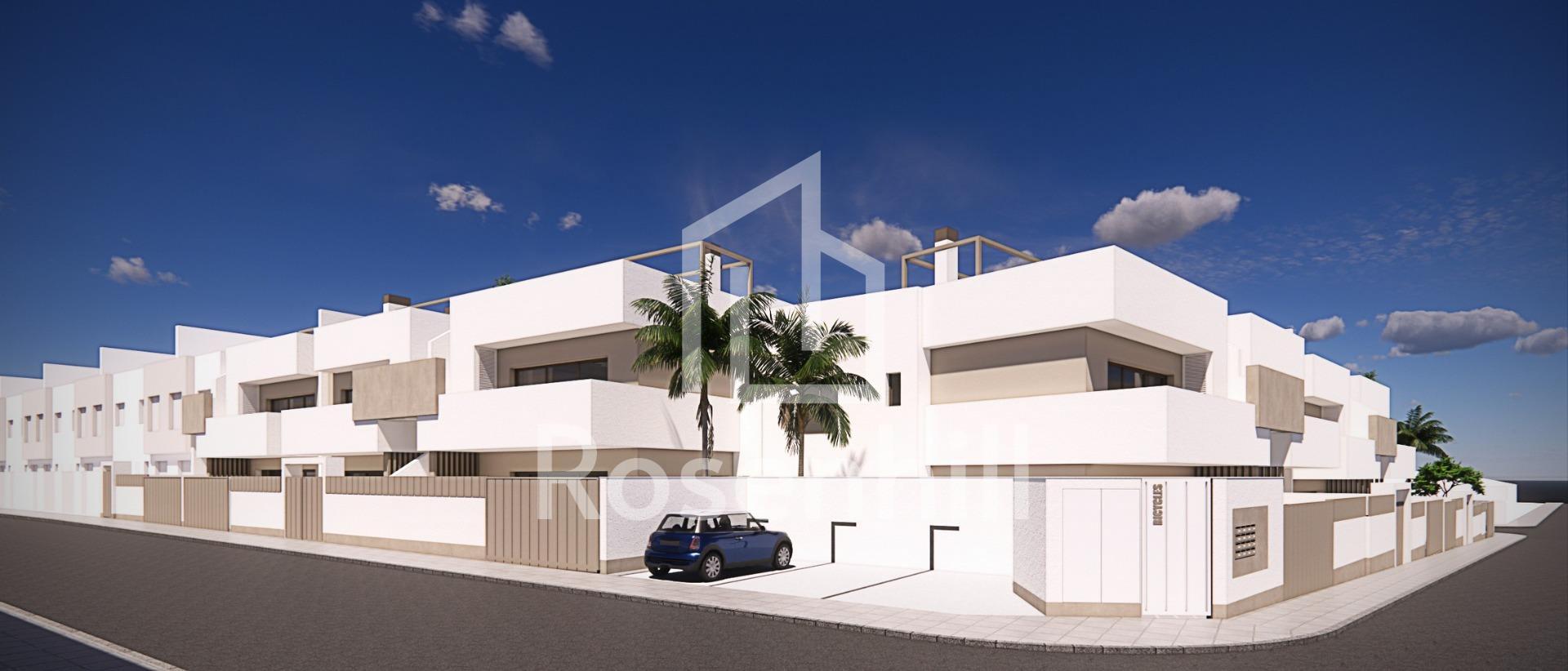 New Build Bungalows for Sale in Pilar de la Horadada 3 km from Beach Boutique Residential Development in Pilar de la Horadada Discover this exclusive new build residential complex of modern bungalows located in Pilar de la Horadada, the southernmost town of the Costa Blanca. This boutique project consists of only 14 carefully designed homes with 2 or 3 bedrooms and 2 bathrooms, offering an ideal combination of comfort, style and Mediterranean lifestyle. The development is situated in a quiet residential area within walking distance of the town center, allowing residents to enjoy easy access to shops, restaurants, supermarkets and essential services. Pilar de la Horadada is known for its welcoming atmosphere, traditional Spanish charm and lively main street filled with cafes, boutiques and charming squares. Modern Bungalows with Private Outdoor Spaces The homes have been designed to offer bright interiors and functional layouts, perfect for both permanent living and holiday use. Ground floor bungalows feature a private garden and private swimming pool, creating the perfect setting to enjoy outdoor living, sunbathing or entertaining family and friends. Top floor bungalows include a spacious terrace and a private rooftop solarium. The solarium comes with a summer kitchen and offers the option to add a private pool or jacuzzi at an extra cost, making it an ideal space to relax while enjoying the warm Mediterranean climate and open views. Each property includes a private parking space within the residential complex for added convenience. Quality Construction and Modern Features These new build homes are built with quality materials and modern installations designed to ensure comfort and energy efficiency throughout the year. Aluminum exterior carpentry with thermal break Fully fitted kitchens with included appliances Bathrooms equipped with mirrors and shower screens Interior and exterior LED lighting Hot water system with energy efficient aerothermal technology Pre installation for ducted air conditioning The combination of modern design and practical features makes these homes an excellent option for buyers looking for a contemporary property on the Costa Blanca. Excellent Location Close to Beaches and Golf Pilar de la Horadada enjoys a strategic location close to some of the best beaches and golf courses in the region. Torre de la Horadada beach 3 km Mil Palmeras beach 3 km Lo Romero Golf 6 km Region de Murcia International Airport 45 km Alicante Elche Airport 75 km The area also offers excellent road connections to nearby coastal towns, marinas and leisure facilities, making it a perfect base to explore the Costa Blanca and Costa Calida. Find Your New Home on the Costa Blanca If you are looking for a modern new build bungalow near the beach with excellent amenities and a fantastic location, this residential development in Pilar de la Horadada is an outstanding opportunity. Contact us today for more information or to schedule a visit.