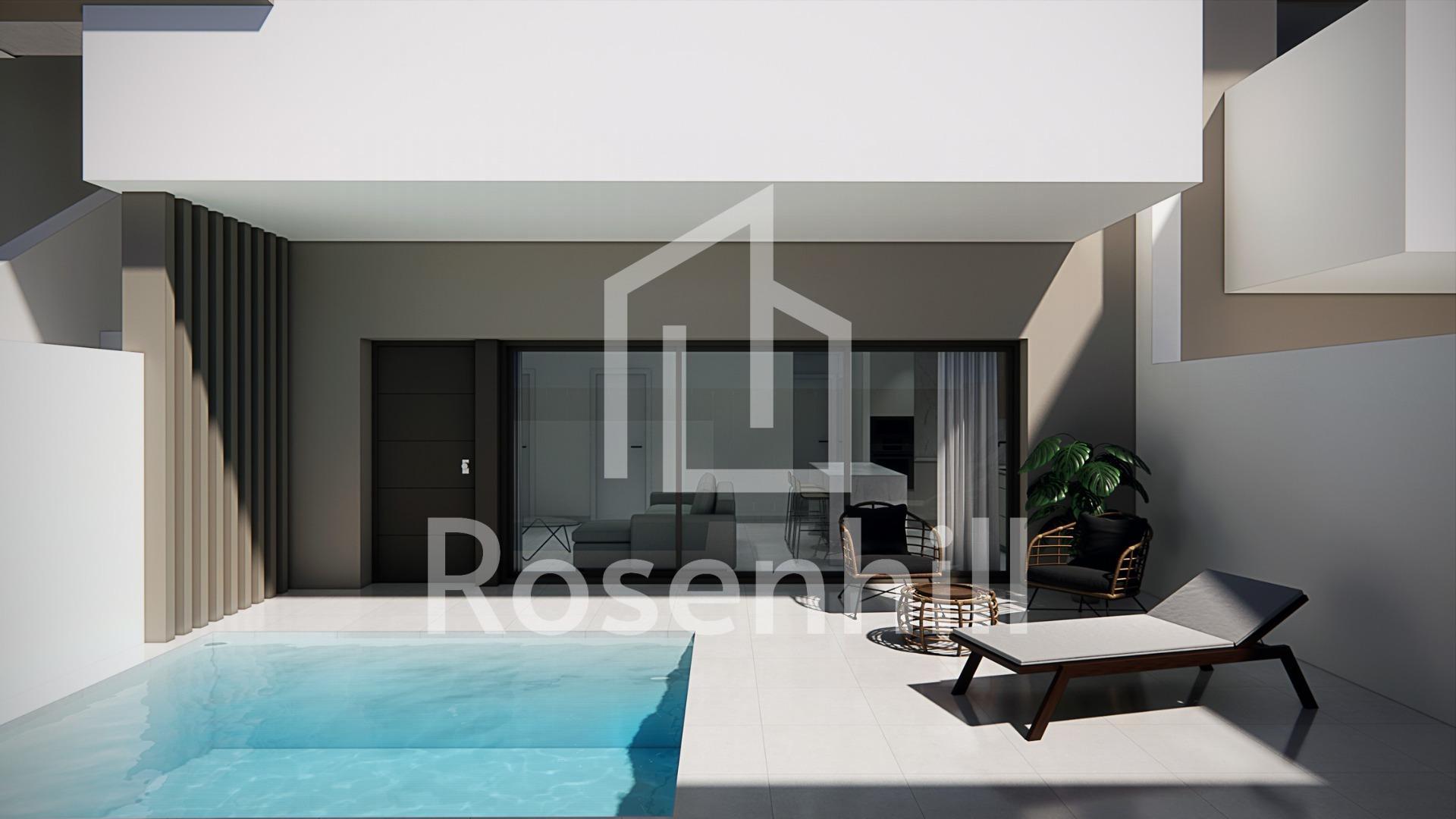New Build Bungalows for Sale in Pilar de la Horadada 3 km from Beach Boutique Residential Development in Pilar de la Horadada Discover this exclusive new build residential complex of modern bungalows located in Pilar de la Horadada, the southernmost town of the Costa Blanca. This boutique project consists of only 14 carefully designed homes with 2 or 3 bedrooms and 2 bathrooms, offering an ideal combination of comfort, style and Mediterranean lifestyle. The development is situated in a quiet residential area within walking distance of the town center, allowing residents to enjoy easy access to shops, restaurants, supermarkets and essential services. Pilar de la Horadada is known for its welcoming atmosphere, traditional Spanish charm and lively main street filled with cafes, boutiques and charming squares. Modern Bungalows with Private Outdoor Spaces The homes have been designed to offer bright interiors and functional layouts, perfect for both permanent living and holiday use. Ground floor bungalows feature a private garden and private swimming pool, creating the perfect setting to enjoy outdoor living, sunbathing or entertaining family and friends. Top floor bungalows include a spacious terrace and a private rooftop solarium. The solarium comes with a summer kitchen and offers the option to add a private pool or jacuzzi at an extra cost, making it an ideal space to relax while enjoying the warm Mediterranean climate and open views. Each property includes a private parking space within the residential complex for added convenience. Quality Construction and Modern Features These new build homes are built with quality materials and modern installations designed to ensure comfort and energy efficiency throughout the year. Aluminum exterior carpentry with thermal break Fully fitted kitchens with included appliances Bathrooms equipped with mirrors and shower screens Interior and exterior LED lighting Hot water system with energy efficient aerothermal technology Pre installation for ducted air conditioning The combination of modern design and practical features makes these homes an excellent option for buyers looking for a contemporary property on the Costa Blanca. Excellent Location Close to Beaches and Golf Pilar de la Horadada enjoys a strategic location close to some of the best beaches and golf courses in the region. Torre de la Horadada beach 3 km Mil Palmeras beach 3 km Lo Romero Golf 6 km Region de Murcia International Airport 45 km Alicante Elche Airport 75 km The area also offers excellent road connections to nearby coastal towns, marinas and leisure facilities, making it a perfect base to explore the Costa Blanca and Costa Calida. Find Your New Home on the Costa Blanca If you are looking for a modern new build bungalow near the beach with excellent amenities and a fantastic location, this residential development in Pilar de la Horadada is an outstanding opportunity. Contact us today for more information or to schedule a visit.