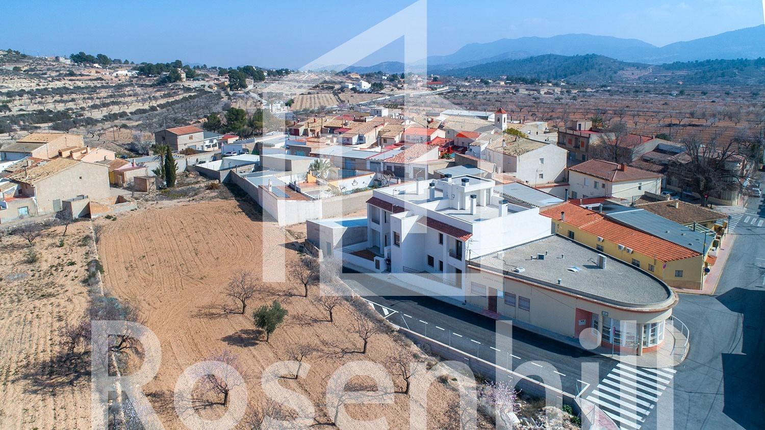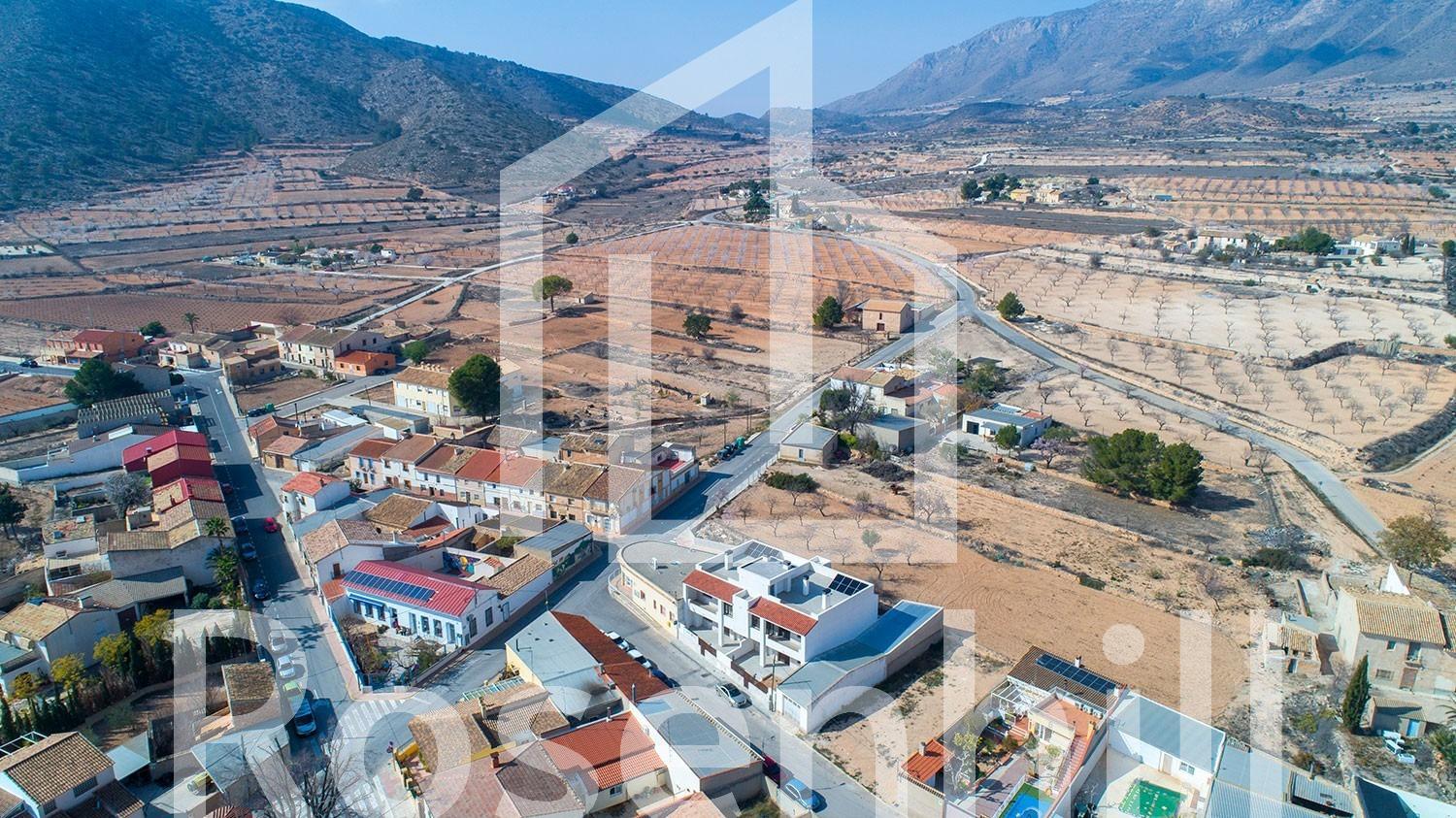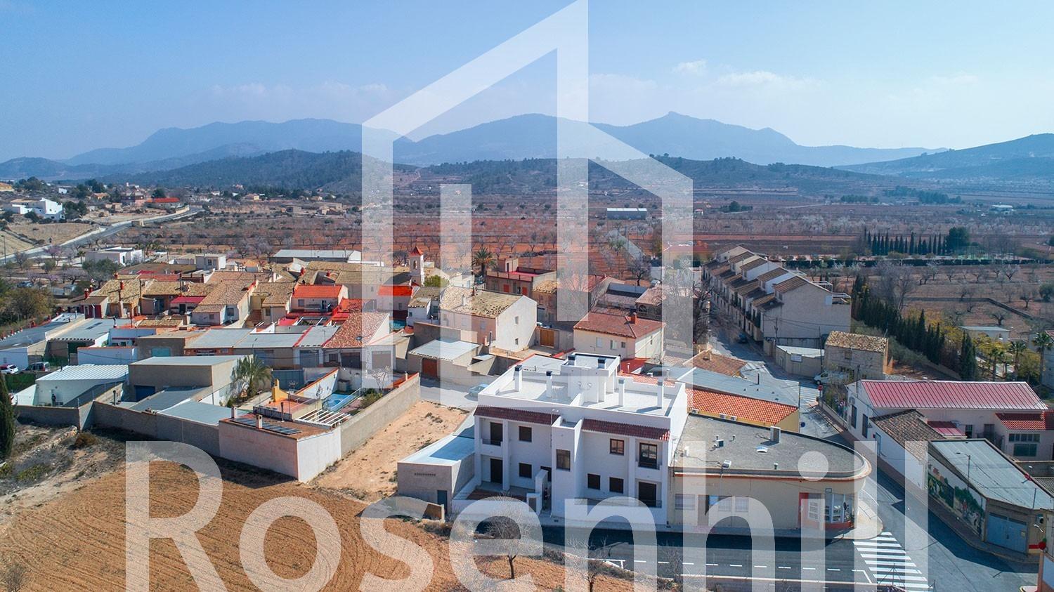 NEW BUILD BUNGALOWS IN HONDON DE LAS NIEVES New Build 4 bungalows located in Hondón de las Nieves (Alicante) All bungalows have 3 bedrooms with fitted wardrobes, 2 bathrooms, large living room, fitted kitchen and terrace. The properties are available on the ground floor with front and rear terrace/garden and on the top floor with terrace and private solarium. The first floor properties have photovoltaic panels on the roof for energy saving. The kitchens are fully furnished and finished with granite or synthetic agglomerate worktops (silestone or simular). The bathrooms are finished with high quality sanitary ware and taps with built-in cistern. These homes have pre-installation for ducted air conditioning with heat pump, forced ventilation with heat recovery, aerothermal system for domestic hot water, the most modern thermal and acoustic insulation, aluminium exterior carpentry with thermal bridge break and shutters. Hondón de las Nieves is a town in the Valencian Community, Spain. It is located in the southwest of the province of Alicante, in the region of Vinalopó Medio. The beaches and Alicante Airport are closely just 30 minutes drive away.
