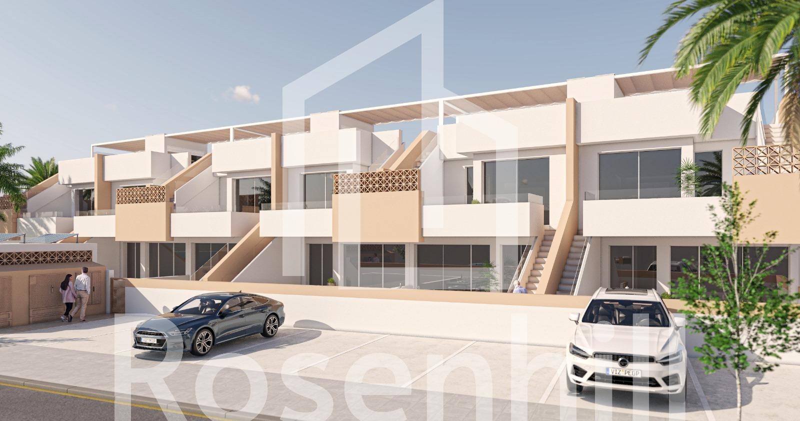 New Build Bungalows in Pilar de la Horadada Near the Beach and Town Centre Contemporary Living in the Heart of Costa Blanca Welcome to a boutique residential complex of 12 new build bungalows located in Pilar de la Horadada, a vibrant coastal town at the southern tip of the Costa Blanca. This prime location offers the perfect blend of tranquil Mediterranean living and convenience, with all essential services, shops, restaurants, and amenities within walking distance. The beautiful sandy beaches of Torre de la Horadada and Mil Palmeras are just 3 km away, ideal for relaxed beach days or water sports. Choice of Ground Floor or Top Floor Bungalows This exclusive development offers two types of modern homes to suit your lifestyle: Ground floor bungalows with 3 bedrooms, 2 bathrooms, and large private front and rear terraces with direct access to the communal pool and gardens. Top floor bungalows with 2 bedrooms, 2 bathrooms, and an expansive private rooftop solarium, complete with a summer kitchen, pergola, and guest toilet. All homes feature bright open-plan living areas, fully equipped kitchens, ducted air conditioning, and private parking. Bedrooms include built-in wardrobes and the bathrooms benefit from underfloor heating for added comfort. Premium Features for Modern Mediterranean Living The homes are designed with high-quality finishes and practical features, including: Armoured front door with aluminium finish Electric shutters in living room and bedrooms Aerothermal hot water system Kitchen appliances from BALAY or equivalent Rooftop solariums with artificial grass, outdoor shower, lighting, and full summer kitchen with dishwasher, small fridge, induction hob, and extractor. Strategic Location with Excellent Connectivity Pilar de la Horadada is well connected to major points of interest along the Costa Blanca and Costa Cálida: Beaches (Torre de la Horadada / Mil Palmeras) – 3 km Lo Romero Golf Course – 6 km Corvera Airport (Murcia) – 40 km Alicante Airport – 55 km Zenia Boulevard Shopping Centre – 14 km Marina of San Pedro del Pinatar – 11 km Your Ideal Home in the Sun Whether you’re looking for a holiday escape, a year-round residence, or a rental investment, these bungalows in Pilar de la Horadada offer excellent value and quality in one of the Costa Blanca’s most desirable towns. Contact us today to arrange a viewing or request more information!