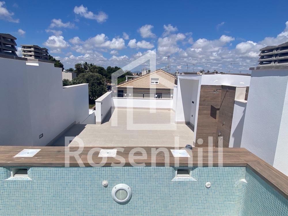 New Build Bungalows in San Pedro del Pinatar Modern Living Near the Beach Contemporary Coastal Homes in El Salero San Pedro del Pinatar Discover these stylish 12 new build bungalows located in El Salero, a charming residential area of San Pedro del Pinatar on the Costa Calida. This sought after location offers the perfect balance between coastal living and everyday convenience, with supermarkets, restaurants, cafes and essential services all within walking distance. San Pedro del Pinatar is well known for its natural mud baths, salt flats and relaxed Mediterranean lifestyle. With a welcoming community and a mild climate all year round, it is an ideal destination for both permanent living and holiday homes. Prime Location Close to the Mar Menor and Mediterranean Sea These properties are ideally located just 2 km from the beaches of Villa Nanitos on the Mar Menor and El Mojon on the Mediterranean Sea, both easily reachable within a 20 minute walk. The area is perfect for water sports enthusiasts, with nearby marinas, sailing clubs and coastal promenades. Modern Design and Functional Layouts The development offers modern bungalows with 2 bedrooms and 2 bathrooms, designed with open plan kitchens and bright living spaces that maximize natural light. Ground floor units feature spacious private terraces with the option to add a private swimming pool at an additional cost. Top floor properties include a private rooftop solarium with a swimming pool already included, providing the perfect space to relax and enjoy the Mediterranean sun. Each property also includes a private parking space. High Quality Finishes and Energy Efficiency These homes are built with high quality materials and modern specifications to ensure comfort and efficiency. Features include pre installation for ducted air conditioning, aerothermal system for hot water and electric shutters. Bathrooms come fully equipped with vanity units, mirrors, shower screens and underfloor heating. A complete LED lighting package is included both indoors and outdoors, enhancing the overall ambiance of the property. Excellent Connectivity and Nearby Amenities San Pedro del Pinatar offers excellent connections to key destinations. The Dos Mares shopping center is approximately 4 km away, while Murcia International Airport is around 35 km. Alicante Airport can be reached in approximately 75 km. Several golf courses and marinas are located within a short drive, making this an ideal location for leisure and recreation. Ideal Property for Investment or Year Round Living These new build bungalows combine modern design, a prime coastal location and high quality finishes, making them an excellent choice for investment, holiday use or permanent residence. Contact us today to receive more information or to arrange a viewing and secure your new home in San Pedro del Pinatar.