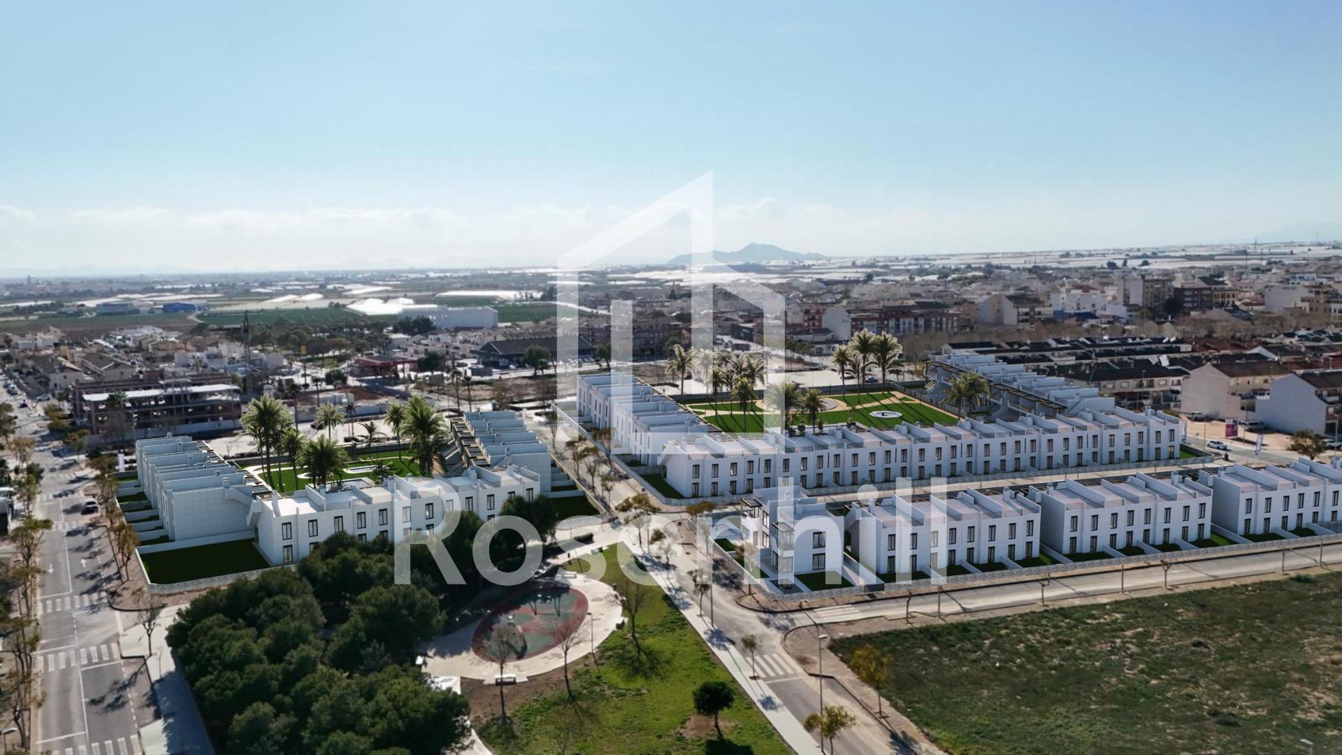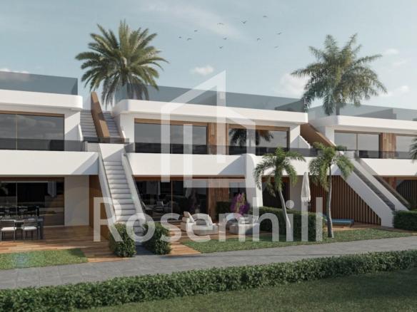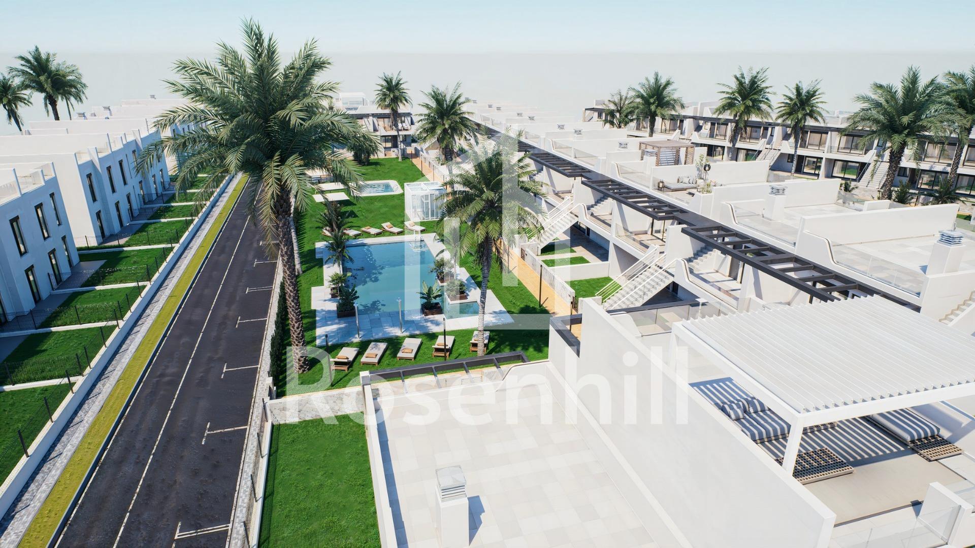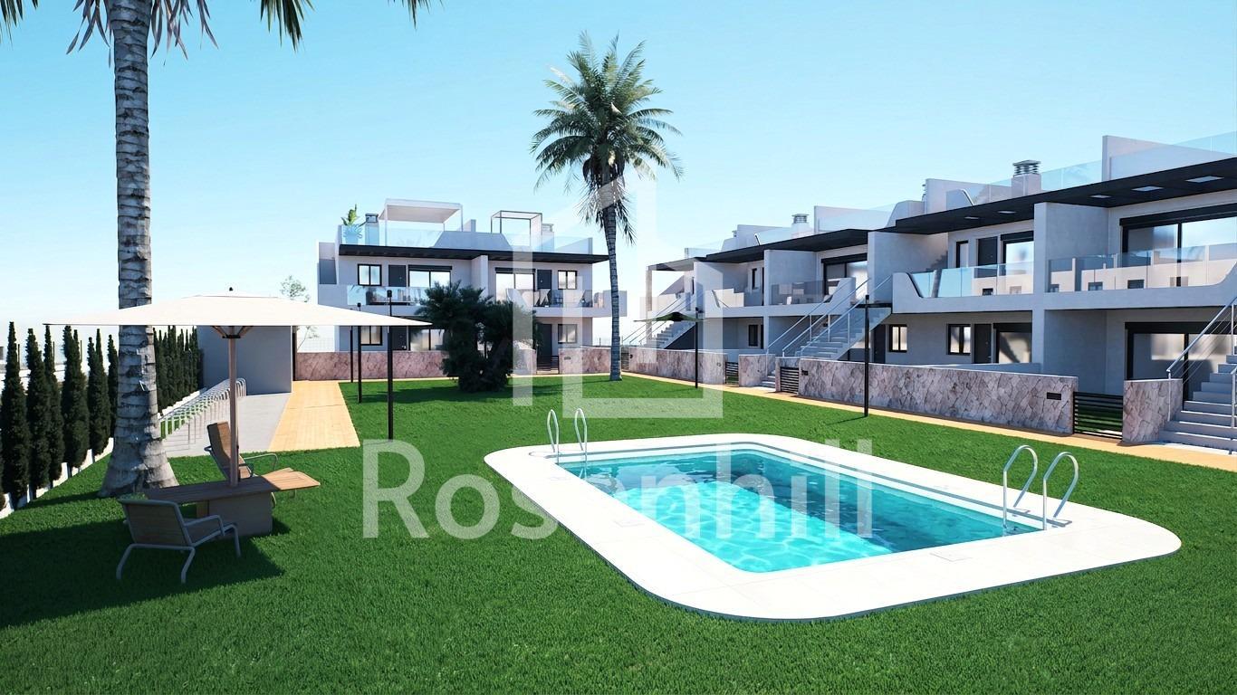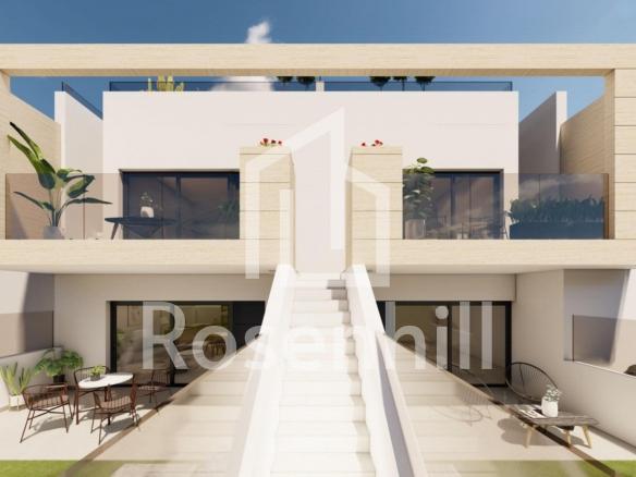 New Build Bungalows with Garden or Solarium Near the Beach in Pilar de la Horadada Modern Mediterranean Homes Designed for Comfort Discover this exclusive new build residential complex in Pilar de la Horadada, offering contemporary bungalows located less than 2 km from the beach. Designed to combine comfort, style and functionality, these homes are ideal for year round living, holidays or as a smart investment on the Costa Blanca. The development offers a choice between ground floor bungalows with private gardens and top floor bungalows with private rooftop solariums. Each property is thoughtfully designed to maximize outdoor living and make the most of the Mediterranean climate. Spacious 2 Bedroom Properties with High Quality Finishes Each bungalow features 2 bedrooms and 2 bathrooms, one of them ensuite, along with a private parking space in the underground garage. The homes are built with quality materials and modern finishes that ensure energy efficiency and durability. Key features include: Preinstallation for ducted air conditioning Aluminium exterior carpentry with double glazing and motorized shutters Security entrance door for peace of mind Aerothermal system for efficient hot water production Built in wardrobes in all bedrooms Fully equipped bathrooms with furniture and shower screens These specifications provide a comfortable and practical home suitable for all seasons. Private Community with Pool and Landscaped Gardens The residential complex is private and secure, with beautifully landscaped communal gardens and a large communal swimming pool. This creates a pleasant and relaxing environment where residents can unwind and enjoy the excellent climate. Located just outside the town center, the development allows residents to walk to supermarkets, restaurants, bars, schools and essential services without needing a car. Excellent Location Close to Beaches and Services Pilar de la Horadada is a charming Spanish town in the southernmost part of the Costa Blanca, known for its lively atmosphere, local shops, traditional squares and friendly community. The sandy beaches of Torre de la Horadada Beach and Mil Palmeras Beach are just 2 km away, offering fine golden sand, a scenic promenade and a marina. The area is also ideal for cycling, walking and outdoor sports. Distances to Key Points of Interest Lo Romero Golf 5 km La Zenia Boulevard 15 km Murcia Corvera Airport 40 km Alicante Airport 55 km Torre de la Horadada Marina 3 km Reserve Your New Home Today Do not miss this opportunity to own a brand new bungalow near the beach in one of the most desirable areas of the Costa Blanca. Contact us today for more information and to arrange a visit.