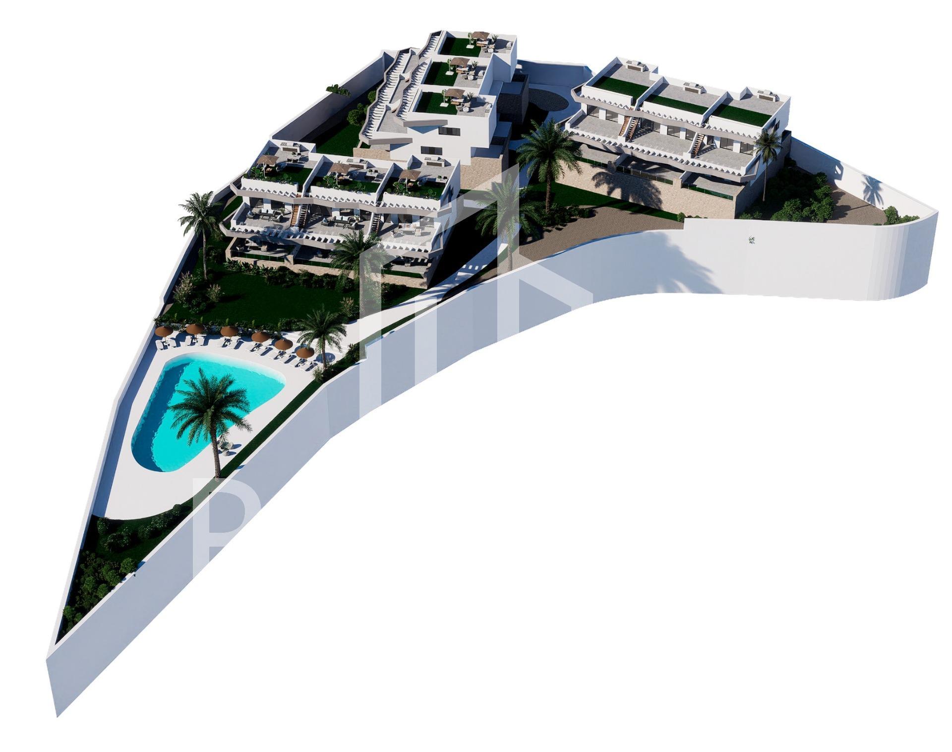 New Build Homes with Panoramic Views in Finestrat-Benidorm Exclusive Residential Development with Sea and City Views Welcome to the second phase of an exclusive new-build residential complex in Finestrat-Benidorm, offering stunning panoramic views of the Mediterranean Sea and Benidorm skyline. These modern homes feature 2 or 3 bedrooms, 2 bathrooms, and spacious living areas filled with natural light. Choose between: Top-floor bungalows with a private solarium. Ground-floor bungalows with a private garden and the option of adding a private pool. Built with high-quality materials, these homes maximize natural light throughout the day and feature large terraces to enjoy Alicante’s 320+ days of sunshine per year. Prime Location Near the Best of Costa Blanca This exclusive residential complex is located near some of the best beaches, shopping areas, and leisure facilities on the Costa Blanca. Distances to key locations: Beaches (Levante, Poniente, Cala de Finestrat) – 4 km. Golf courses (Sierra Cortina, Villaitana) – 1 km. Benidorm city center – 5-minute drive. Alicante International Airport – 40 km (30-minute drive). High-speed train (AVE) connection – 30 minutes. The area offers excellent connectivity and is surrounded by essential services, including hospitals, schools, public transport, shopping centers, and restaurants. Premium Features for Comfort and Quality Each home includes: Private parking space. Optional storages for an extra cost. Reinforced security door. PVC windows with thermal break and double glazing. Ducted pre-installation for air conditioning. Aerothermal system for hot water. Access to a large communal pool. A Unique Opportunity for Investment and Quality Living Located in the beautiful Marina Baixa region, Finestrat offers a peaceful atmosphere while being just minutes from the vibrant Benidorm. Enjoy the best of both worlds—relax in a serene environment while having access to top attractions like Terra Mítica, Aqualandia, Mundomar, and Terra Natura. With its proximity to beaches, golf courses, and outdoor activities like hiking at Puig Campana, this is one of the best areas to invest in the Costa Blanca. Don’t miss this unique opportunity! Contact us today to schedule a visit and find your dream home in Finestrat-Benidorm.