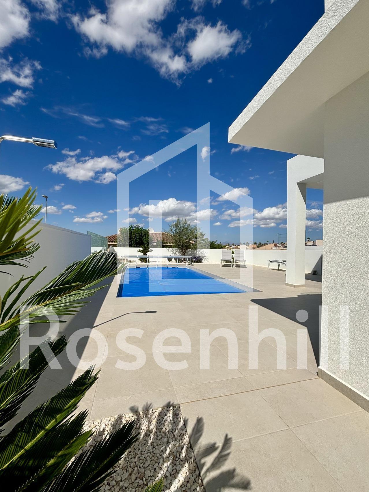 New Build Mediterranean Villas in Benijófar Modern and Stylish Villas in Benijófar Located on the outskirts of the charming town of Benijófar, these stunning, contemporary villas offer the perfect blend of modern design and traditional Spanish living. Benijófar, situated in the heart of Costa Blanca, is just 30 minutes by car from Alicante city and its international airport. The area is also conveniently located 8 km from golden sandy beaches and 10 minutes from two top-quality golf courses. Spacious Villas with Private Pools Each villa sits on a generous plot of over 400 m², featuring a private pool (7×3.5 m) and 3 bedrooms with 2 bathrooms, all on a single floor. Optional extras include a solarium and storage room. The villas are built to the highest standards, with top-quality finishes such as Schüco windows, motorized shutters, photovoltaic solar panels, and an automatic irrigation system for the garden. Traditional Spanish Town with Modern Amenities Benijófar is a traditional Spanish town known for its vibrant fiestas, weekly street markets, and picturesque town square. It borders Ciudad Quesada, just 2 minutes away by car, offering a wide range of amenities including restaurants, bars, shops, live entertainment, a summer water park, and a country club. This ideal location offers a perfect year-round residence to enjoy the sun, sea, and your own private pool in a peaceful, traditional setting.