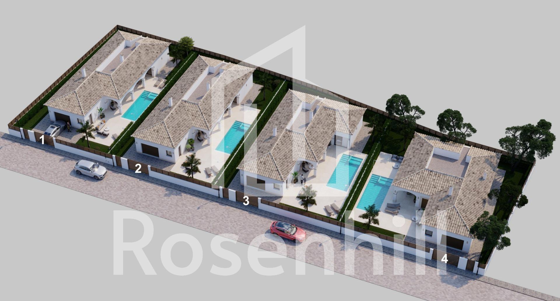 New Build Mediterranean Villas in San Pedro del Pinatar Exclusive Residential of 4 Independent Villas This new development of 4 Mediterranean-style villas in San Pedro del Pinatar combines elegance, comfort, and an unbeatable location on the Costa Cálida. Just 600 meters from the beach and within walking distance of shops, restaurants, and leisure facilities, these homes are perfect as a holiday retreat, permanent residence, or investment. Prime Location on the Costa Cálida San Pedro del Pinatar is a charming coastal town nestled between the Mar Menor and the Mediterranean Sea. Famous for its yacht clubs, natural mud baths in Lo Pagán, and lively promenade, it offers a unique lifestyle by the sea. Excellent connections make it easy to reach key destinations: Murcia-Corvera Airport: 30 km Alicante Airport: 75 km Dos Mares Shopping Center: 5 km Golf courses: 10–20 km radius Marina: 1 km Modern Villas on Spacious Plots Each villa is built on a 500 m2 plot with a functional single-floor design. The layout includes: 3 bedrooms (2 with ensuite bathrooms) 4 bathrooms (including one exterior by the pool) Open-plan living room and kitchen with access to a covered porch Closed garage and laundry room Large private garden with swimming pool High-Quality Finishes and Comfort These homes have been designed with attention to detail and first-class finishes to guarantee both style and functionality. Main features include: Fully fitted kitchen with appliances (induction hob, oven, extractor, dishwasher, microwave, washing machine) Pre-installed ducted air conditioning Internal and external LED lighting Electric shutters for added comfort Mediterranean Lifestyle by the Sea Living in San Pedro del Pinatar means enjoying a relaxed coastal atmosphere with all modern services nearby. The calm waters of the Mar Menor provide year-round opportunities for swimming, sailing, and water sports, while the nearby marina is perfect for nautical enthusiasts. Secure Your Dream Villa Today With completion scheduled for mid-2026, now is the ideal time to reserve your new villa in San Pedro del Pinatar. Contact us today to arrange a visit and start enjoying the Mediterranean lifestyle you deserve.