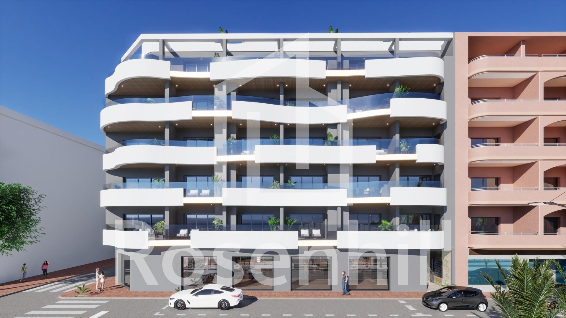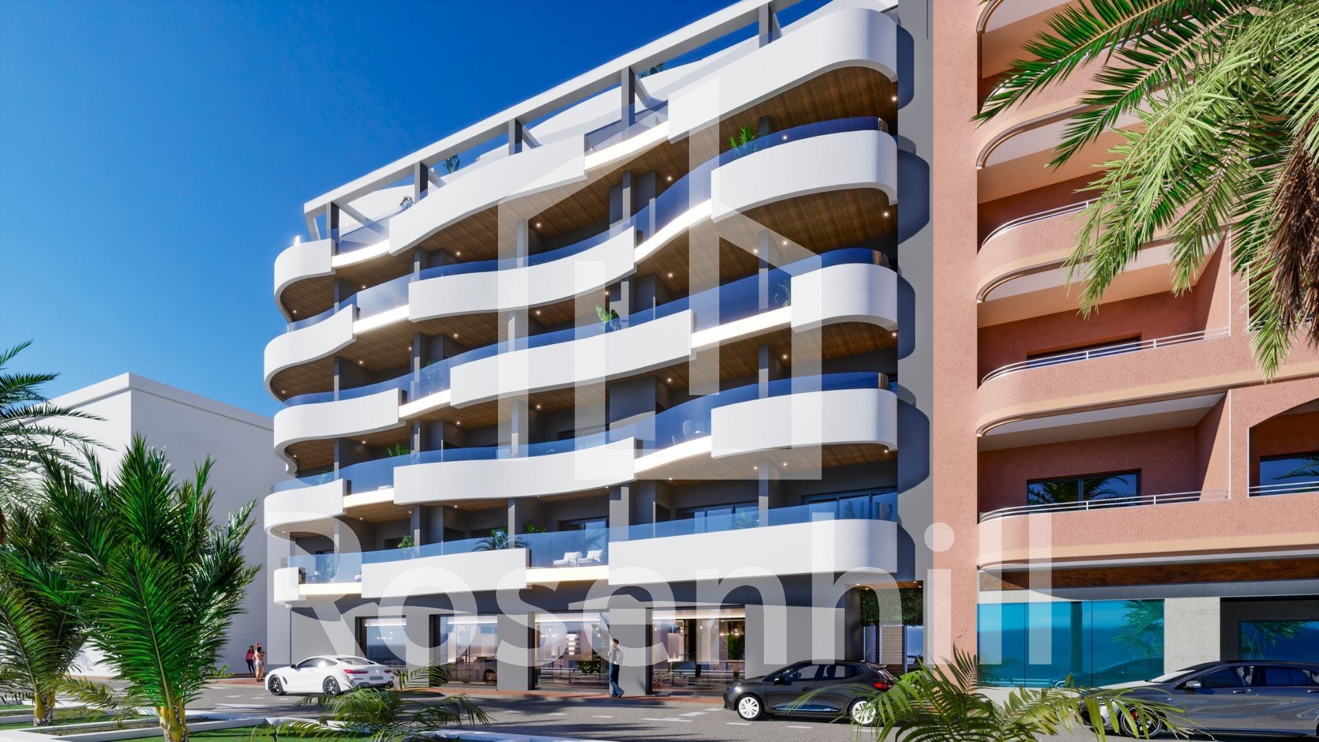 NEW BUILD PENTHOUSES IN TORREVIEJA New Build avant-garde design five-storey development in Torrevieja with 34 exclusive properties offers a variety of living options, from stylish apartments to penthouses with breathtaking panoramic views. Every corner of residential has been carefully planned to maximise space and natural light, creating bright and welcoming environments that invite well-being. Residential majestically located in the heart of Torrevieja, consolidating itself as a residential development full of elegance and modernity. Its strategic location ensures that residents will feel part of this amazing city with easy access to a variety of services and attractions. It is a unique opportunity to invest in a sophisticated lifestyle in the heart of Torrevieja! Its unrivalled location, avant-garde design and meticulous attention to detail ensure that this residential development is much more than a place to live: it is a home where dreams take shape and life is lived to the fullest. Torrevieja is a Spanish town in the province of Alicante, on the Costa Blanca. It is known for its typically Mediterranean climate and coastline. It has boardwalks with resorts along its sandy beaches. The small Museum of the Sea and Salt houses exhibitions on the fishing and salt history of the city. In the interior, the Lagunas de La Mata-Torrevieja Natural Park has trails and two salty lagoons, one pink and the other green. Alicante airport located 40 minutes away and Murcia airport about 1 hour away.