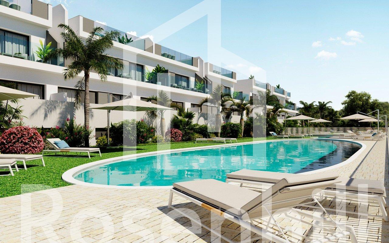 NEW BUILD RESIDENCIAL IN LOS BALCONES, TORREVIEJA New Build residential complex of semi-detached villas and bungalows located in Los Balcones with the views to the pink lake. New Build ground floor bungalows has 2 bedrooms, 3 bathrooms, open plan kitchen with spacious living room, fitted wardrobes, semi basement, private terrace and underground parking space. New exclusive residential with big communal areas; gardens, garden-gym, playground, 2 big communal swimming pools – one of them for adults, and the other one for children. Los Balcones is a small town located near Torrevieja south. Torrevieja is a Spanish town in the province of Alicante, on the Costa Blanca. It is known for its typically Mediterranean climate and coastline. It has boardwalks with resorts along its sandy beaches. The small Museum of the Sea and Salt houses exhibitions on the fishing and salt history of the city. In the interior, the Lagunas de La Mata-Torrevieja Natural Park has trails and two salty lagoons, one pink and the other green. Alicante airport located 40 minutes away and Murcia airport about 1 hour away.