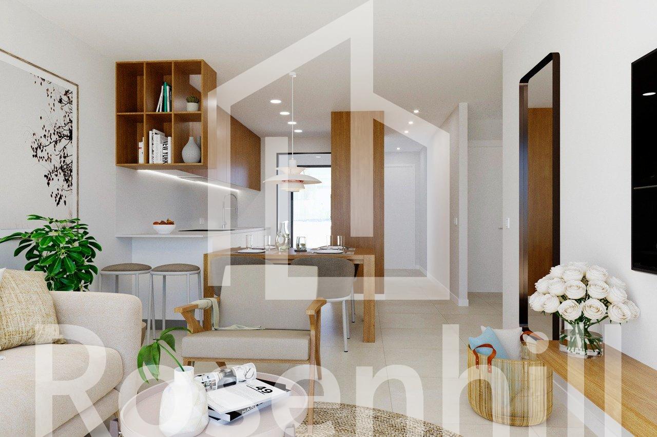 NEW BUILD RESIDENCIAL IN LOS BALCONES, TORREVIEJA New Build residential complex of semi-detached villas and bungalows located in Los Balcones with the views to the pink lake. New Build ground floor bungalows has 2 bedrooms, 3 bathrooms, open plan kitchen with spacious living room, fitted wardrobes, semi basement, private terrace and underground parking space. New exclusive residential with big communal areas; gardens, garden-gym, playground, 2 big communal swimming pools – one of them for adults, and the other one for children. Los Balcones is a small town located near Torrevieja south. Torrevieja is a Spanish town in the province of Alicante, on the Costa Blanca. It is known for its typically Mediterranean climate and coastline. It has boardwalks with resorts along its sandy beaches. The small Museum of the Sea and Salt houses exhibitions on the fishing and salt history of the city. In the interior, the Lagunas de La Mata-Torrevieja Natural Park has trails and two salty lagoons, one pink and the other green. Alicante airport located 40 minutes away and Murcia airport about 1 hour away.