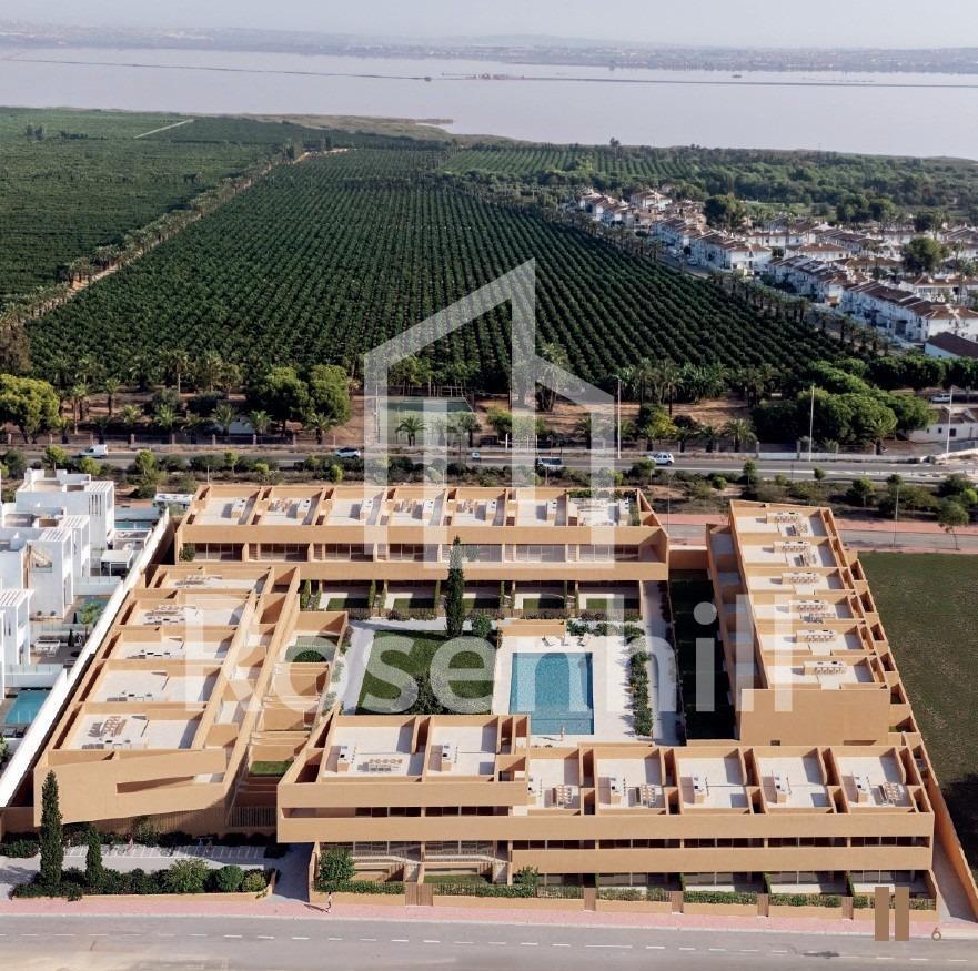 New Build Residential Apartments in Los Balcones, Torrevieja Modern Homes in a Prime Residential Area Discover this attractive new build residential complex located in Los Balcones, one of the most popular and established neighborhoods on the outskirts of Torrevieja. Set in a peaceful environment with excellent access to all essential services, this development is just 4 km from the sandy beaches of the Costa Blanca. Los Balcones is known for its relaxed atmosphere, wide streets, green areas and proximity to hospitals, supermarkets, restaurants and shopping centers, making it ideal for year round living or holiday use. Contemporary Apartments with Private Outdoor Spaces The complex consists of 52 modern apartments built on a total surface of 6700 m2. Each property includes a private parking space and a storage room in the underground. The homes offer 2 or 3 bedrooms and 2 bathrooms, one of them en suite. Buyers can choose between ground floor apartments with a private garden or upper floor homes with a spacious terrace and a private solarium. These layouts are designed to maximize natural light and provide comfortable indoor and outdoor living spaces to enjoy the Mediterranean climate all year round. Communal Areas Designed for Relaxation The project is arranged into four blocks surrounding a large central communal area. This green heart of the development features a swimming pool with a dedicated children area and beautifully landscaped gardens. These shared spaces are perfect for relaxation, socializing and family time in a safe and friendly environment. Quality Features and Energy Efficient Design Each apartment is built to modern standards and includes pre installation of ducted air conditioning, an aerothermal hot water system for improved energy efficiency, exterior lighting and double glazed exterior carpentry. The kitchens come fully furnished, offering a functional and stylish space for daily living. These features ensure a high level of comfort, low maintenance and reduced energy consumption, making the homes both practical and sustainable. Excellent Location Near Beaches and Golf Los Balcones offers a strategic location close to many points of interest. The beaches of Torrevieja are approximately 4 km away. Several renowned golf courses such as Villamartin Golf, Las Ramblas Golf and Campoamor Golf are within 10 to 15 km. The University Hospital of Torrevieja is less than 2 km away, adding convenience and peace of mind. Torrevieja town center is around 5 km away, connected by bus with Los Balcones, where you will find a wide range of shops, restaurants, cultural venues and a lively marina. Alicante International Airport is located about 42 km away, providing easy international connections. The port of Torrevieja is approximately 6 km away. Ideal for Living or Investment With its modern design, excellent communal areas and prime location near beaches, golf and services, this new residential complex in Los Balcones Torrevieja is perfect as a permanent residence, holiday home or investment opportunity. Contact us today for more information or to arrange a viewing of these new build apartments in Los Balcones, Torrevieja.