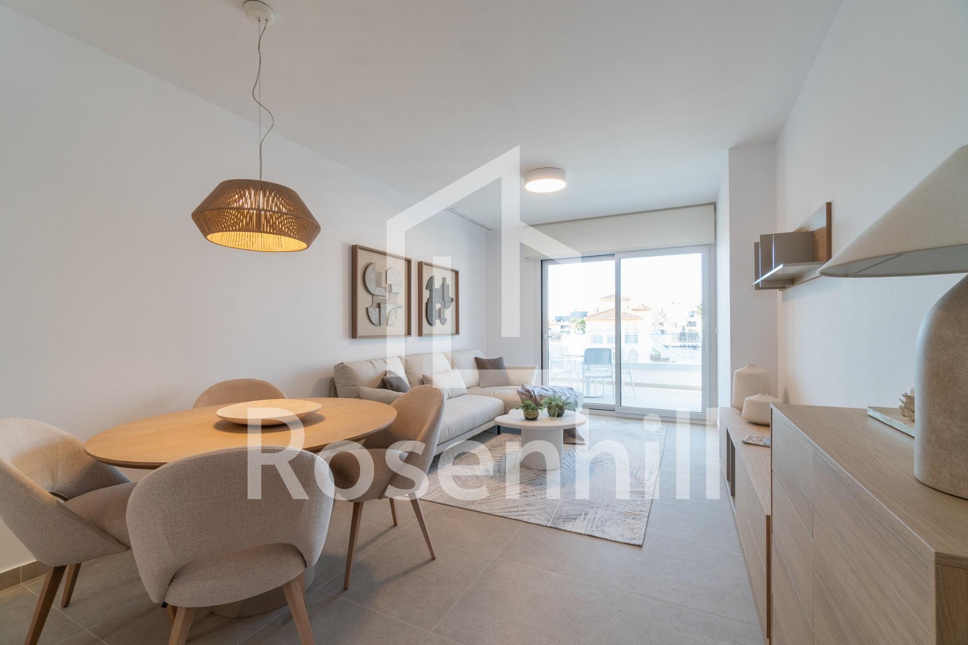 NEW BUILD RESIDENTIAL AT PLAYA FLAMENCA!!! From a well established developer we are proud to offer this just released new residential just 500 m away from sea at popular Playa Flamenca (Orihuela Costa). Residential with nice comunal pools, jacuzzis and nice common gardens. All services like supermarkets, bars and restaurants, etc are within walking distance in a very central spot at Orihuela Costa. Wide variety of types to choose from: studios, 1, 2 or 3 bedroom apartments. Low floors with private gardens or top floors with private solariums. All houses come with a parking space and a storage room included in the price. Zenia Boulevard shopping center 1km away and several golf courses like Villamartin, Campoamor within 5 km from this residential will make an ideal location for your holidays or your permanent living.