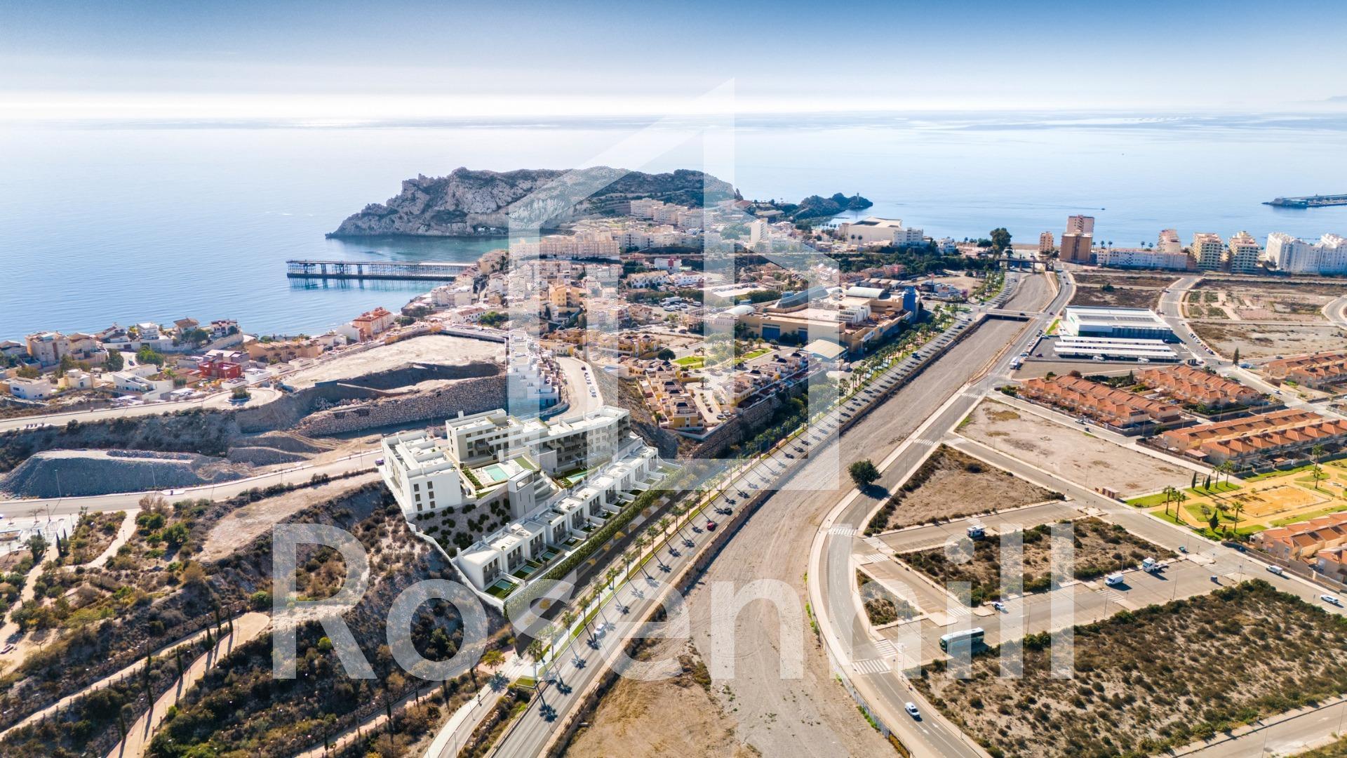 NEW BUILD RESIDENTIAL COMPLEX IN AGUILAS New Build exclusive residential complex of apartments and villas in Aguilas. New Build complex consist of 36 apartments with 3 and 2 bedrooms distributed in 4 modern blocks, equipped with 2 communal swimming pools and community garage with parking space and storage room for each property; and 10 elegant villas of 4 bedrooms and 3 bathrooms, each one with its own private pool. This residential complex has been designed with excellence in mind, offering spacious terraces on the ground and first floors and solariums on the upper floors, where the view of the horizon becomes a canvas of experiences. The houses have fully equipped kitchens and bathrooms and pre-installation for ducted air conditioning. Complex located 800 metres from the sea, next to a Shopping Centre. Aguilas located in exceptional area on Costa Cálida at only 50 minutes from the new Murcia or Almeria airport and 1h30 from Alicante airport. Aguilas it is a small city with many amenities, a long beach to walk and relax in the sun. Is a perfect enclave for diving, water sports, hiking and golf. It has 28 kilometers of coastline in which there are 35 beaches with different types of sand thickness located in different landscapes, from coves and virgin beaches in natural settings to the urban beaches of the town of Aguilas. Its warm desert climate is present all year round with an annual average of 22º with mild temperatures in winter and very hot in summer.