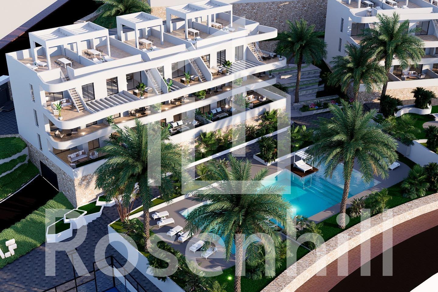 NEW BUILD RESIDENTIAL COMPLEX IN FINESTRAT New Build residential complex in Balcon de Finestrat. This complex of modern apartments with 2 bedrooms, 2 bathrooms, open plan kitchen with the living area. Some of the apartments will have sea views. Ground floor apartment with a private gardens, middle floor apartments with the terraces and top floor apartments has a terraces and private solariums. Each property has private underground parking space. The properties have access to the communal area with 3 swimming pools, parking, paddle, playground, calisthenics. It is a great opportunity and privilege to be able to live with this environment of golf and beach, close to all amenities of all services considered one of the best places to invest. Finestrat located in the Marina Baixa region of the Costa Blanca. Benidorm is just a five-minute drive from the properties and offers all the services you would need including shops, bars, restaurants, supermarkets, banks, pharmacies and several private international schools. Close to the beaches of Levante, Poniente and Cala de Finestrat, with more than 6km in length that are among the best in Europe awarded by the European Union with Blue Flags. All leisure services such as the theme parks of Aqua Natura, Terra Mítica, Terra Natura, Aqualandia and Mundomar, Sierra Cortina and Villaitana Golf courses, hiking and climbing in Puig Campana an incomparable natural setting or enjoy of nautical sports. Distance to the sea 4 km, to the airport 26 km and to the golf 1km.