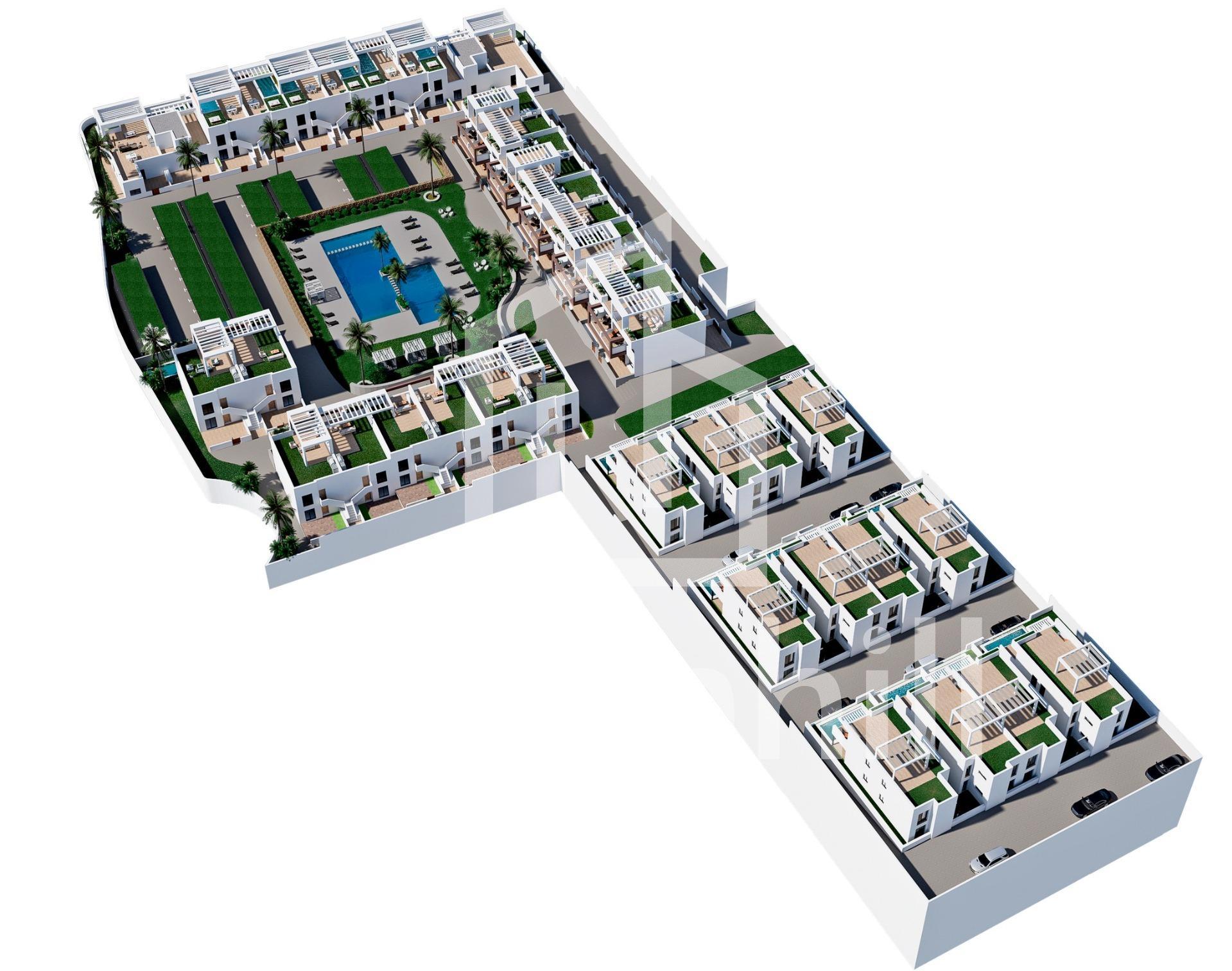 RESIDENTIAL COMPLEX OF NEW CONSTRUCTION IN FINESTRAT New construction residential complex in Finestrat located in one of the best areas to live on the Costa Blanca. The new construction complex consists of 60 bungalows with 2 or 3 bedrooms and 2 bathrooms with access to the common areas and the pool. Some units also have a private pool. All bungalows have a parking space. Some units have magnificent views of the sea and the Benidorm skyline. Finestrat is located in the Marina Baixa region of the Costa Blanca, close to neighboring Benidorm and about 40 kilometers from the city of Alicante and the international airport. Benidorm is only a five minute drive from the properties and offers all the services you may need, including shops, bars, restaurants, supermarkets, banks, pharmacies and several international private schools. Near the beaches of Levante, Poniente and Cala de Finestrat, with more than 6 km in length that are among the best in Europe awarded by the European Union with Blue Flags. All the leisure services such as the Aqua Natura, Terra Mítica, Terra Natura, Aqualandia and Mundomar theme parks, the Sierra Cortina and Villaitana golf courses, hiking and climbing in Puig Campana an incomparable natural setting or the enjoyment of water sports.