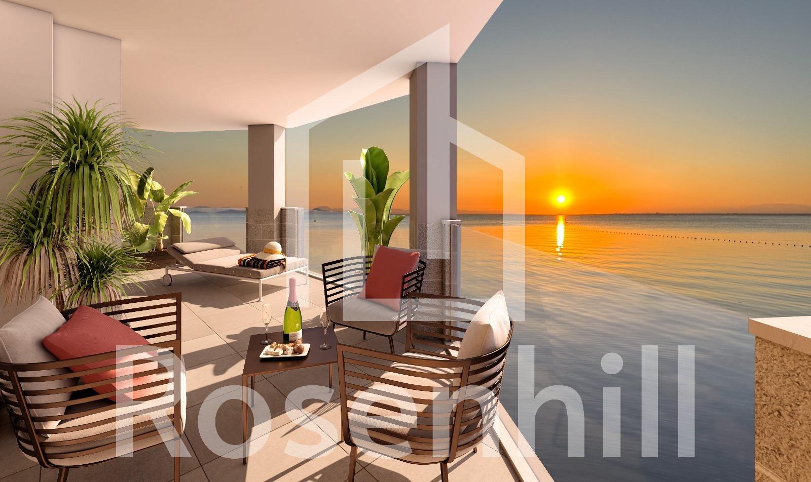 NEW BUILD RESIDENTIAL COMPLEX IN LA MANGA New Build residential complex is located in a unique and special place, between two seas, in a privileged location and with all the services you may need at your fingertips in the Region of Murcia, beautiful coastline with the beaches of transparent and shallow waters. At this residential complex apartments have been designed to make the most of every last corner of the property, as well as the the choice of materials and the design of the homes. Live a world of sensations and pleasurable moments with all the services and activities that you desire at your fingertips. Installations – Air conditioning: Air conditioning system by ducts, for hot and cold, throughout the house (except in distributors and bathrooms) and operated by central console. Electrical appliances: Stainless steel oven. Black ceramic hob with three burners. Stainless steel refrigerator. Extractor hood integrated in furniture. Integrated dishwasher. Common areas: Access to the building via white PVC door and double glazing with air chamber. Entrance halls and stair treads specially decorated with national marble. White thermo-lacquered aluminium handrail on interior staircases. Lighting by presence detection in basement and interior common areas. White motorised sectional garage access door. Stainless steel urbanisation railings. Video door entry system. Satellite dish with European channels. Swimming pool with landscaped solarium. La Manga del Mar Menor is a natural strip of land surrounded by two seas, the Mar Menor and the Mediterranean Sea. To this rarity you can add the multiple leisure and free time options, restaurants, supermarkets, medical censers, pharmacies, nautical sports censers, golf courses. La Manga is located on the north coast of the Costa Calida and is a popular holiday destination for tourists. The narrow land strip separating the warm lagoon and the colder sea has a unique microclimate. It’s one of the most exotic areas in Spain. Corvera airport is about 1 hour drive away and Alicante airport about 2 hours away.