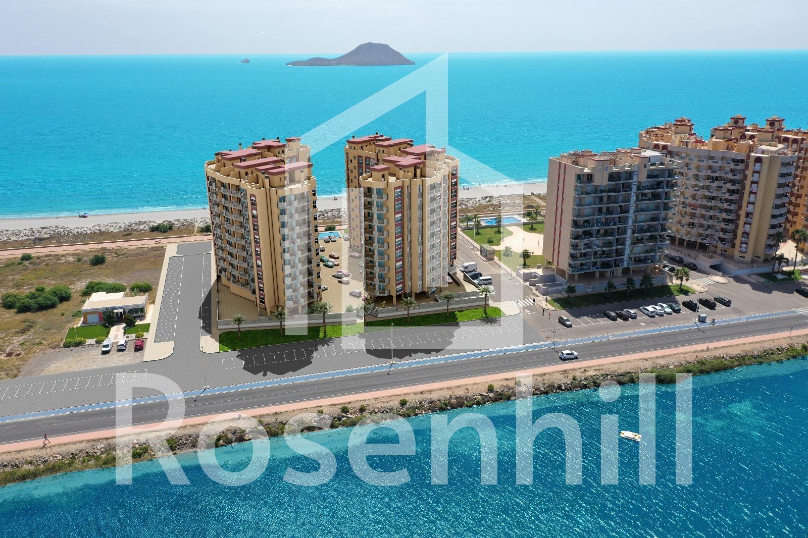 NEW BUILD RESIDENTIAL COMPLEX IN LA MANGA New Build residential complex is located in a unique and special place, between two seas, in a privileged location and with all the services you may need at your fingertips in the Region of Murcia, beautiful coastline with the beaches of transparent and shallow waters. At this residential complex apartments have been designed to make the most of every last corner of the property, as well as the the choice of materials and the design of the homes. Live a world of sensations and pleasurable moments with all the services and activities that you desire at your fingertips. Installations – Air conditioning: Air conditioning system by ducts, for hot and cold, throughout the house (except in distributors and bathrooms) and operated by central console. Electrical appliances: Stainless steel oven. Black ceramic hob with three burners. Stainless steel refrigerator. Extractor hood integrated in furniture. Integrated dishwasher. Common areas: Access to the building via white PVC door and double glazing with air chamber. Entrance halls and stair treads specially decorated with national marble. White thermo-lacquered aluminium handrail on interior staircases. Lighting by presence detection in basement and interior common areas. White motorised sectional garage access door. Stainless steel urbanisation railings. Video door entry system. Satellite dish with European channels. Swimming pool with landscaped solarium. La Manga del Mar Menor is a natural strip of land surrounded by two seas, the Mar Menor and the Mediterranean Sea. To this rarity you can add the multiple leisure and free time options, restaurants, supermarkets, medical censers, pharmacies, nautical sports censers, golf courses. La Manga is located on the north coast of the Costa Calida and is a popular holiday destination for tourists. The narrow land strip separating the warm lagoon and the colder sea has a unique microclimate. It’s one of the most exotic areas in Spain. Corvera airport is about 1 hour drive away and Alicante airport about 2 hours away.