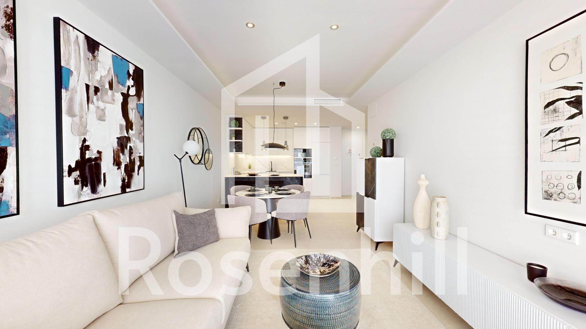 NEW BUILD RESIDENTIAL COMPLEX IN LOMAS DE CABO ROIG New Build Luxury Residential complex located in Lomas de Cabo Roig. Complex of 24 apartments and penthouses with 2 and 3 bedrooms, 2 bathrooms, with great common areas, garden & play area around, big swimming pool (including children area and jacuzzi) relax/BBQ, fitness Club and Coworking area, public toilet and underground parking. Complex has installed a fully equipped gym and fully equipped coworking area with beautiful garden views. The luxurious experience architectural excellence ensures an intimate complex, providing security, and privacy . Lomas de Cabo Roig located one kilometer inland from the coastline of Cabo Roig with beautiful beaches, part of the Orihuela Costa. It is situated in an area which is well connected by roads, has plenty of facilities, and shopping centres nearby. Lomas de Cabo Roig located 30 minutes from Alicante airport and 1 hour Murcia – Corvera airport.