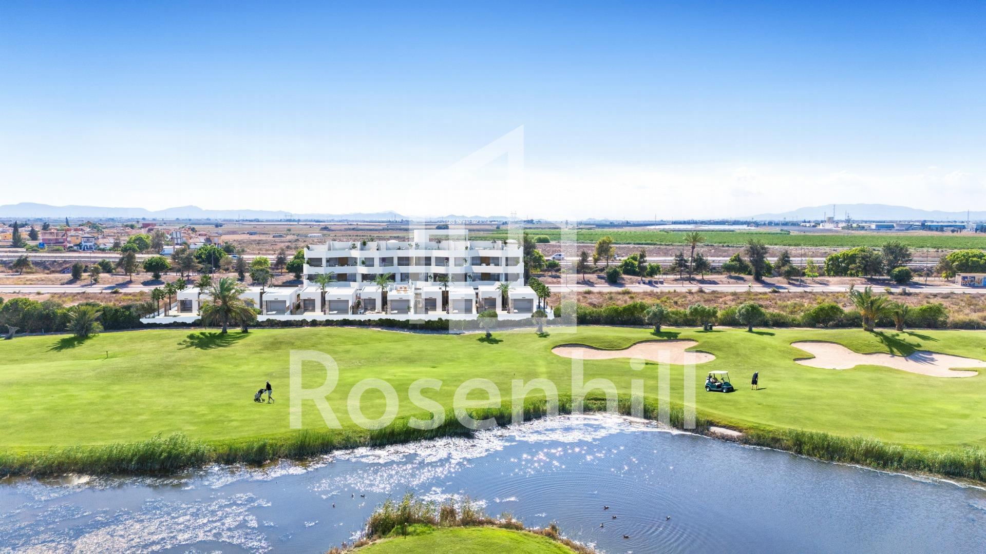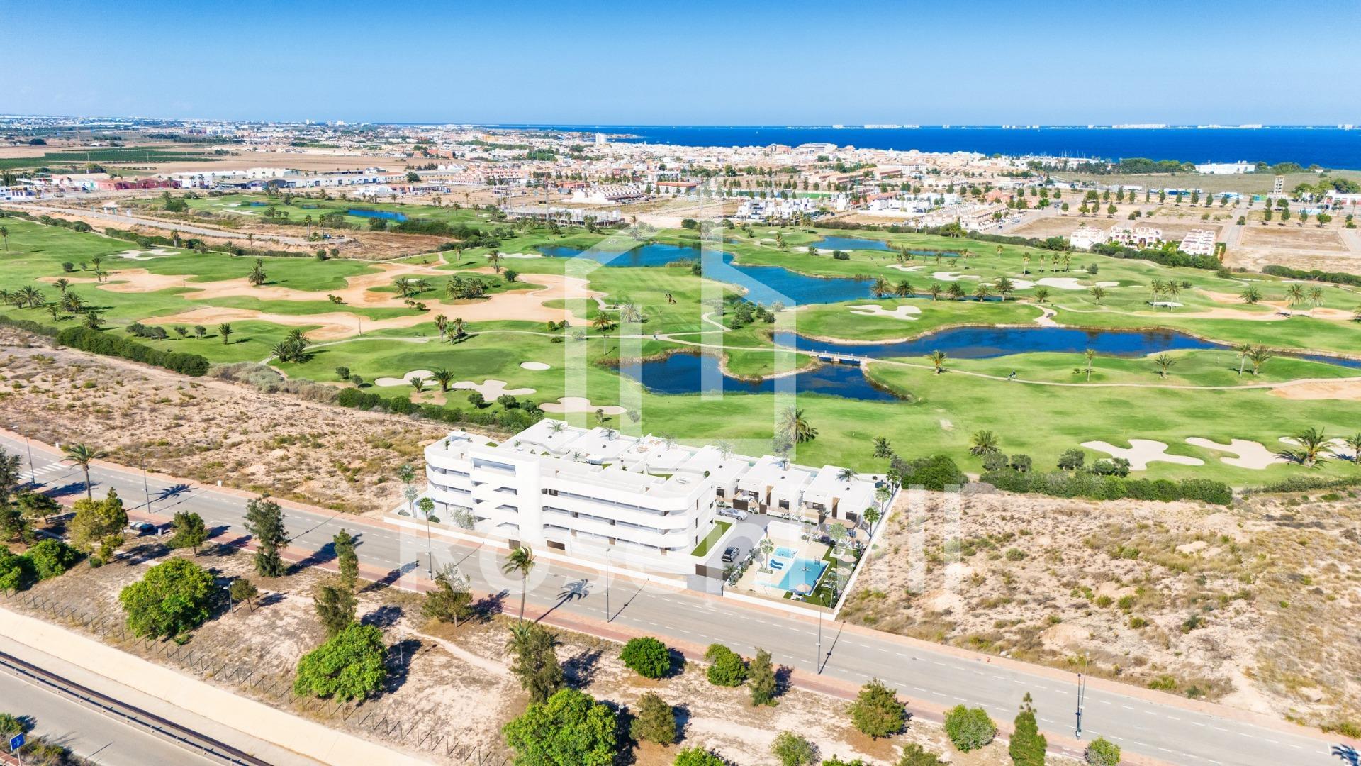 New Build Residential complex in Los Alcazares Los Alcázares is an idyllic location for those looking to invest in a new residential property on the Costa Cálida. Just 25 minutes from Murcia Airport and approximately 55 minutes from Alicante Airport, this area is conveniently connected by highway to major cities like Cartagena, Murcia, and Alicante, as well as to other beautiful beaches along the Costa Cálida and Costa Blanca. New build residential development comprises 16 modern 2- and 3-bedroom apartments, along with 6 exclusive 3-bedroom villas. These properties beautifully blend modern design with quality and functionality, catering to a variety of lifestyles. Residents can enjoy stunning views of both the golf course and the picturesque Mar Menor, enhancing the overall living experience. Situated directly on the first line of the prestigious La Serena Golf course, known for its interwoven lakes and lush vegetation, this location is a golfer’s paradise. The course features water hazards on 16 of its 18 holes, providing unique challenges and strategic gameplay for all skill levels. Additionally, the property boasts direct foot access to the town center, allowing residents to experience the tranquil beauty of the area while having access to local amenities and services. The Mar Menor, Europe’s largest saltwater lagoon, is one of the region’s prime attractions, covering 170 km² and featuring five charming islands. Its warm, calm waters and gentle waves make it an ideal destination for swimming and a variety of water sports, appealing to both nature enthusiasts and adventure seekers alike. This exclusive residential development in Los Alcázares is not just a home but a lifestyle choice, combining luxury living with the natural beauty of the Costa Cálida. Whether you’re an avid golfer, a water sports enthusiast, or simply seeking a serene coastal retreat, this location offers a unique opportunity to enjoy the best of Mediterranean living.