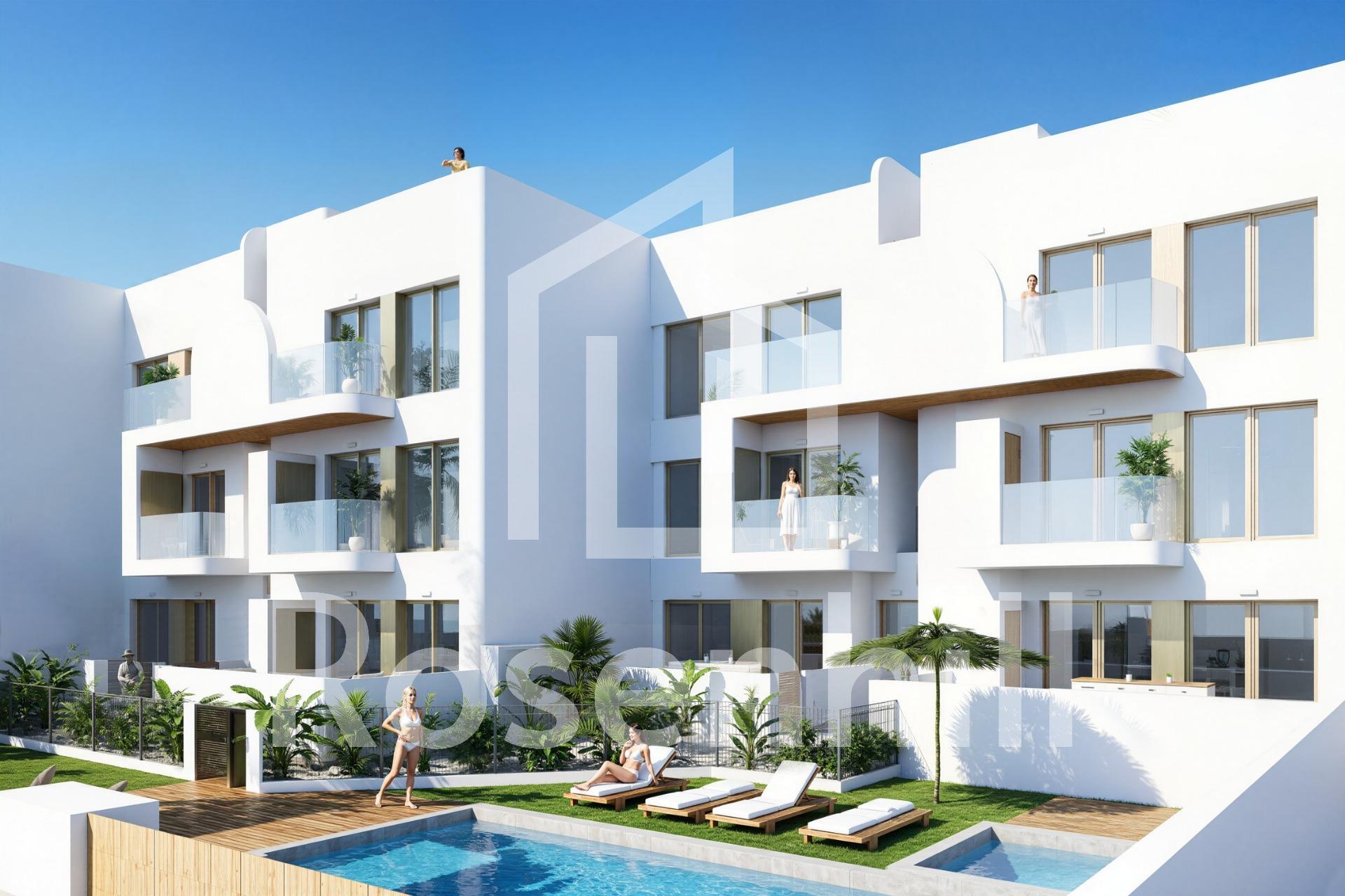 New Build Residential Complex in Los Alcázares on the Frontline of Serena Golf Exclusive Living on the Costa Cálida Discover this new residential development in Los Alcázares, perfectly located on the frontline of Serena Golf and just 1.3 km from the beaches of the Mar Menor. Nestled in the heart of the Costa Cálida, this project combines modern architecture, comfort, and exceptional surroundings. With excellent road connections, the complex is only 30 km from Murcia Airport (25 minutes) and 90 km from Alicante Airport (55 minutes), offering easy access to Cartagena, Murcia, and the Costa Blanca. Contemporary Homes with Exceptional Design The residential complex includes 18 elegant apartments and 7 exclusive villas, each designed to maximize space, light, and functionality. Residents will enjoy breathtaking views of the golf course and, from the upper floors, the sparkling waters of the Mar Menor. Choose from: Apartments with 2 or 3 bedrooms and 2 bathrooms, all with dual orientation and two terraces for all-day sunlight. Ground-floor apartments with private gardens. Middle-floor units with large terraces. Penthouses with two terraces, private solarium, and panoramic views. Detached villas on the frontline of golf, with 3 bedrooms, 2 bathrooms, basement, solarium, and private pool. Premium Features and Amenities Every home is equipped with high-quality finishes and modern comforts, including: Parking space and storage room Aerothermal hot water system Pre-installed ducted air conditioning Electric shutters and full lighting package Fully fitted bathrooms with furniture and shower screens Communal swimming pool and landscaped gardens Elevator in the apartment blocks Perfect Location for Golf and Beach Lovers Situated in a privileged enclave, the development is surrounded by the peaceful greenery of Serena Golf and lies just a short walk from the warm, shallow waters of the Mar Menor. This unique area offers year-round opportunities for swimming, sailing, paddleboarding, and other water sports, making it ideal for both relaxation and activity. Key distances: Beach (Mar Menor): 1.3 km Serena Golf: Adjacent to the complex Los Alcázares town center: 2 km Cartagena: 22 km Murcia city: 40 km Murcia Airport: 30 km (25 minutes) Alicante Airport: 90 km (55 minutes) Secure Your Mediterranean Lifestyle This development in Los Alcázares offers the perfect combination of beach, golf, and modern living. Whether as a permanent residence, holiday retreat, or investment, it provides everything needed for an authentic Mediterranean lifestyle. Contact us today to arrange a visit and secure your new home on the Costa Cálida.