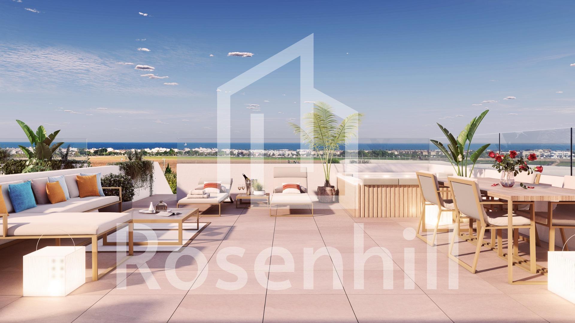 NEW BUILD RESIDENTIAL COMPLEX IN PILAR DE LA HORADADA New Build residential of apartments and penthouses with exceptional finishes in Pilar de la Horadada. Ground floor apartments with private gardens, middle floor apartments with large terraces and top floor penthouses with private solariums. The kitchen is delivered fully furnished, leaving enough space for you to choose the appliances according to your preferences. Only noble materials have been used, such as interior carpentry made entirely of wood and exterior Climalit/aluminium windows, ideal both for their design and for the high thermal-acoustic level they have. All the terraces are south-facing. Automatic gates in the residential, both for pedestrian access and vehicle access. The building is surrounded by gardens, it will also have a communal swimming pool, parking inside the complex and each property has its own private storage room. In the vicinity of this residential complex you will find all the facilities of public transport, schools, supermarkets, shopping centres, golf courses and fantastic municipal parks with their children’s playgrounds. Everything at your fingertips so that you can enjoy an excellent location. Pilar de la Horadada is a typical Spanish village in the most southern part of the Costa Blanca. The large main street has supermarkets, lots of shops, restaurants and bars and some lovely squares. The beautiful beaches of Torre de la Horadada and Mil Palmeras with fine sand promenade is just 5 minutes away. The airports of Corvera (Murcia) and Alicante are respectively 40 and 55 minutes away.