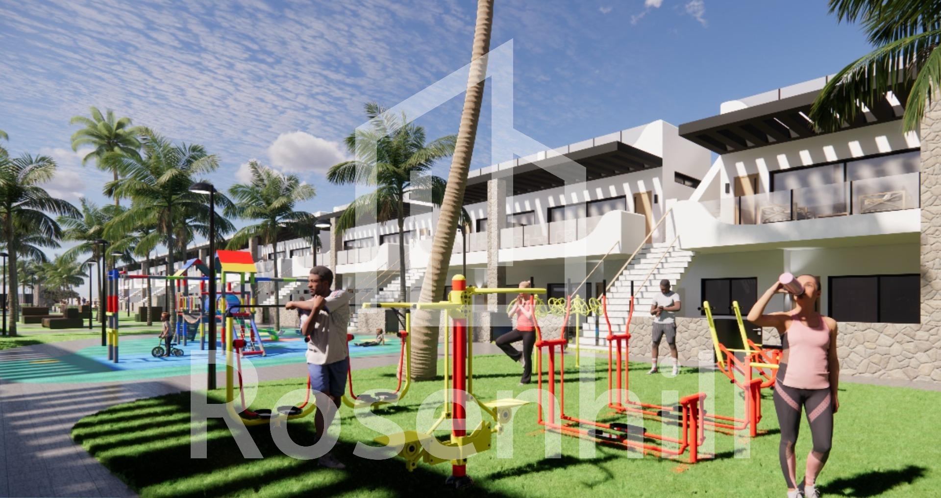 NEW BUILD RESIDENTIAL COMPLEX IN PUNTA PRIMA Beautiful New Build residential complex of apartment, bungalows and villas located in Punta Prima, Torrevieja. Modern 94 bungalows and apartments with 2 and 3 bedrooms, 2 bathrooms, open plan kitchen with spacious living room, fitted wardrobes. Ground floor bungalows with private garden, top floor bungalows with private solarium and apartments with spacious terraces. All properties has underground parking space. The residential will consist of 1,980m2 of community green areas, 2,620m2 of private green areas, children’s play area, community pools, jacuzzi and gym area. Complex located near sports centres, shopping areas, restaurants and just 10 minutes walk from the beach of Punta Prima. Punta Prima, located just 5 km from Torrevieja, is characterised by its good communication and health infrastructures, its proximity to Alicante airport, and the number of services open all year round. Just 10 km away are the golf courses of Villamartin, Campoamor, Las Ramblas, Las Colinas and Lo Romero, as well as the shopping centres of La Zenia and Habaneras.