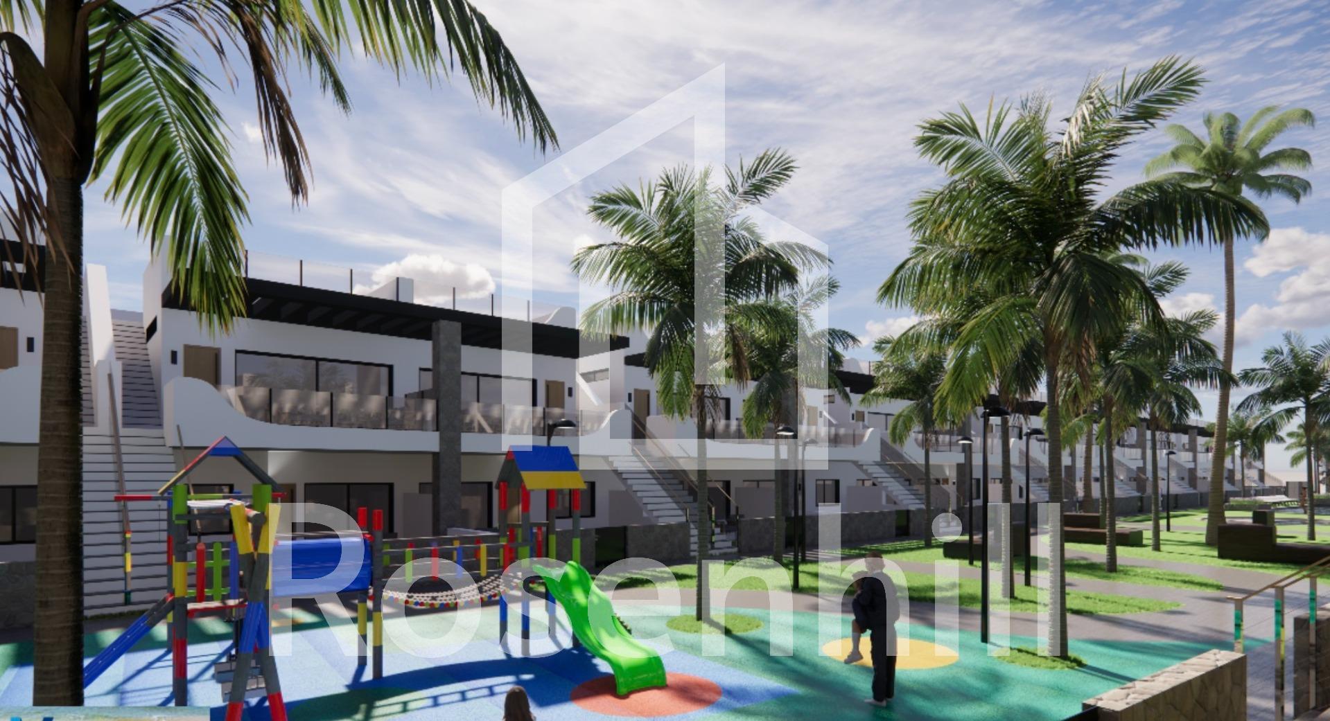 NEW BUILD RESIDENTIAL COMPLEX IN PUNTA PRIMA Beautiful New Build residential complex of apartment, bungalows and villas located in Punta Prima, Torrevieja. Modern 94 bungalows and apartments with 2 and 3 bedrooms, 2 bathrooms, open plan kitchen with spacious living room, fitted wardrobes. Ground floor bungalows with private garden, top floor bungalows with private solarium and apartments with spacious terraces. All properties has underground parking space. The residential will consist of 1,980m2 of community green areas, 2,620m2 of private green areas, children’s play area, community pools, jacuzzi and gym area. Complex located near sports centres, shopping areas, restaurants and just 10 minutes walk from the beach of Punta Prima. Punta Prima, located just 5 km from Torrevieja, is characterised by its good communication and health infrastructures, its proximity to Alicante airport, and the number of services open all year round. Just 10 km away are the golf courses of Villamartin, Campoamor, Las Ramblas, Las Colinas and Lo Romero, as well as the shopping centres of La Zenia and Habaneras.