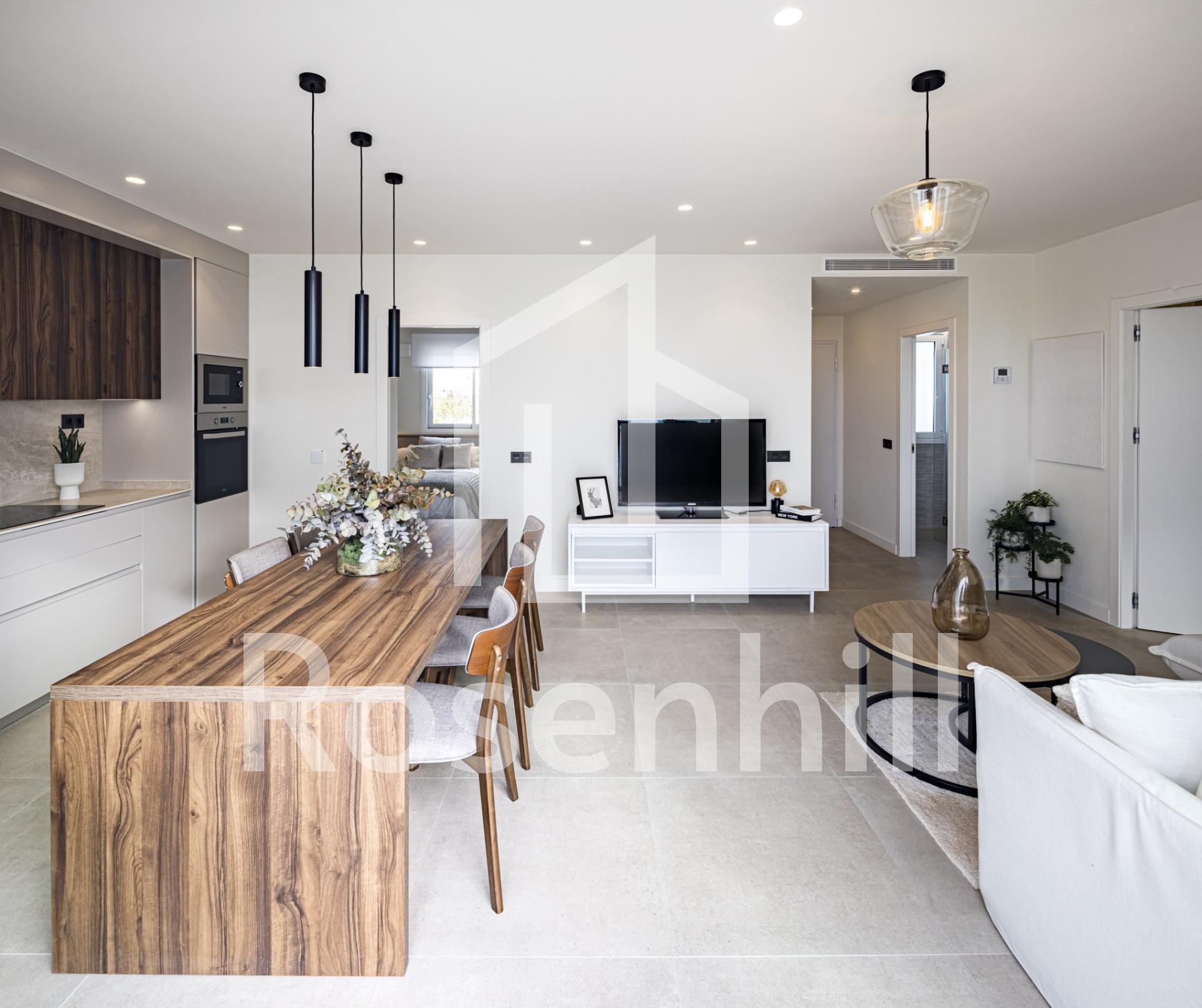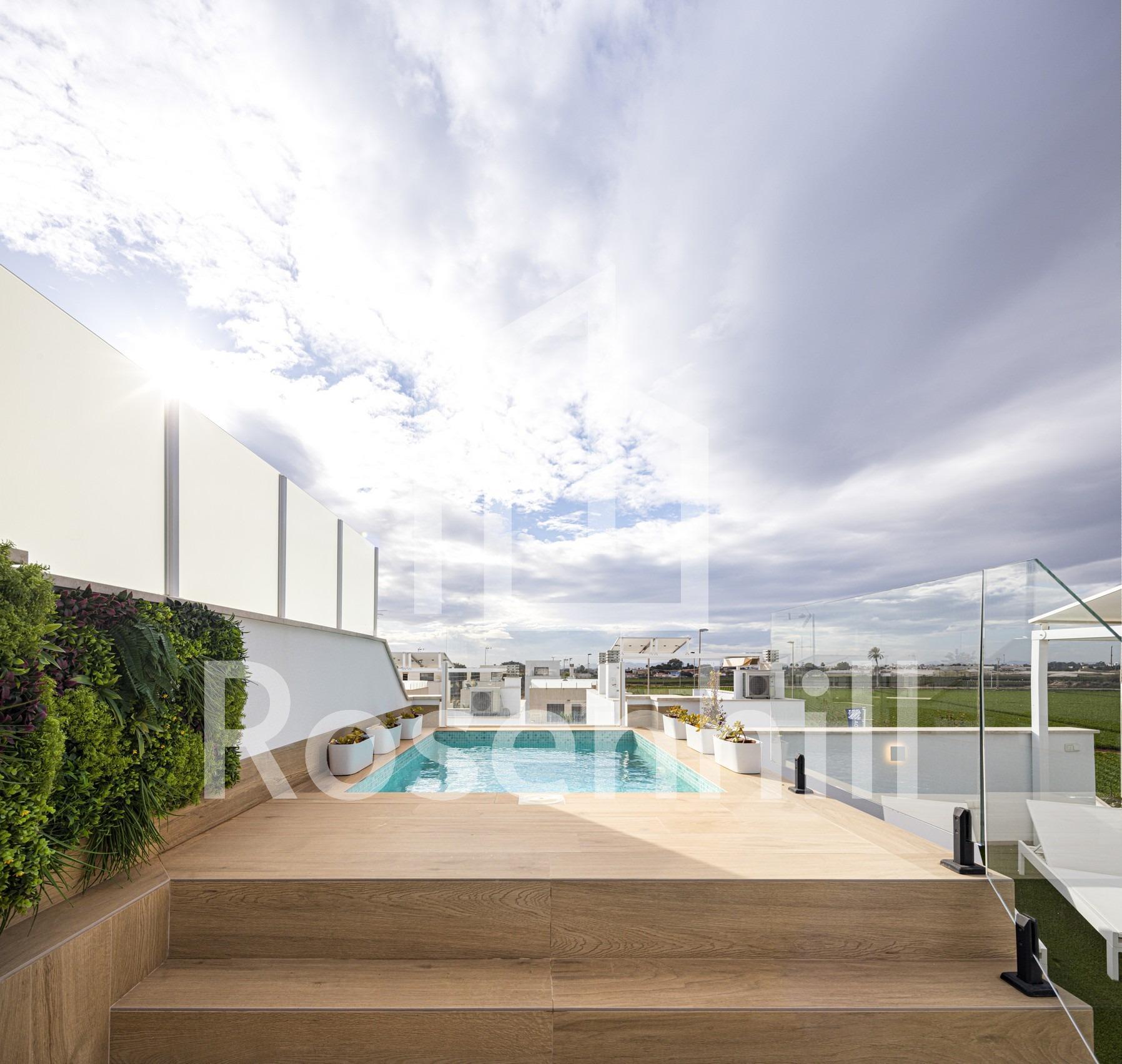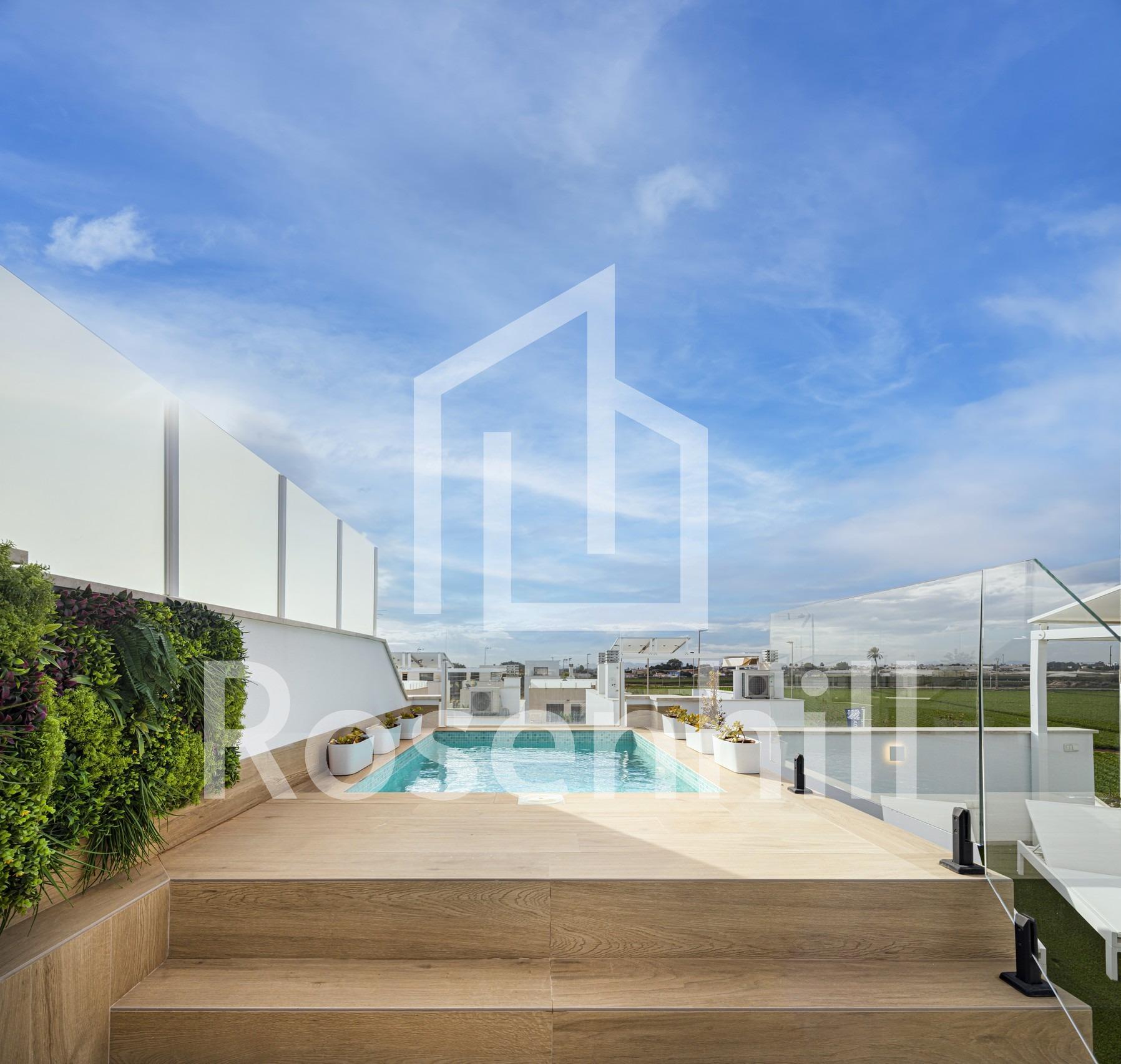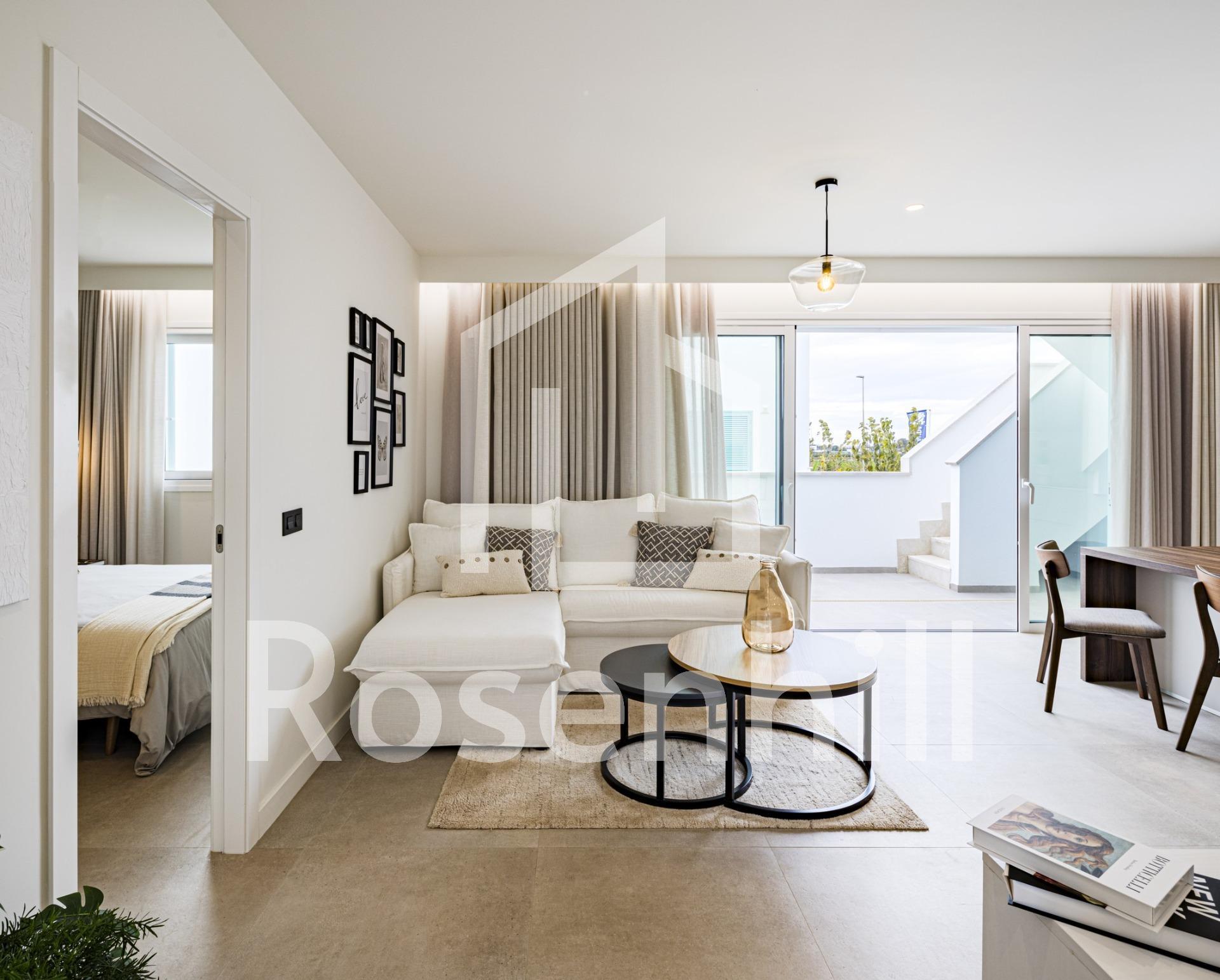 NEW BUILD RESIDENTIAL COMPLEX IN TORRE DE LA HORADADA New Build residential complex of bungalow apartments with communal pool in Torre de la Horadada located 800m from the beach. All properties has 2-3 bedrooms, 2 bathrooms, open plan kitchen with the lounge area, fitted wardrobes and terrace. All properties has private gardens and parking space. Plus bungalows on the top floor has private solarium. Torre de la Horadada is located south of Alicante in a beautiful location on the coast. The beautiful beaches of Torre de la Horadada and Mil Palmeras have fine sand beautiful promenade. There are lots of restaurants, bars and shops, also water sports, diving and snorkelling. It is well connected just 40 minutes from Alicante and Murcias Corvera airports, with large commercial shopping centres and multiple golf courses all within easy reach.