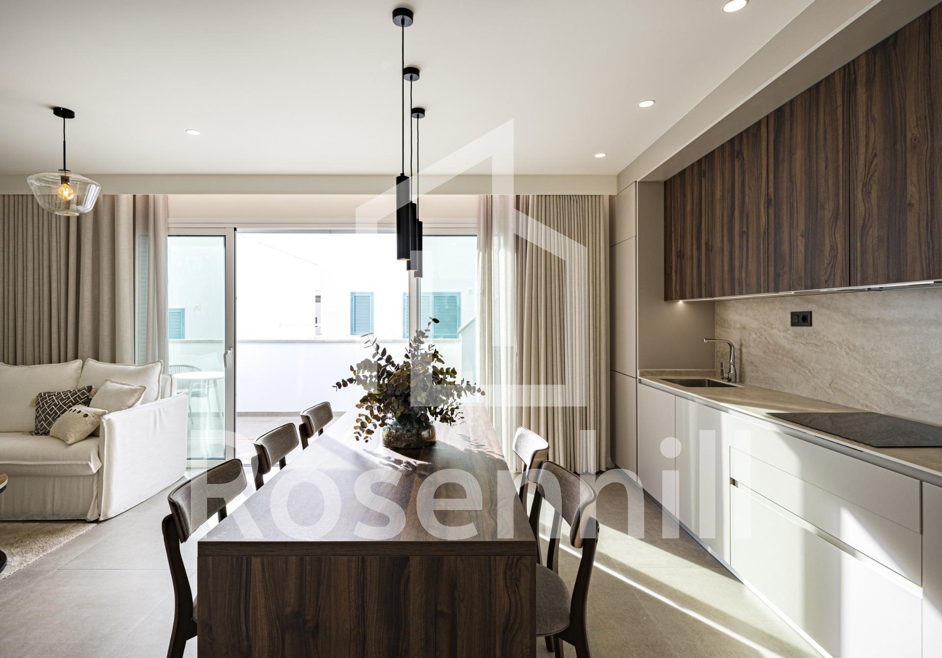 NEW BUILD RESIDENTIAL COMPLEX IN TORRE DE LA HORADADA New Build residential complex of bungalow apartments with communal pool in Torre de la Horadada located 800m from the beach. All properties has 2-3 bedrooms, 2 bathrooms, open plan kitchen with the lounge area, fitted wardrobes and terrace. All properties has private gardens and parking space. Plus bungalows on the top floor has private solarium. Torre de la Horadada is located south of Alicante in a beautiful location on the coast. The beautiful beaches of Torre de la Horadada and Mil Palmeras have fine sand beautiful promenade. There are lots of restaurants, bars and shops, also water sports, diving and snorkelling. It is well connected just 40 minutes from Alicante and Murcias Corvera airports, with large commercial shopping centres and multiple golf courses all within easy reach.
