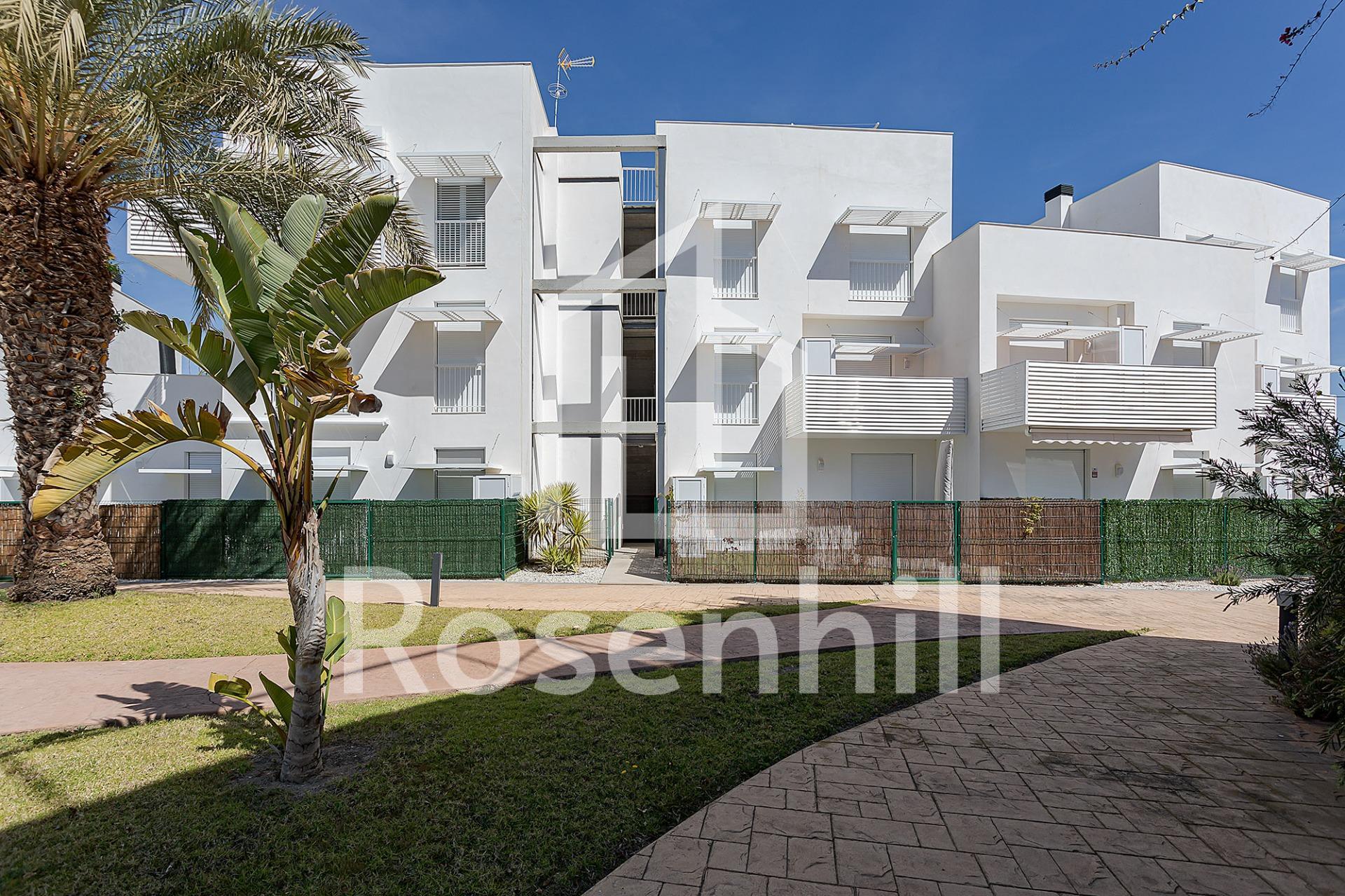 NEW BUILD RESIDENTIAL COMPLEX IN VERA New Build residential of apartments in Vera just 400m from the huge Vera beach named “El Playazo”. The typologies are ground floor with two private gardens, one in each orientation, which allows you to enjoy sun or shade whenever you want depending on the time of day or the season of the year. The first floors have terraces and the penthouses have large solariums. All the apartments have extra height ceilings (2.95 m) providing a great feeling of spaciousness. The kitchen comes fully furnished and equipped integrated with the living-dining area with a bar area. The doors and fitted wardrobes are lacquered in white and the floor is made of laminated wood. The hot-cold air conditioning and the hot water are generated by a state-of-the-art DAIKIN Aerothermal device, a technology that saves up to 70% of electricity consumption compared to traditional systems. All bathrooms come with a shower instead of a bathtub, with recessed mirrors and also with a stone countertop and glass partition in the main bathroom. The blinds in the living room and master bedroom are electric, hermetically sealed and with adjustable slats. The gardens and solarium are delivered with the floors finished combining artificial grass and a beautiful paving imitating wood. Each house includes a private outdoor parking space. Each block of the promotion has an independent elevator. Both the buildings and the apartments have a series of bioclimatic architecture characteristics (orientation, insulation, windows and shutters, pergolas) that allow optimal natural regulation of ventilation, temperature and light throughout the different seasons of the year. The communal areas are made up of pedestrian squares and green areas, with a large swimming pool for adults and another for children in the central square. The entire urbanization is free of architectural barriers for the disabled. Here tranquillity and relaxation are guaranteed. Vera is one of the best naturist places in Europe, recognized for the quality and purity of their waters. It offers six kilometres of beaches (Las Marinas-Bolaga, Puerto Rey, El Playazo, Quitapellejos). Vera bordering with the famous tourist destinations such as Mojacar and the Almanzora Caves. Residential complex located about 1,5 hour drive away from Murcia – Corvera airport and about 2 hours away from Alicante airport.