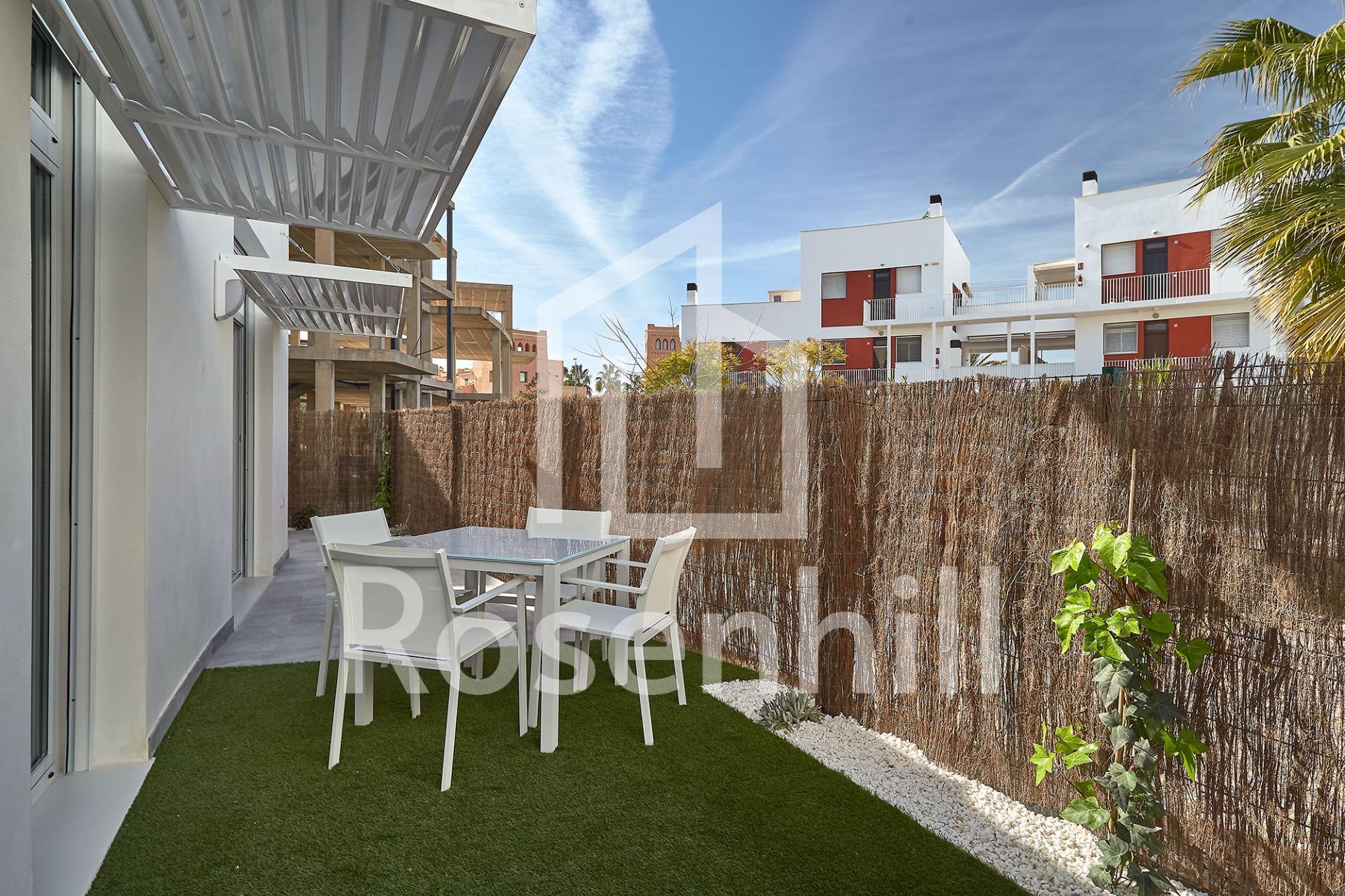 NEW BUILD RESIDENTIAL COMPLEX IN VERA New Build residential of apartments in Vera just 400m from the huge Vera beach named “El Playazo”. The typologies are ground floor with two private gardens, one in each orientation, which allows you to enjoy sun or shade whenever you want depending on the time of day or the season of the year. The first floors have terraces and the penthouses have large solariums. All the apartments have extra height ceilings (2.95 m) providing a great feeling of spaciousness. The kitchen comes fully furnished and equipped integrated with the living-dining area with a bar area. The doors and fitted wardrobes are lacquered in white and the floor is made of laminated wood. The hot-cold air conditioning and the hot water are generated by a state-of-the-art DAIKIN Aerothermal device, a technology that saves up to 70% of electricity consumption compared to traditional systems. All bathrooms come with a shower instead of a bathtub, with recessed mirrors and also with a stone countertop and glass partition in the main bathroom. The blinds in the living room and master bedroom are electric, hermetically sealed and with adjustable slats. The gardens and solarium are delivered with the floors finished combining artificial grass and a beautiful paving imitating wood. Each house includes a private outdoor parking space. Each block of the promotion has an independent elevator. Both the buildings and the apartments have a series of bioclimatic architecture characteristics (orientation, insulation, windows and shutters, pergolas) that allow optimal natural regulation of ventilation, temperature and light throughout the different seasons of the year. The communal areas are made up of pedestrian squares and green areas, with a large swimming pool for adults and another for children in the central square. The entire urbanization is free of architectural barriers for the disabled. Here tranquillity and relaxation are guaranteed. Vera is one of the best naturist places in Europe, recognized for the quality and purity of their waters. It offers six kilometres of beaches (Las Marinas-Bolaga, Puerto Rey, El Playazo, Quitapellejos). Vera bordering with the famous tourist destinations such as Mojacar and the Almanzora Caves. Residential complex located about 1,5 hour drive away from Murcia – Corvera airport and about 2 hours away from Alicante airport.