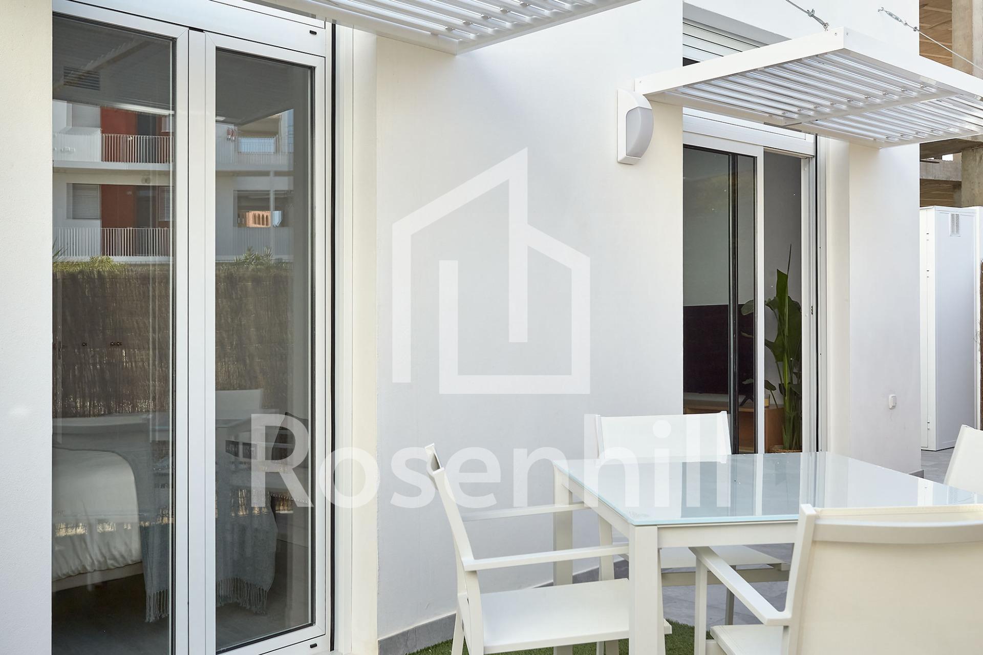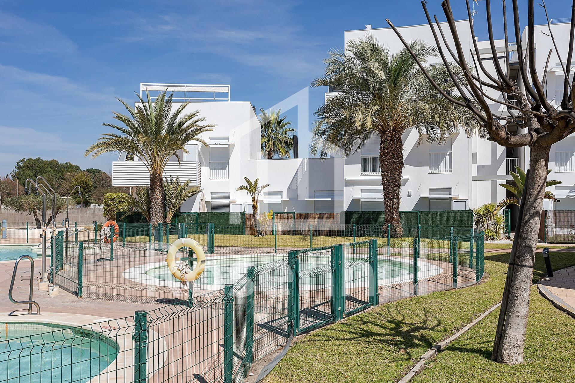 NEW BUILD RESIDENTIAL COMPLEX IN VERA New Build residential of apartments in Vera just 400m from the huge Vera beach named “El Playazo”. The typologies are ground floor with two private gardens, one in each orientation, which allows you to enjoy sun or shade whenever you want depending on the time of day or the season of the year. The first floors have terraces and the penthouses have large solariums. All the apartments have extra height ceilings (2.95 m) providing a great feeling of spaciousness. The kitchen comes fully furnished and equipped integrated with the living-dining area with a bar area. The doors and fitted wardrobes are lacquered in white and the floor is made of laminated wood. The hot-cold air conditioning and the hot water are generated by a state-of-the-art DAIKIN Aerothermal device, a technology that saves up to 70% of electricity consumption compared to traditional systems. All bathrooms come with a shower instead of a bathtub, with recessed mirrors and also with a stone countertop and glass partition in the main bathroom. The blinds in the living room and master bedroom are electric, hermetically sealed and with adjustable slats. The gardens and solarium are delivered with the floors finished combining artificial grass and a beautiful paving imitating wood. Each house includes a private outdoor parking space. Each block of the promotion has an independent elevator. Both the buildings and the apartments have a series of bioclimatic architecture characteristics (orientation, insulation, windows and shutters, pergolas) that allow optimal natural regulation of ventilation, temperature and light throughout the different seasons of the year. The communal areas are made up of pedestrian squares and green areas, with a large swimming pool for adults and another for children in the central square. The entire urbanization is free of architectural barriers for the disabled. Here tranquillity and relaxation are guaranteed. Vera is one of the best naturist places in Europe, recognized for the quality and purity of their waters. It offers six kilometres of beaches (Las Marinas-Bolaga, Puerto Rey, El Playazo, Quitapellejos). Vera bordering with the famous tourist destinations such as Mojacar and the Almanzora Caves. Residential complex located about 1,5 hour drive away from Murcia – Corvera airport and about 2 hours away from Alicante airport.