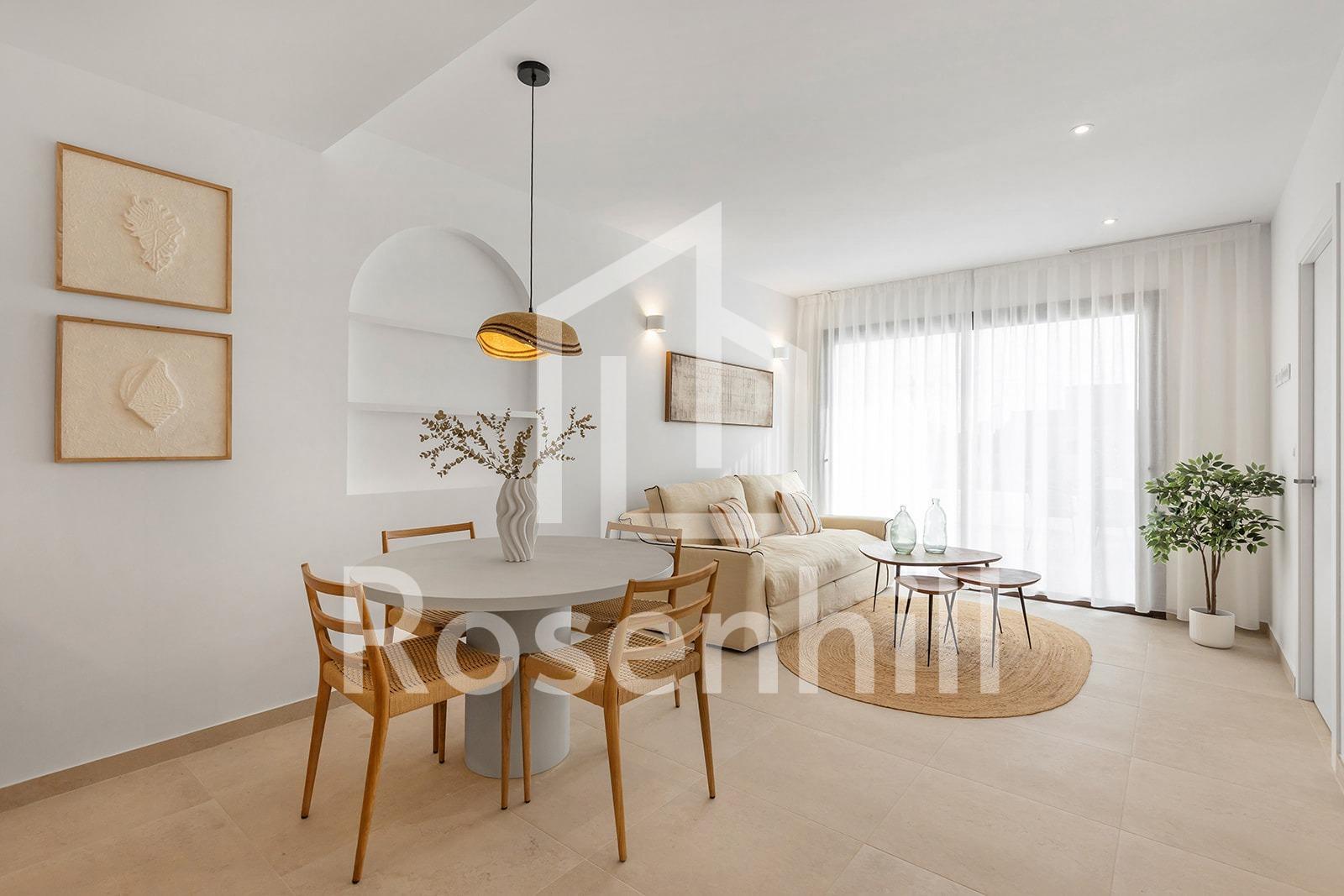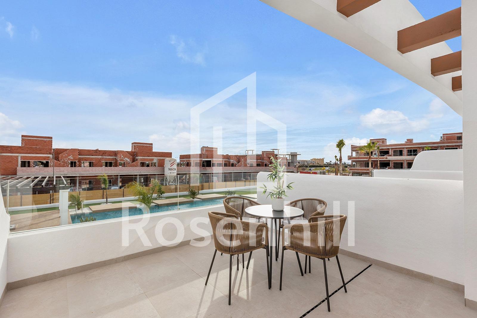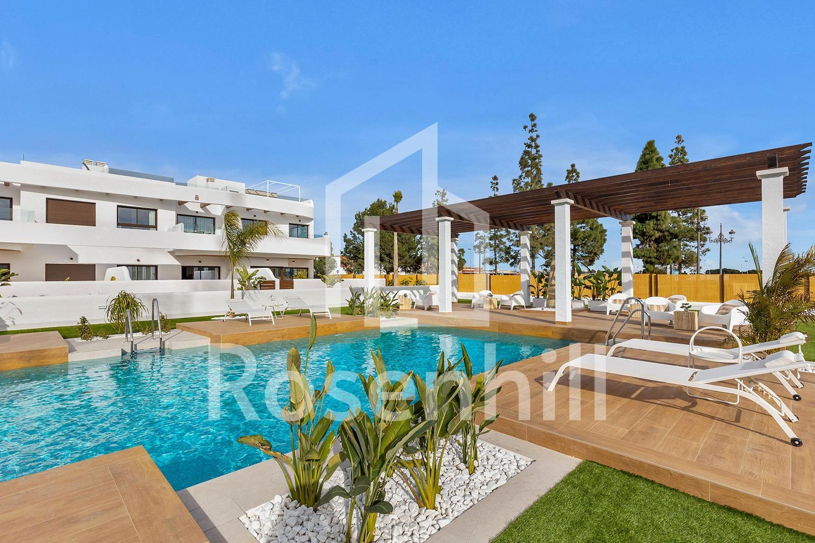 New Build Residential Complex Near Serena Golf and the Mar Menor in Los Alcazares Modern Coastal Living on the Costa Calida Discover this attractive new build residential complex located in Los Alcazares, one of the most popular seaside towns on the Costa Calida. Situated just 500 m from the beaches of the Mar Menor and within walking distance of the town center, this development offers an excellent combination of coastal living, golf surroundings and everyday convenience. Los Alcazares is well known for its relaxed atmosphere, long promenades, warm shallow waters and a wide range of restaurants, shops and services open all year round. Contemporary Apartments Designed for Comfort The development consists of 29 modern homes with 2 or 3 bedrooms, designed with clean architectural lines and high quality finishes. Buyers can choose between ground floor apartments with private garden and terrace, middle floor homes with spacious terraces, or penthouses with private terrace and rooftop solarium offering open views. Many of the properties enjoy views towards Serena Golf and the Mar Menor, creating a calm and pleasant living environment. All homes are designed to maximize natural light and functionality, making them ideal as a permanent residence, holiday home or investment property. High Quality Features and Communal Areas Each property includes a private parking space and a storage room. The specifications are designed to provide comfort and energy efficiency, including double glazed windows with thermal break, pre installation of ducted air conditioning, aerothermal system for domestic hot water, electric shutters in bedrooms and a complete interior and exterior lighting package. Bathrooms are delivered fully equipped with furniture, mirror and shower screen. Residents can enjoy attractive communal areas with landscaped gardens and a communal swimming pool, perfect for relaxing and enjoying the Mediterranean climate. Selected blocks are equipped with lifts for added convenience. Prime Location Between Golf and Sea This residential complex enjoys a privileged location next to Serena Golf, one of the most renowned golf courses in the area, and just a short walk from the calm waters of the Mar Menor. The area is ideal for swimming, sailing, paddleboarding and other water sports throughout the year. Key distances include Mar Menor beaches at 0.5 km, Serena Golf directly next to the development, Los Alcazares town center at 2 km, Cartagena at 22 km and Murcia city at 40 km. Murcia Corvera Airport is approximately 30 km away and Alicante Airport is around 90 km. An Ideal Home or Investment Opportunity With its excellent location, modern design and proximity to both golf and the sea, this new residential complex in Los Alcazares offers an outstanding lifestyle opportunity on the Costa Calida. Contact us today to receive more information or to arrange a private viewing and secure your new home by the Mar Menor.