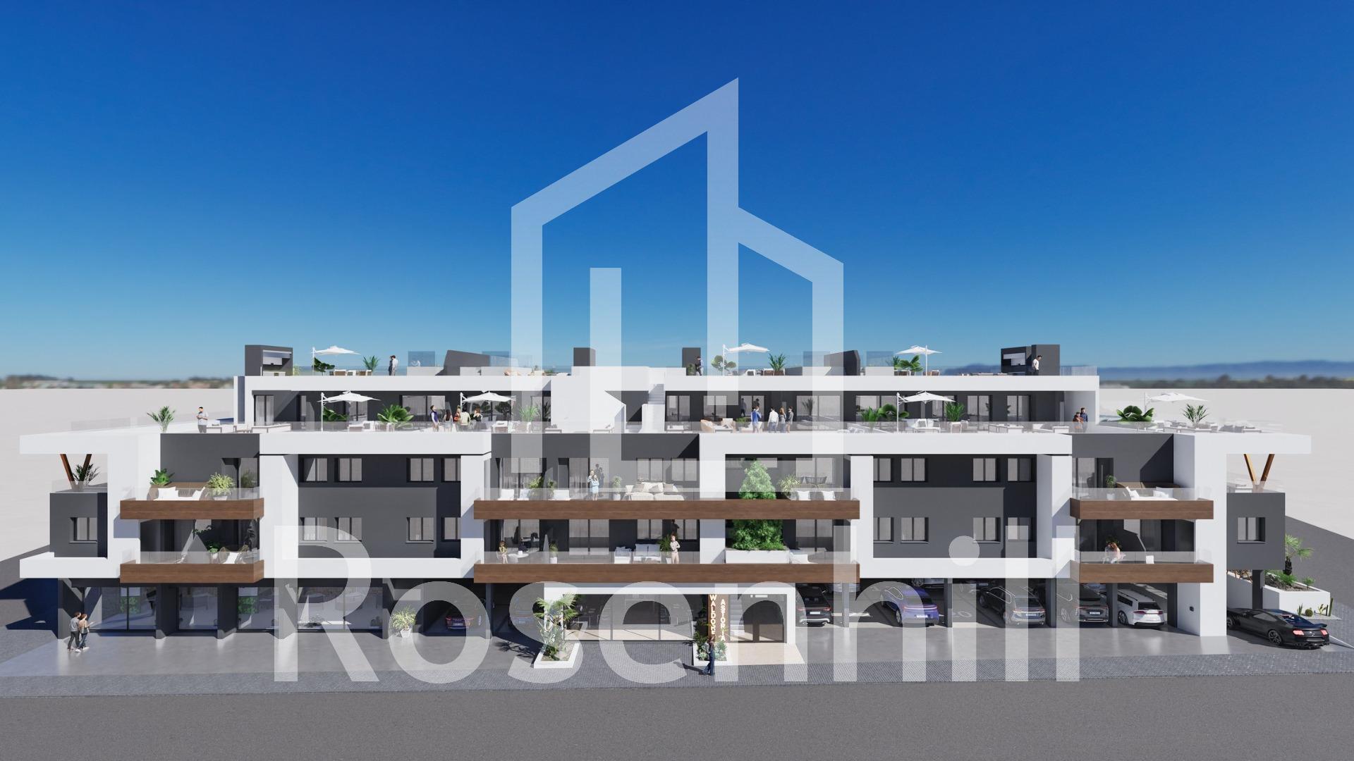 NEW BUILD RESIDENTIAL IN BENIJOFAR New Build residential with communal rooftop pool located in the centre of the charming village of Benijofar. You can choose modern apartments with terraces or penthouses with solarium. New Build modern properties with an open plan kitchen and living room, 2 and 3 bedrooms, 2 bathrooms, terraces. An options underground parking space at an extra cost. Benijofar it is a lovely village with a charming church and an attractive square/plaza located inland on the Southern Costa Blanca, close to the tourist resorts of Guardamar del Segura and Torrevieja. Benijofar is also a popular place to stay for the summer holidays as it is close enough to the coastal resorts yet quiet enough to be able to get away from it all. There are several golf courses close by as well as water parks in nearby Rojales and Torrevieja. The nearest and best beaches to Benijofar are about fifteen minutes away by car and are some of the best beaches on the Southern Costa Blanca, at Guardamar del Segura and Torrevieja. There are also regular bus services from Benijofar to Guardamar del Segura and Torrevieja with easy access to the beaches. 20 minutes drive to Alicante airport with regular flights all over Europe.