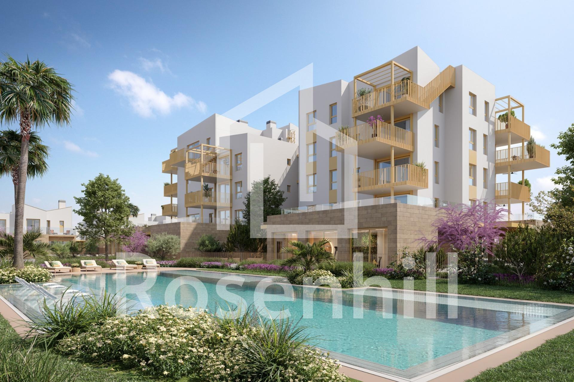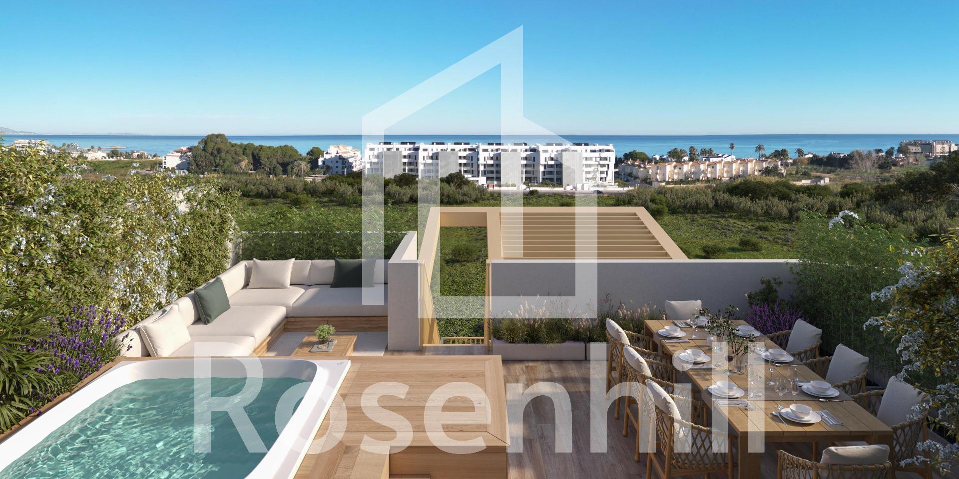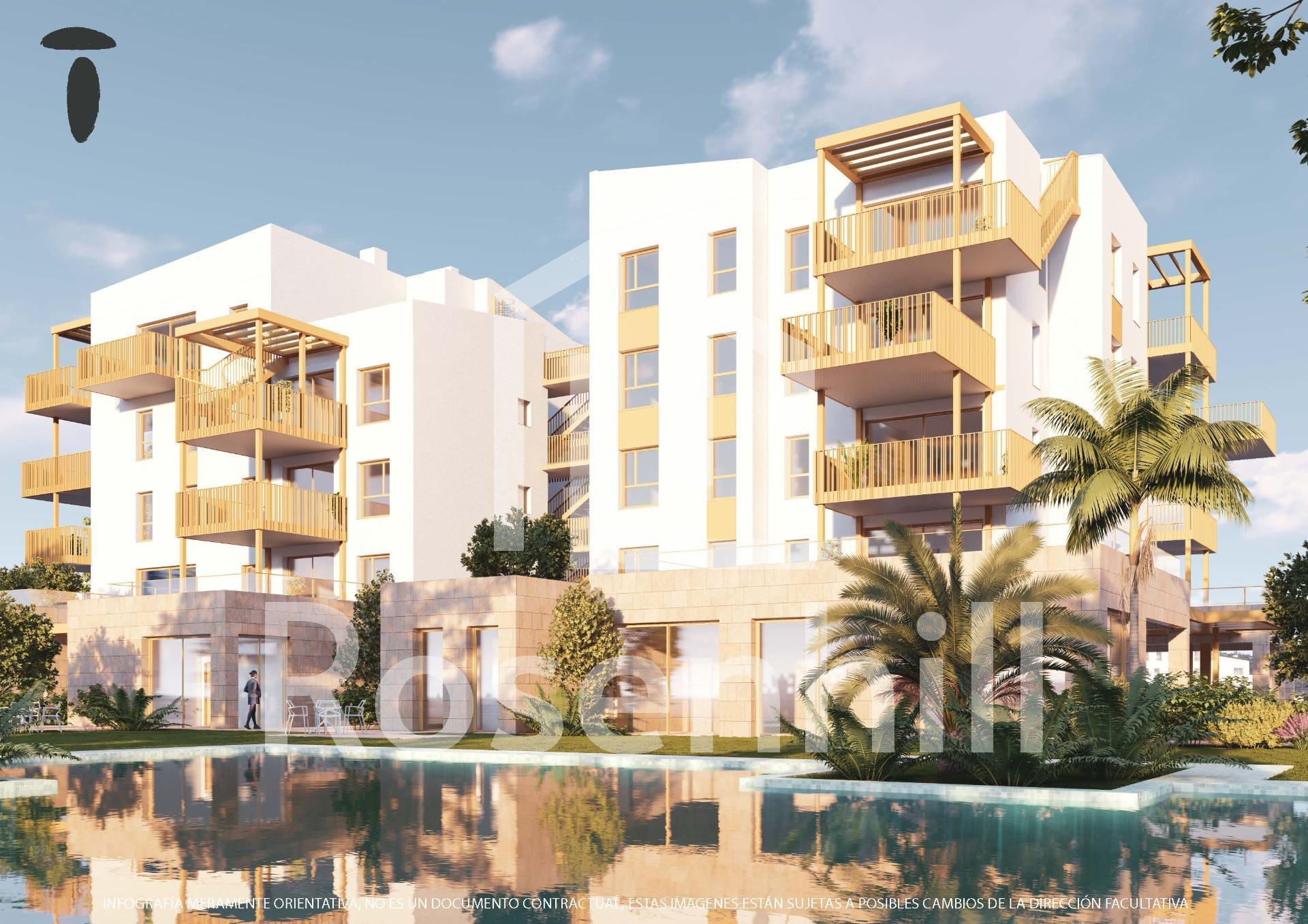 NEW BUILD RESIDENTIAL IN EL VERGEL New Build residential complex of 65 modern 2 bedrooms apartments and 2 and 3 bedrooms townhouses in El Vergel. Following the sustainability and energy efficiency approach of residential complex the designers have created a project where terraced single-family homes predominate. This residential concept provides an environment where communal spaces are accessible to all residents, while each home has its own private spaces, both indoors and outdoors, for daily enjoyment. The communal areas breathe a natural and welcoming atmosphere. As you explore its different areas, you will find perfect spaces for walking, sports, and, above all, for cycling. Experience a unique lifestyle in residential community, where every detail is designed for your comfort and enjoyment. Dive into the refreshing pool, train in the gym, relax in the sauna, and share unforgettable moments with family and friends in the social club. Equipment: Swimming pool GYM Sauna Gardens Social Club Beach point Sustainable energy Residential complex is a communal area that will allow you to enjoy La Almadraba beach in its purest essence. Residents will have access to this beachfront space where they can organise their own events, park their bicycles, store nautical equipment, and take a shower or dip in the pool after enjoying the sea. A gateway to the sea on the shores of La Almadraba beach in Denia.