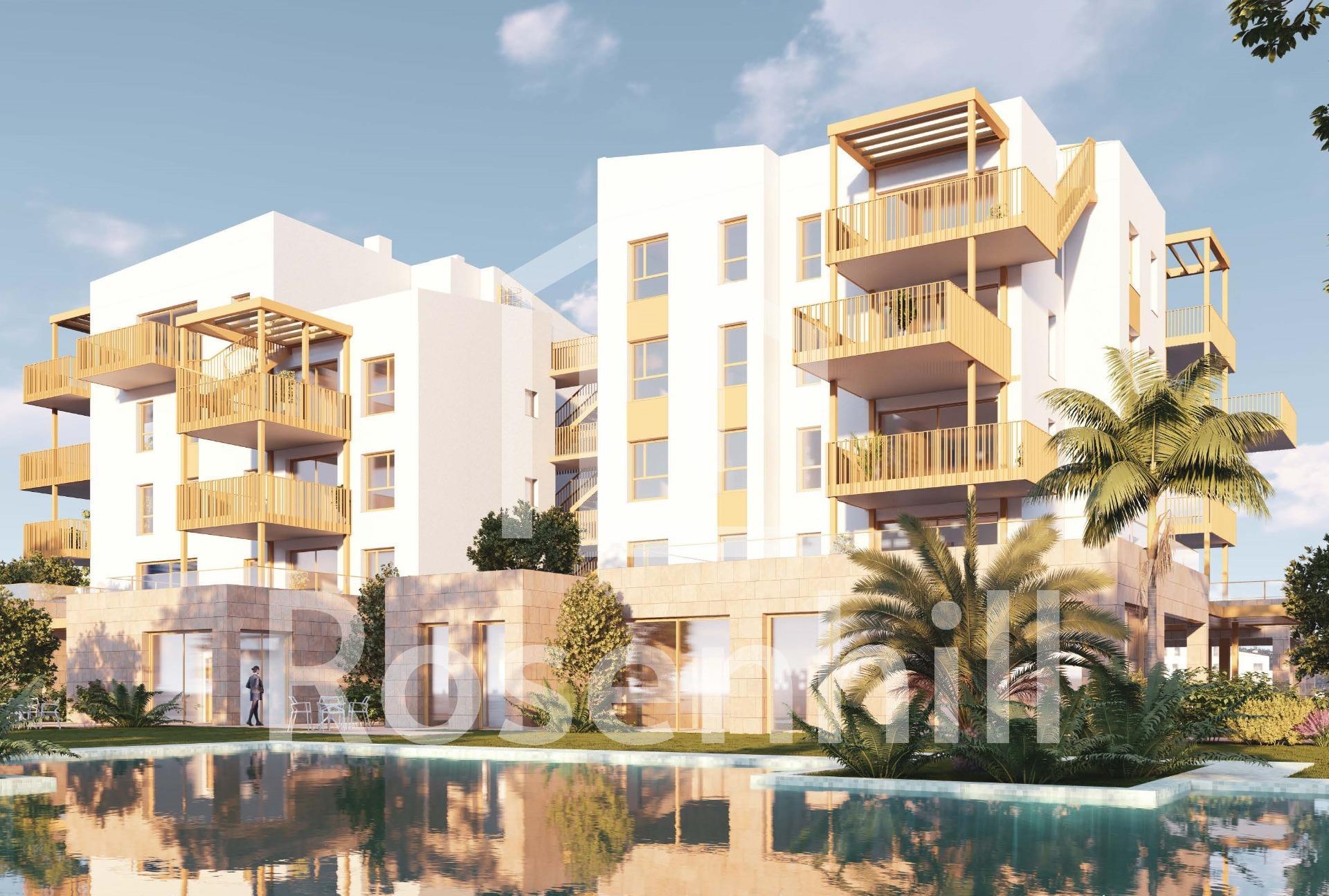 NEW BUILD RESIDENTIAL IN EL VERGEL New Build residential complex of 65 modern 2 bedrooms apartments and 2 and 3 bedrooms townhouses in El Vergel. Following the sustainability and energy efficiency approach of residential complex the designers have created a project where terraced single-family homes predominate. This residential concept provides an environment where communal spaces are accessible to all residents, while each home has its own private spaces, both indoors and outdoors, for daily enjoyment. The communal areas breathe a natural and welcoming atmosphere. As you explore its different areas, you will find perfect spaces for walking, sports, and, above all, for cycling. Experience a unique lifestyle in residential community, where every detail is designed for your comfort and enjoyment. Dive into the refreshing pool, train in the gym, relax in the sauna, and share unforgettable moments with family and friends in the social club. Equipment: Swimming pool GYM Sauna Gardens Social Club Beach point Sustainable energy Residential complex is a communal area that will allow you to enjoy La Almadraba beach in its purest essence. Residents will have access to this beachfront space where they can organise their own events, park their bicycles, store nautical equipment, and take a shower or dip in the pool after enjoying the sea. A gateway to the sea on the shores of La Almadraba beach in Denia.
