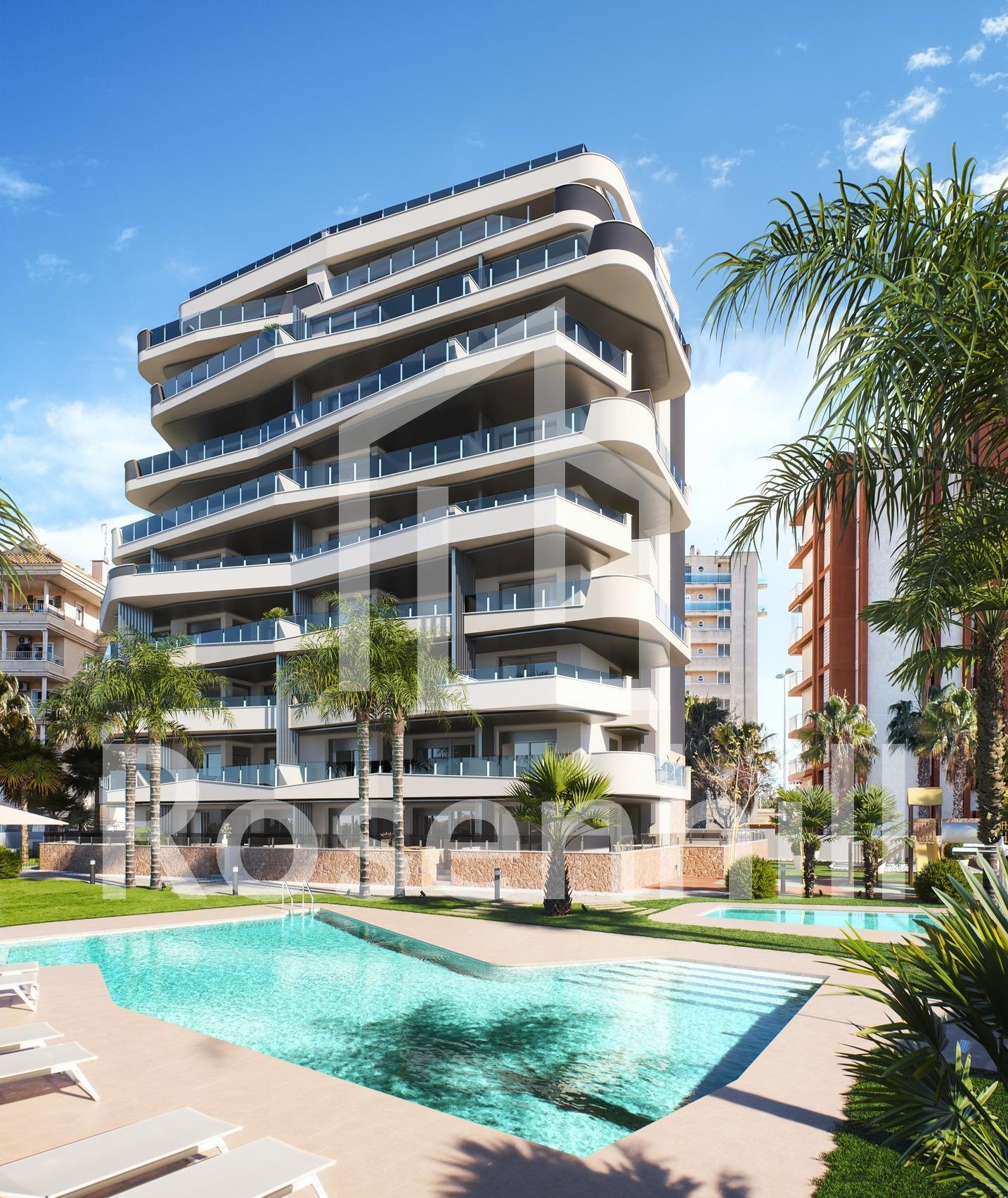NEW BUILD RESIDENTIAL IN GUARDAMAR DEL SEGURA New Build Residential located in front of the Segura River and close to the marina and beach of Guardamar. Modern style building of 31 apartments with 2 bedrooms and penthouses with 2 and 3 bedrooms, all with 2 bathrooms, open plan kitchen with living room, fitted wardrobes, spacious terraces from 20m², underground parking and closed storage room. The building will consist of 9 floors, the highest of which will be penthouses with main terrace and private solarium. Guardamar del Segura is a town located on the Costa Blanca South. With its 11 kilometres of natural beach and its large pine forest. Guardamar is a quiet town to live in, it has all the services throughout the year such as restaurants, bars, shops, banks, places for leisure, etc. Every Wednesday, in the central streets of the town, a market is organised where many people go to buy products such as food, clothing, furniture, animals, etc. It is a great claim and inhabitants of the surrounding town come to Guardamar every Wednesday to visit the market. Guardamar del Segura has a large port with activities throughout the year, it has a large sports centre with paddle tennis, tennis, soccer and a large heated swimming pool that works all year round. It also has a library where there is free wifi and computers. Guardamar del Segura is only 20km away from the Alicante – Elche (El Altet) airport, where there are many flights every day with connections to the main European cities, due to the demand for tourists on the Costa Blanca.