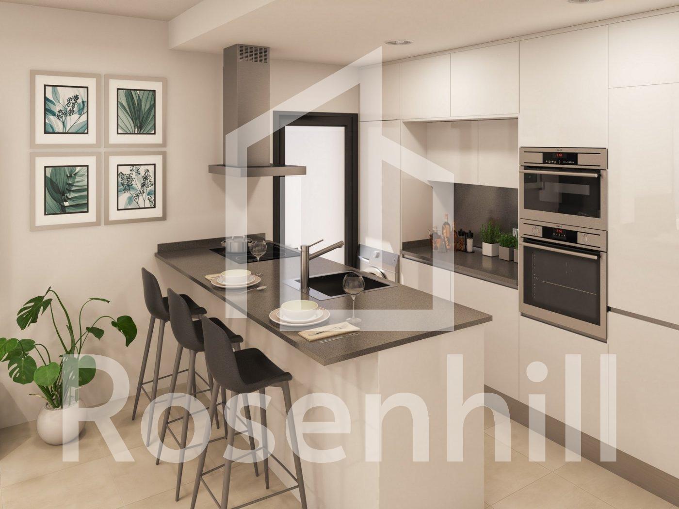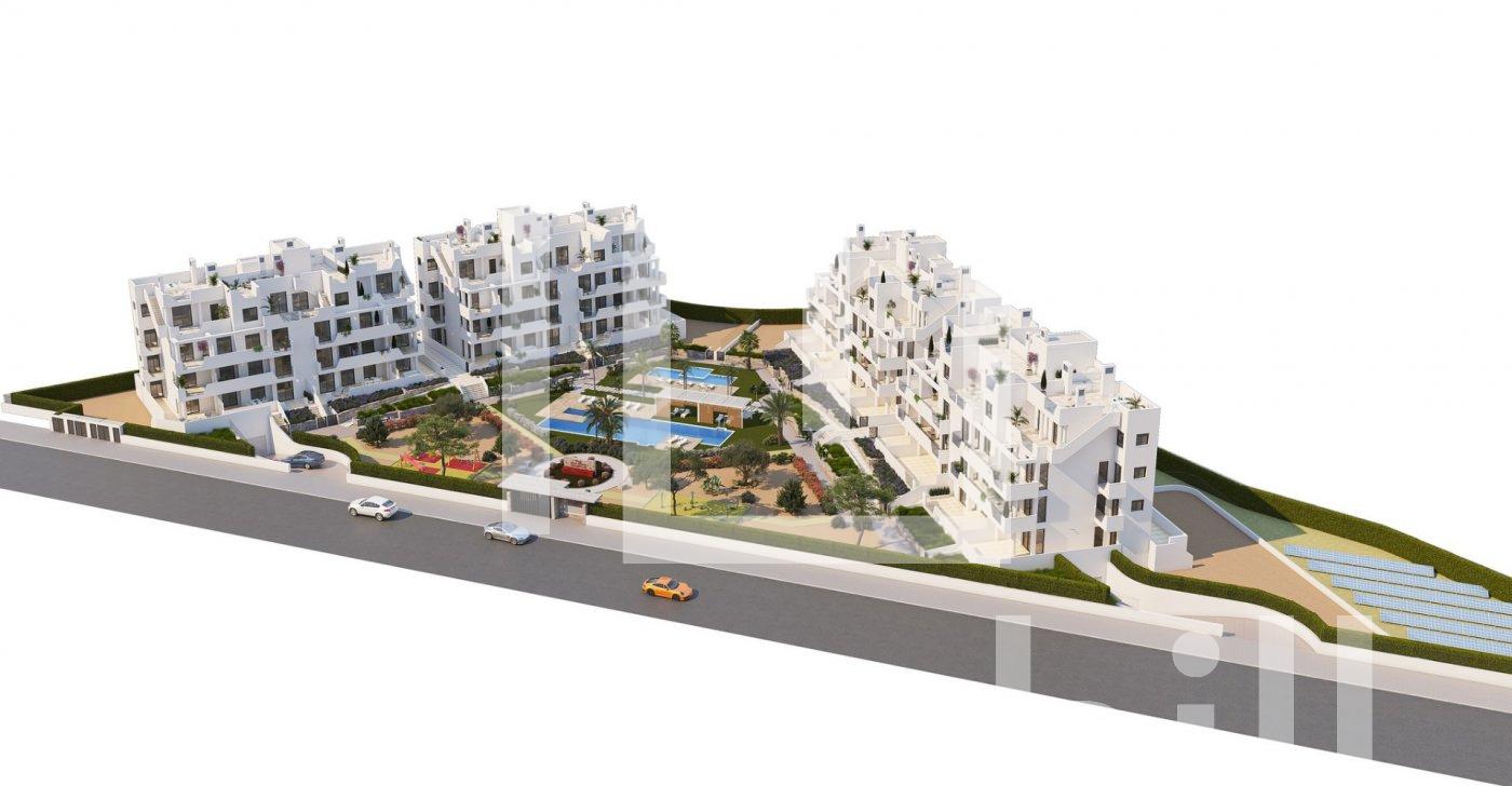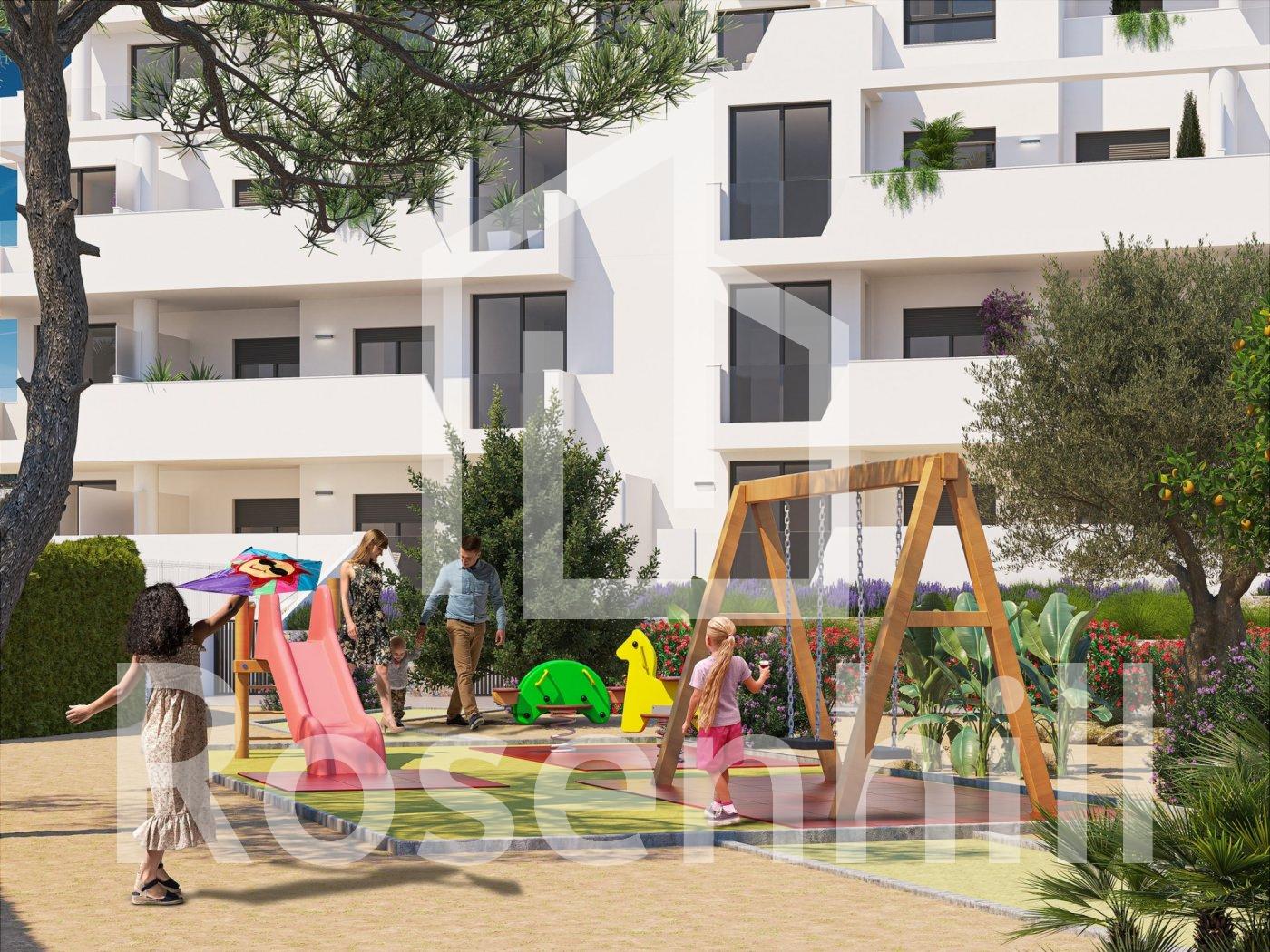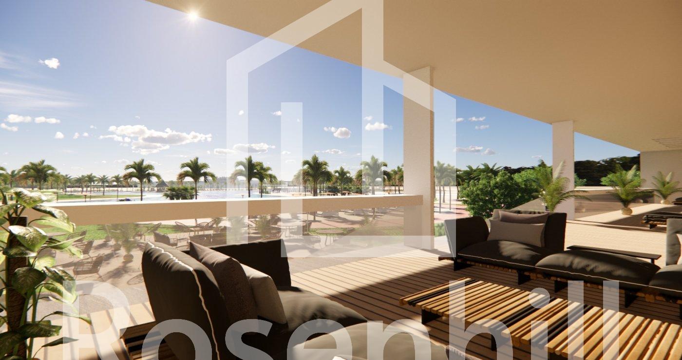 NEW BUILD RESIDENTIAL IN PRIVATE GATED RESORT IN PROVINCE OF MURCIA New Build residential complex has 60 apartments distributed in 4 blocks with terraced area for ground, first and second floors, community swimming pool, heated swimming pool and solarium with Summer kitchen on the penthouses, to enjoy all hours of sunshine every day of the year. The properties have 2 bedrooms and 2 bathrooms as well as parking space and storage room in the basement. These homes are designed with a contemporary style and open planned concept, comprising a fully-fitted kitchen and lounge-dining room. The properties will meet the highest standards and included: Kitchen completely furnished and equipped with oven and microwave in column, integrated fridge and dishwasher, induction hob and extractor fan. LED Lighting: inside the property (dining room, kitchen, corridors and bathrooms), and as well as in outdoor areas. Lined wardrobes with drawers. Motorised blinds in bedrooms. Heated floors in bathrooms. Fully fitted bathrooms with toilet, vanity unit, mirror, shower with rain effect and screen panels. Pre-installation for ducted air conditioning. Pre-installation of charging point for electric vehicles. Solarium with Summer kitchen, with pre-installation for electric appliances. Community swimming pool. Heated swimming pool. Parking space and storage room in the basement. Located in a private gated resort, with a main access entrance and 24 hours security. The resort is designed around an impressive 126.000 m2 green area. It comprises walking and cycling paths, sport facilities, paddle and tennis courts, a mini-golf course, gardens, dog parks, leisure areas, clubhouse…. Also in the central area is the jewel of the resort, a crystal-clear artificial lake of almost 17.000m2 of water surface, surrounded by white sandy beaches and palm trees, bringing a piece of the Caribbean to the Murcia Region. There are 2 islands in the lake, one of them has its own bar, there are also “beach Chiringuitos” spread around the lake. The resort is strategically located less than 4 km from the beach and the town of Los Alcázares, where you can practice various water sports, surrounded by several golf courses and the city of Cartagena less than 15 minutes by car and 22 km from Murcia airport, therefore having a wide cultural, gastronomic and sports offer within reach.